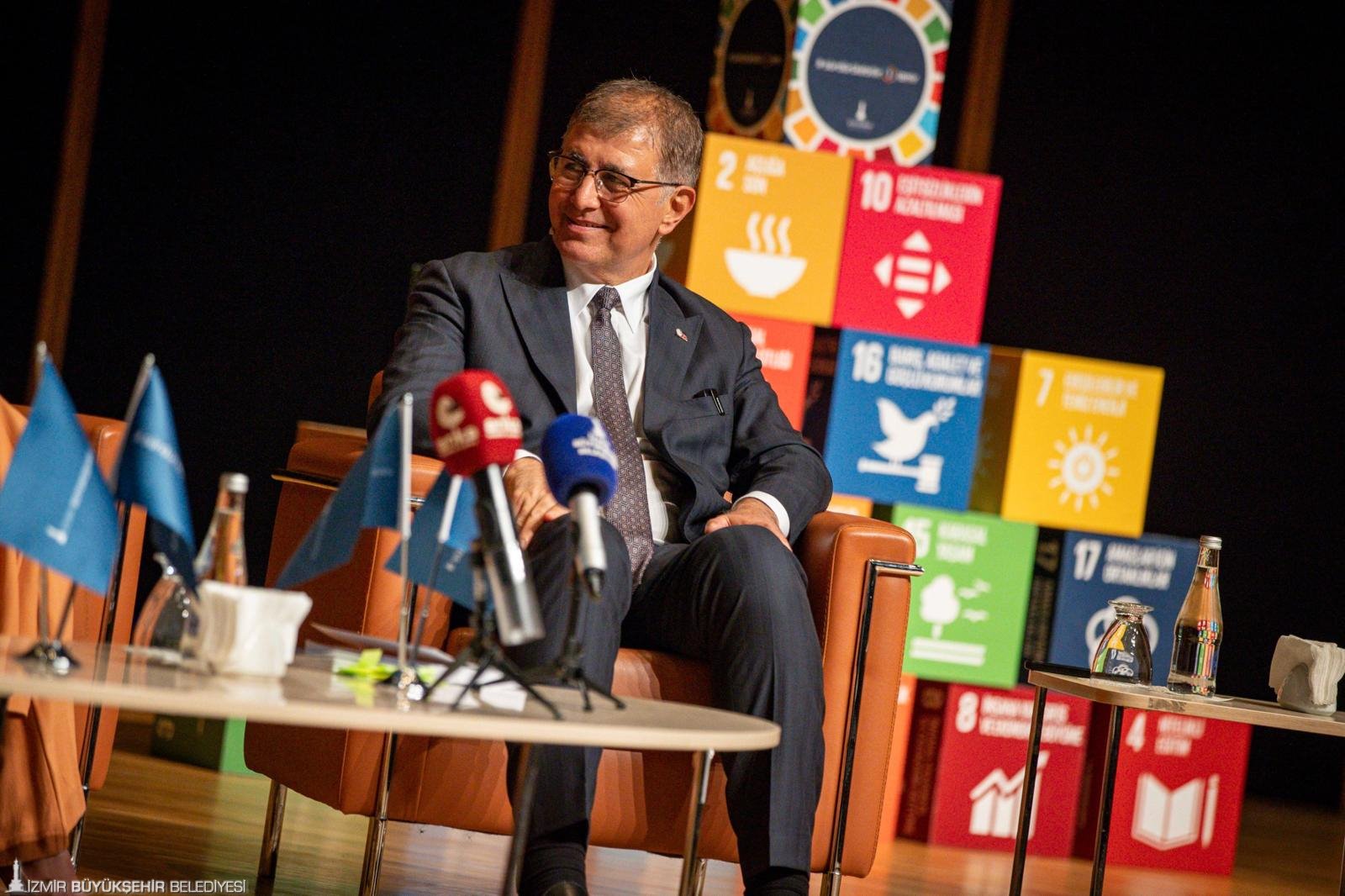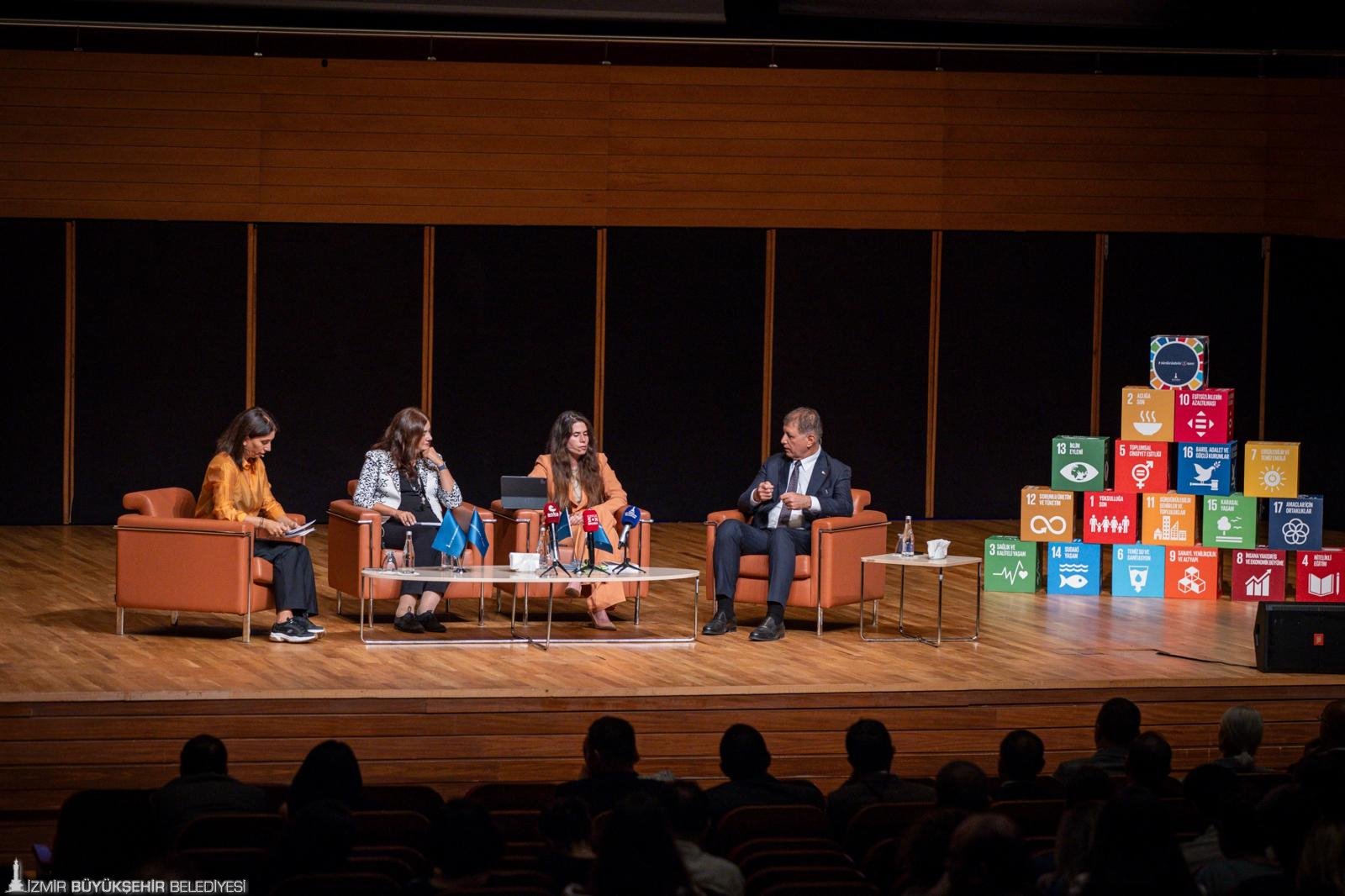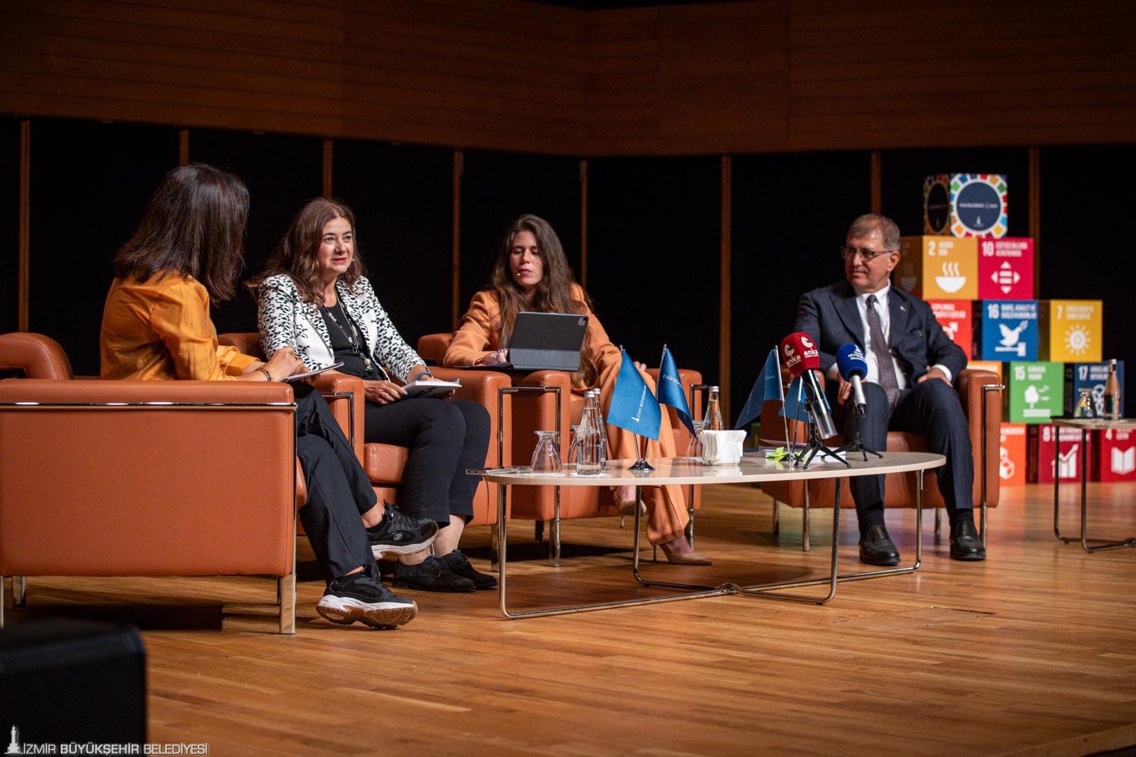 İzmir Büyükşehir Belediyesi'nin Kurumsal Sürdürülebilirlik Raporu tanıtım toplantısının ardından İzmir Büyükşehir Belediyesi'nden ekonomist Dr. Derya Altun moderatörlüğünde “Yerel Yönetimlerde Sürdürülebilirlik Politikaları ve Davranış Değişikliği” paneli yapıldı. Ahmed Adnan Saygun Sanat Merkezi’ndeki panele İzmir Büyükşehir Belediye Başkanı Dr. Cemil Tugay, Çeşme Belediye Başkanı Lal Denizli, ESİAD Yönetim Kurulu Üyesi Sürdürülebilirlik Yuvarlak Masası Başkanı Neşe Gök katıldı.