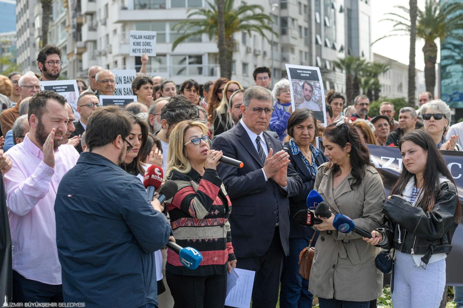 İzmir Gazeteciler Cemiyeti Başkanı Dilek Gappi ise hakikatin peşinde koşmak ve mesleğini hakkıyla yapmanın, bir gazetecinin görevi olduğunu belirtti. Savcılar, polisler gibi gazetecilerin de kamu görevi yaptığını söyleyen Gappi şöyle devam etti: “Gazeteciler de gördüklerini çekmek, yazmak, doğruları yorumlamakla mesuldür. Gazeteciye engel olmak, kamu adına suç işlemektir. Gazetecilik, mesleğe tutulan aynadır. Mesele, gazetecileri engellemek değildir. Eğer bir şeyi beğenmiyorsanız gazetecileri değil, o tutulan aynadaki görüntüleri değiştireceksiniz. Üstelik hukuk da basın da bir gün herkese lazım olur. Ötekini görmeyen, diğer yarısını ezen demokrasi, en tehlikeli yönetim biçimidir. Bizler mesleğimizi güzel ülkemizde eşit, adil çağdaş koşullarda yapmak istiyoruz. Özgür gazetecilik yapmaktan başka derdimiz yok. Bırakınız gazeteciliğimizi yapalım.”