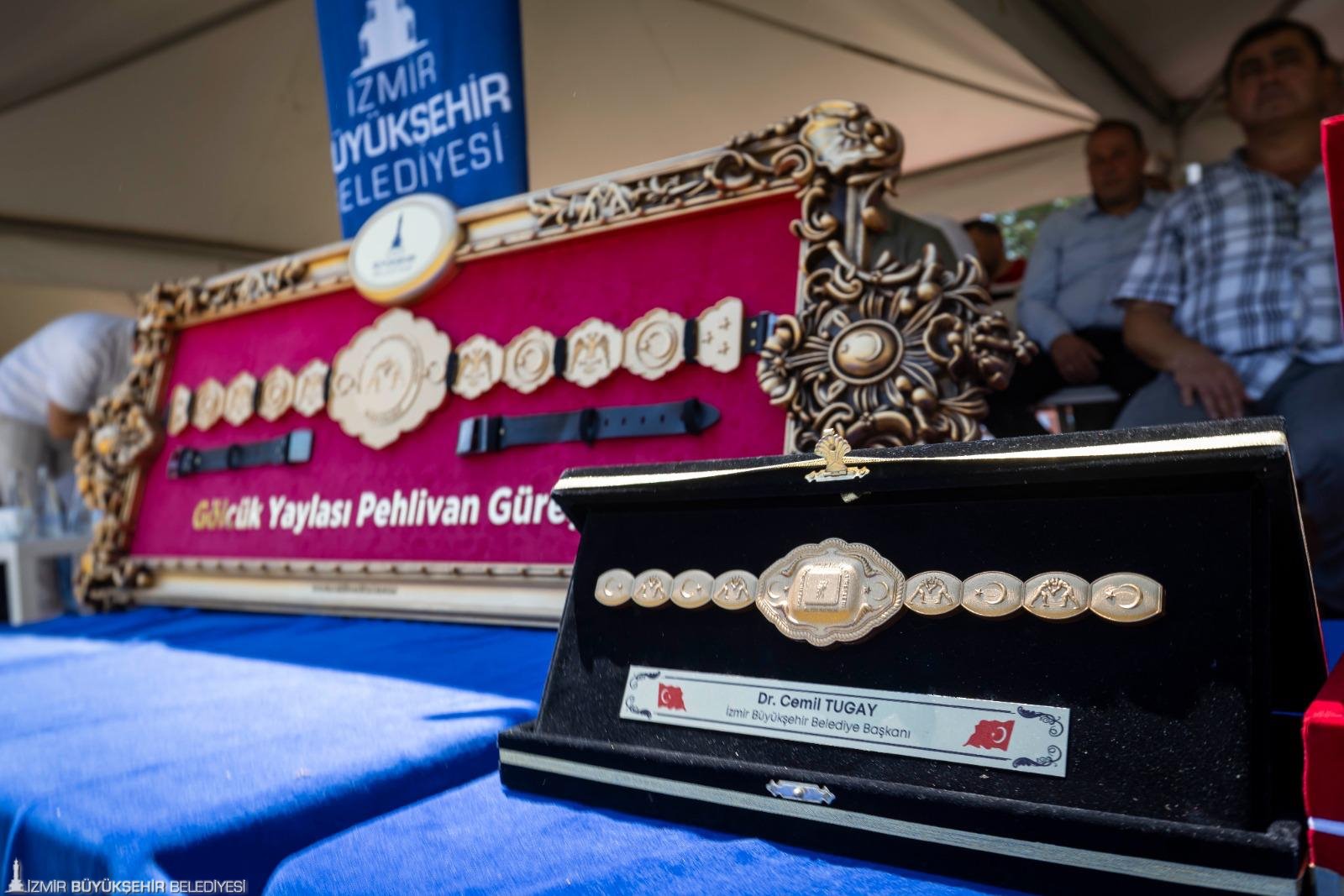 Konuşmaların ardından İzmir Büyükşehir Belediye Başkanı Dr. Cemil Tugay’a Ödemiş Yaylası Yağlı Pehlivan Güreşleri Tertip Komite Başkanı Adil Acar tarafından teşekkür plaketi takdim edildi. Başkan Tugay, sonraki karşılaşmalar için yapılan kura çekimine de katıldı.