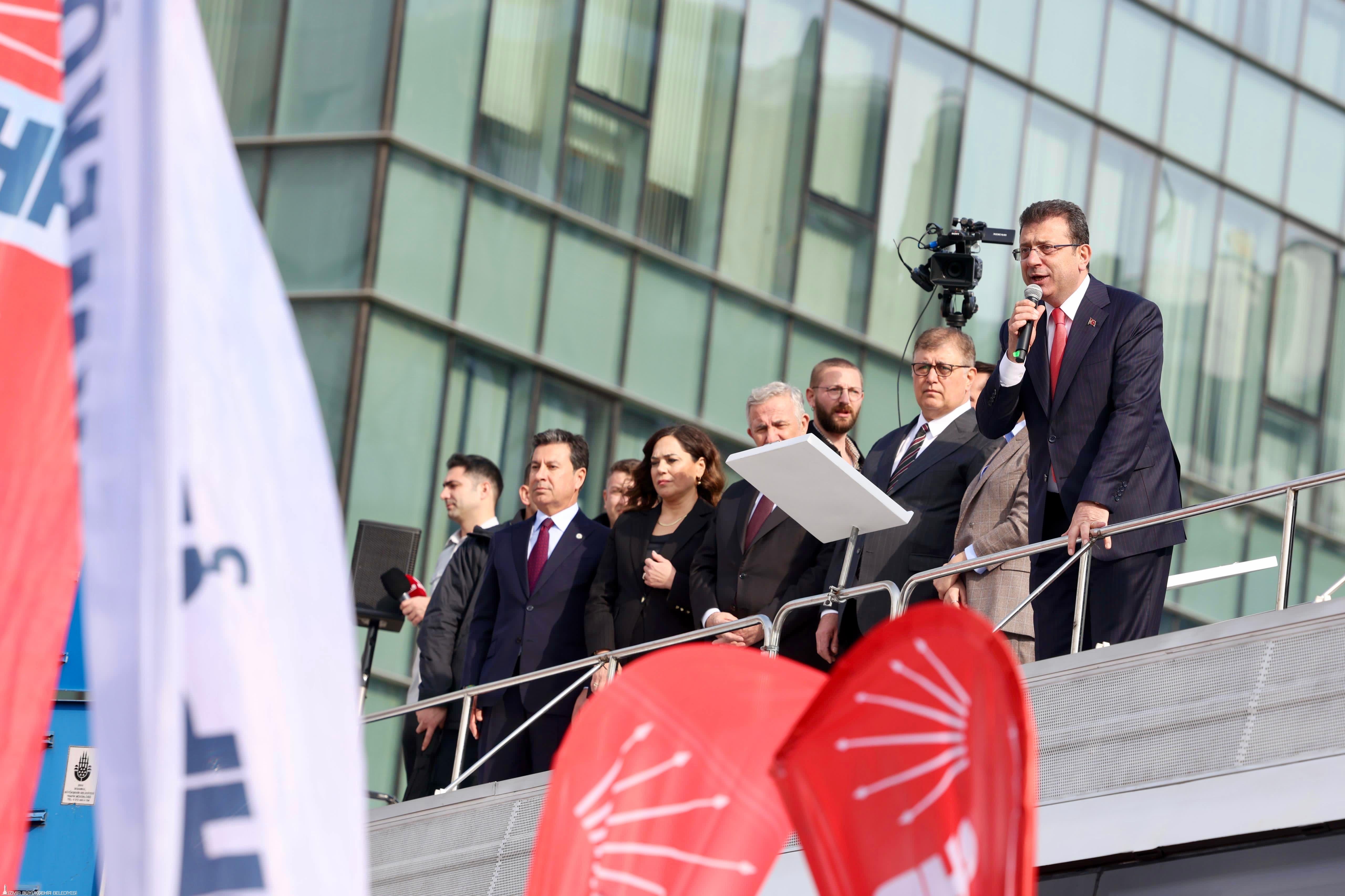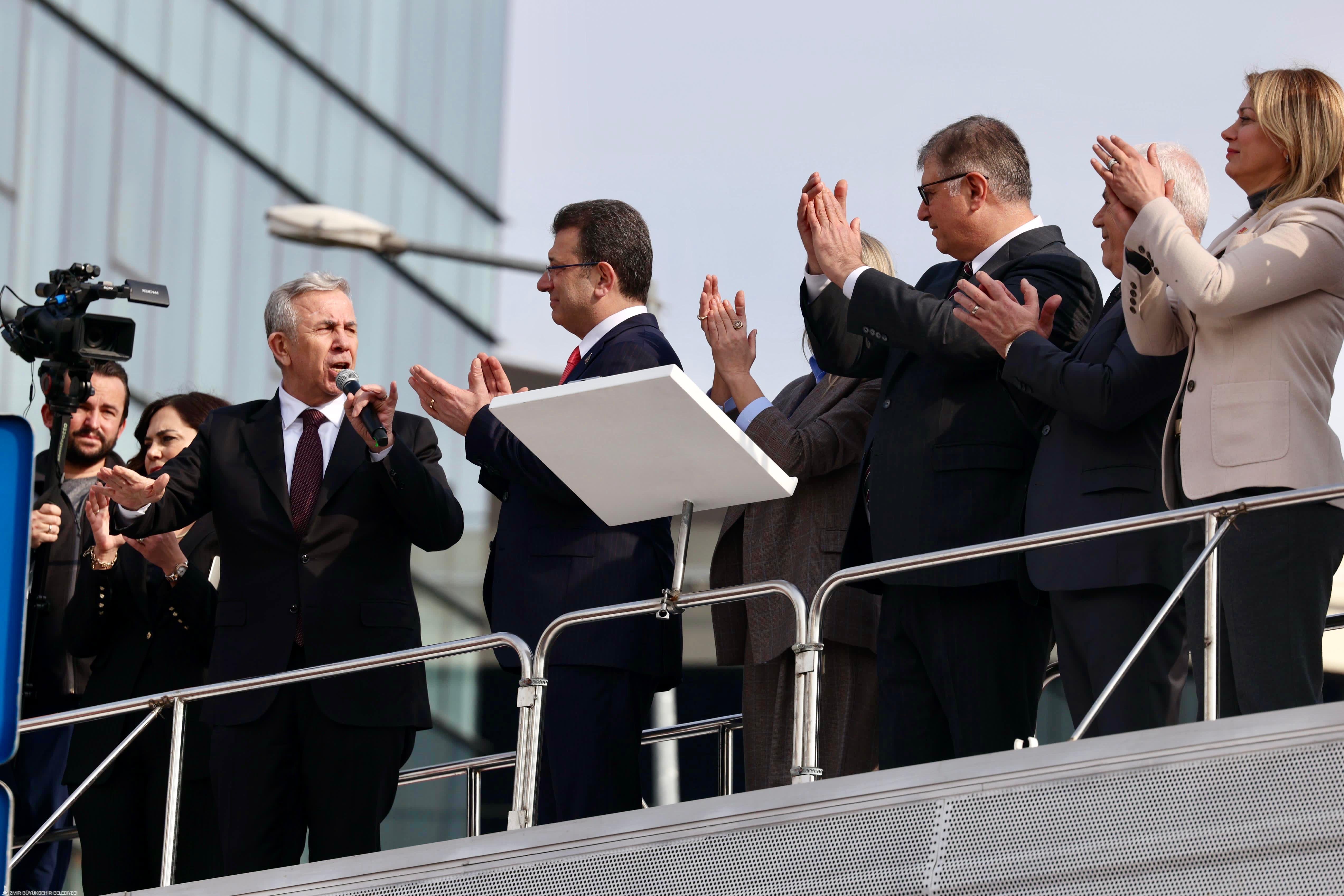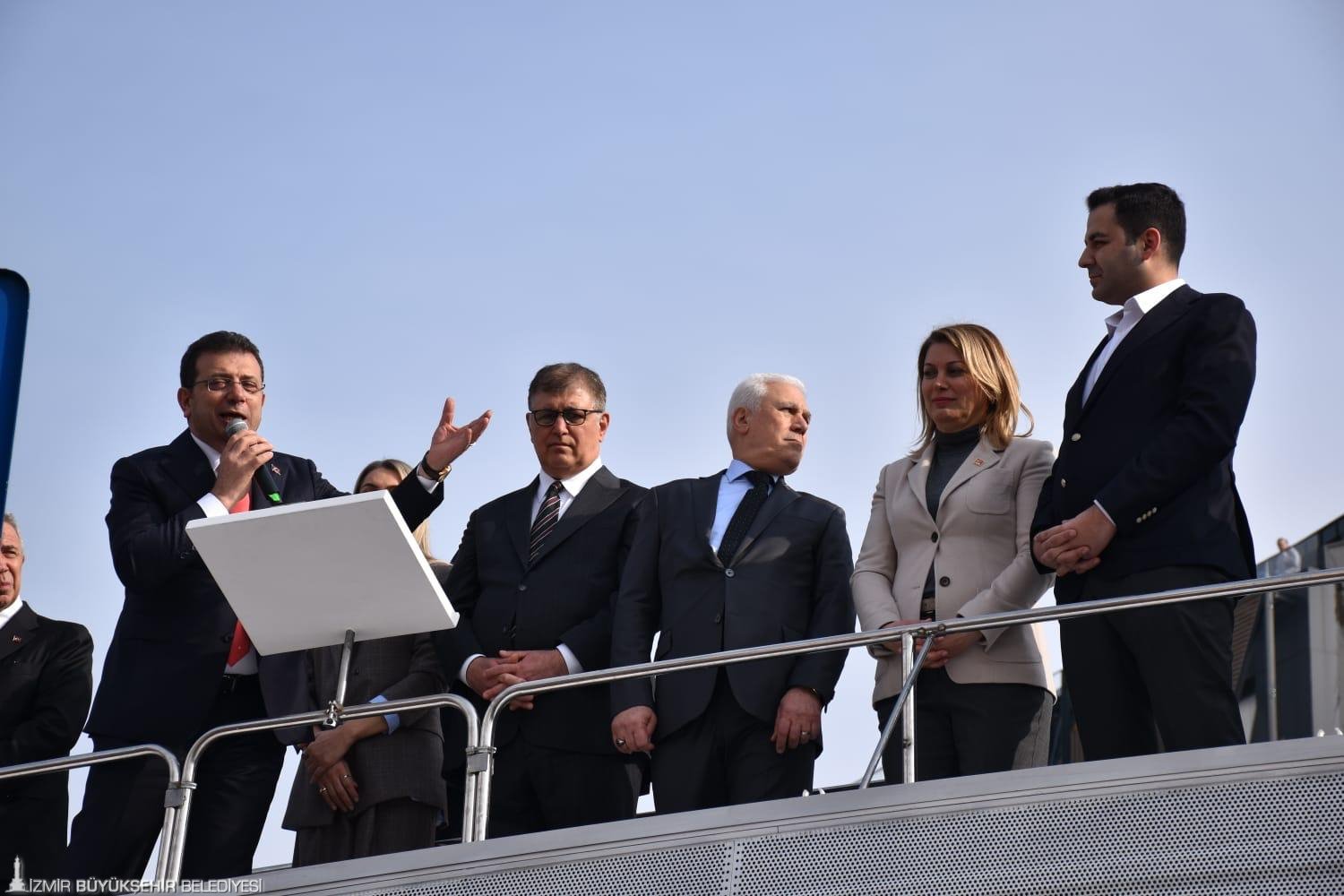 Türkiye Belediyeler Birliği Başkanı ve İstanbul Büyükşehir Belediye (İBB) Başkanı Ekrem İmamoğlu, hakkında açılan iki farklı soruşturma nedeniyle Çağlayan’daki İstanbul Adliyesi’nde savcılığa ifade verdi. İzmir Büyükşehir Belediye Başkanı Dr. Cemil Tugay da İstanbul’a giderek, İmamoğlu’na destek verdi. Başkan Tugay, burada yaptığı açıklamada, demokrasinin önemine değinerek, “Ekrem Başkanımız bugün gerçekten hiçbirimizin aklının ve vicdanının almadığı anlayışla ifade vermeye çağrıldı. Elbette kendini savunacak ve tabii ki biz de onun yanında, arkasında olacağız. Bu dönem demokrasiye karşı yapılan her türlü hareketin karşısında olmaya devam edeceğiz. Burada biraz üzüntülü ama mücadele konusunda kararlı parti örgütü olarak, belediye başkanları olarak, İzmir’den gelen arkadaşlarımızla buradayız. Bunun sonunda aklıselimin galip gelmesini diliyorum. Demokrasi sandıkta yapılan bir yarış. Başka her türlü engelleme, her türlü baskı halkın da reaksiyonuna yol açacak. Buna inanıyoruz. Diliyorum bu sürecin sonunda demokrasi, hukuk, adalet, hak kazansın” dedi.