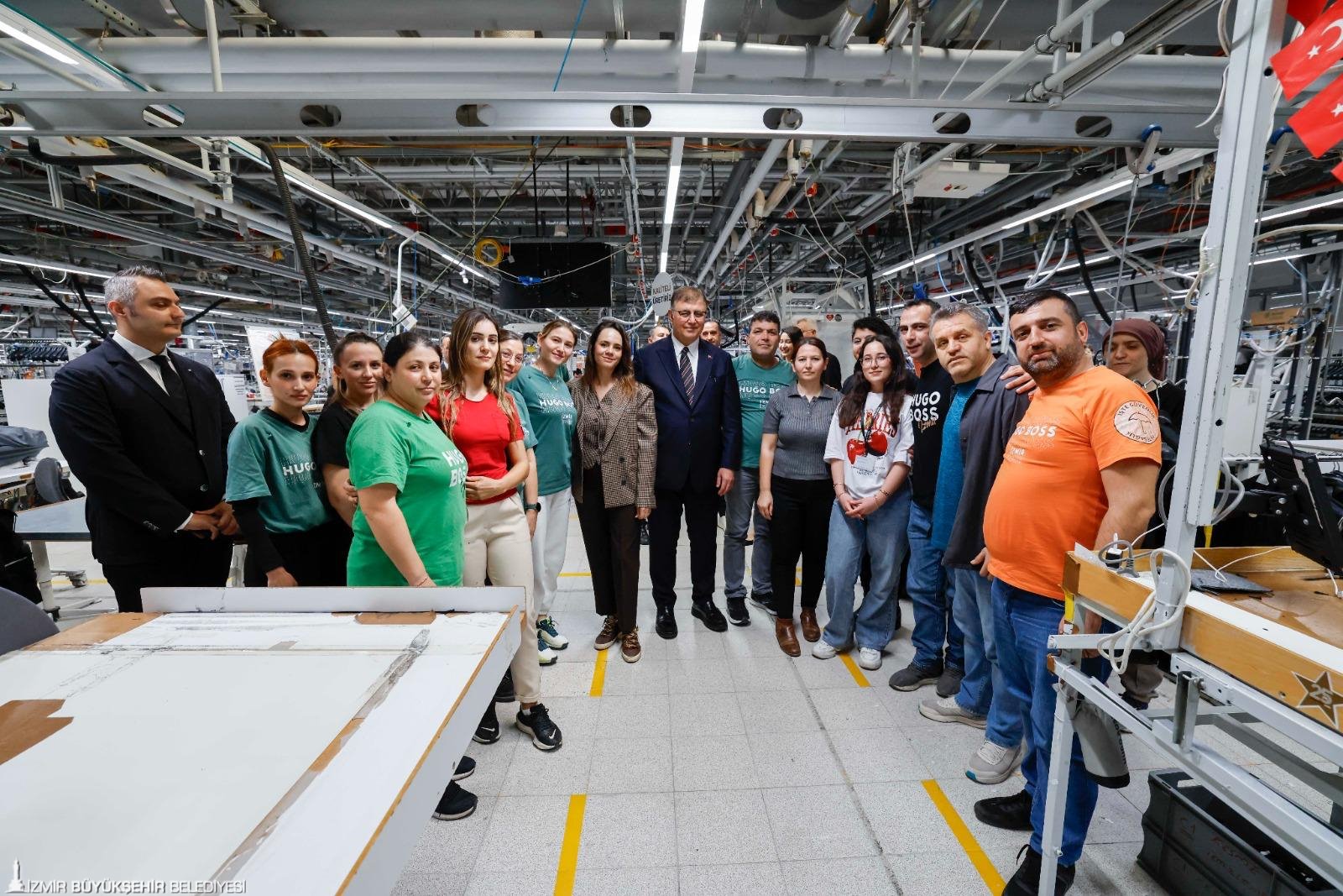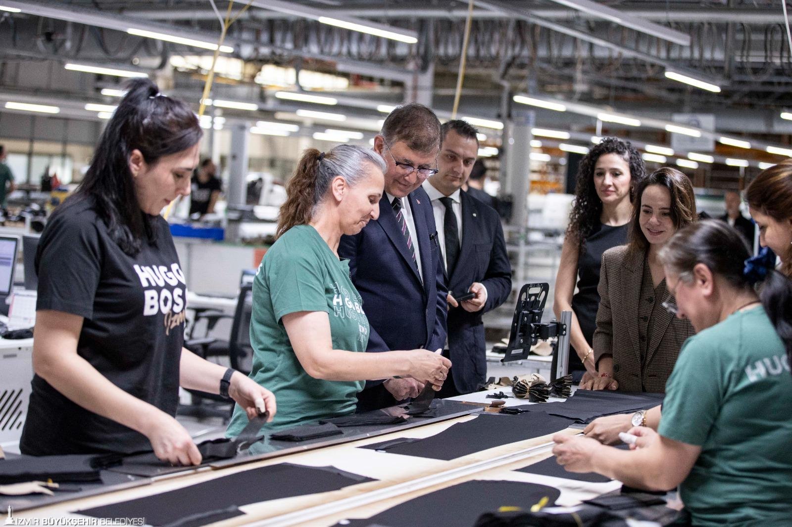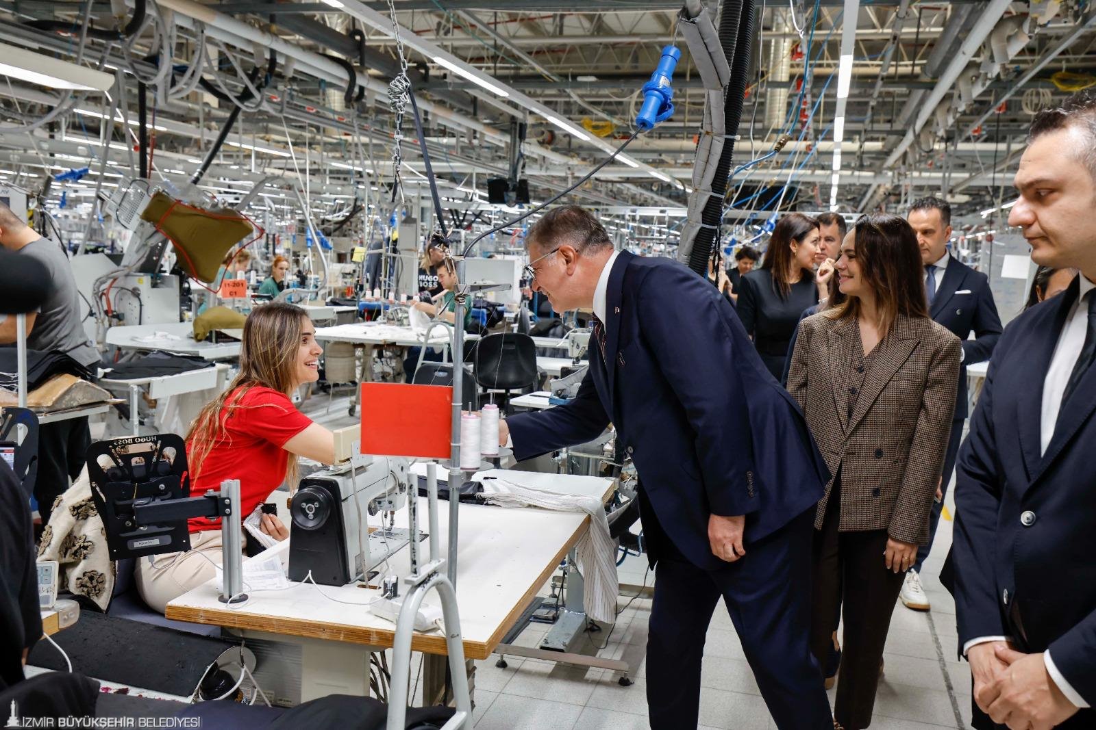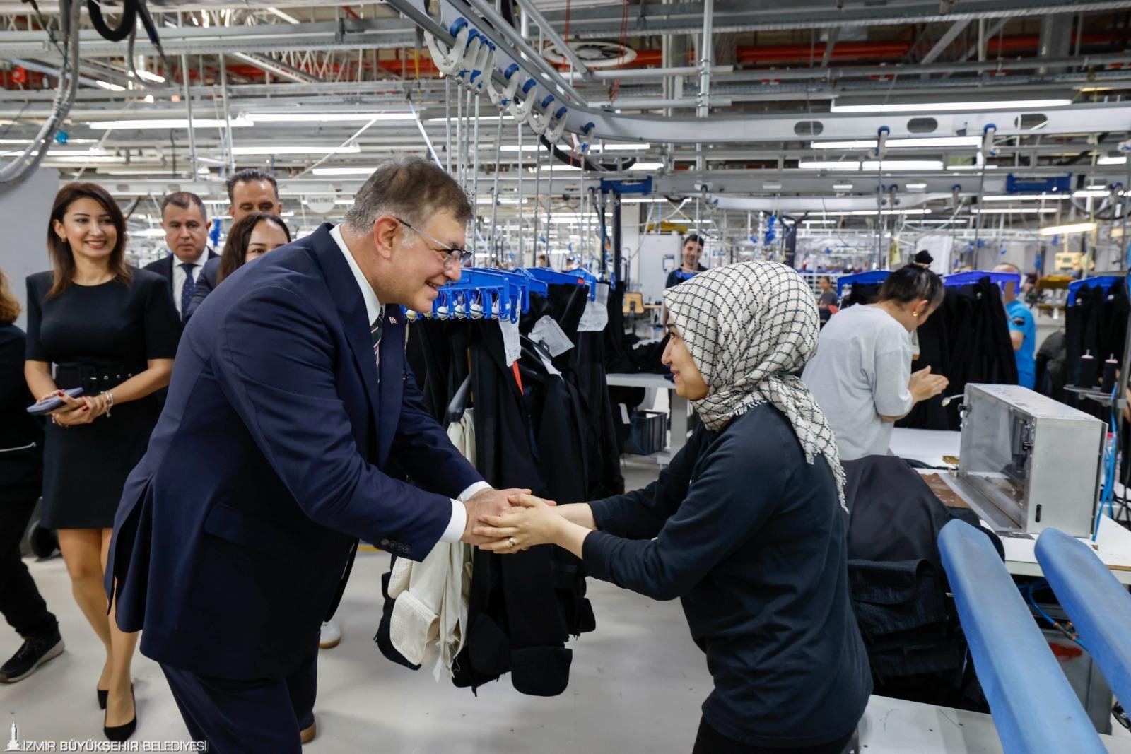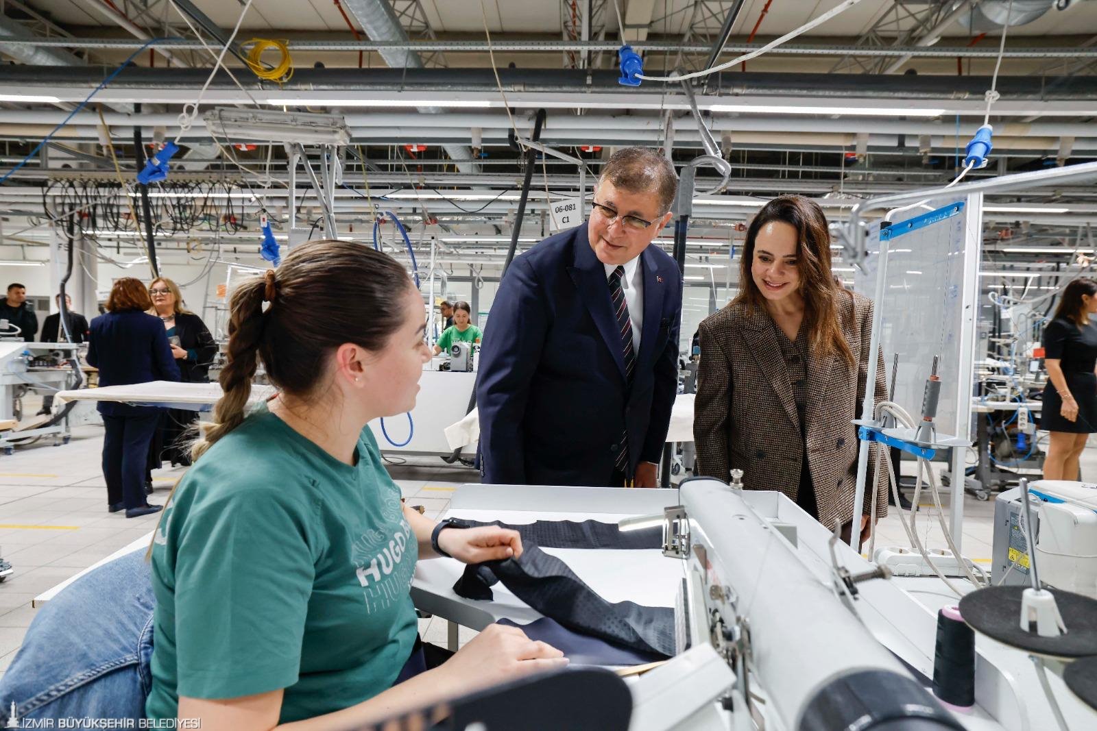 İzmir Büyükşehir Belediye Başkanı Dr. Cemil Tugay ile eşi Öznur Tugay, Ege Serbest Bölgesi'nde faaliyet yürüten bir tekstil fabrikasını ziyaret ederek burada çalışan kadın işçilerle bir araya geldi.