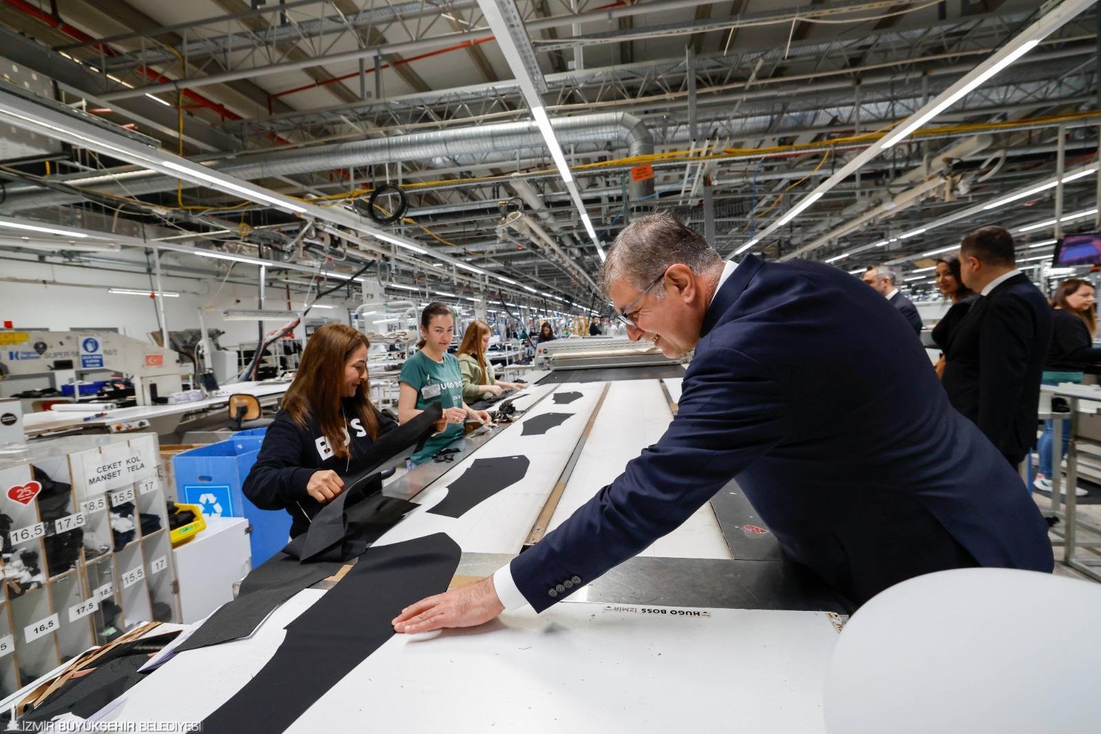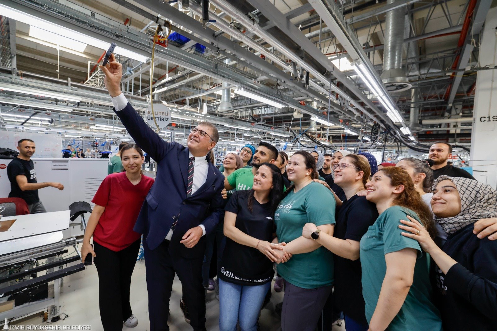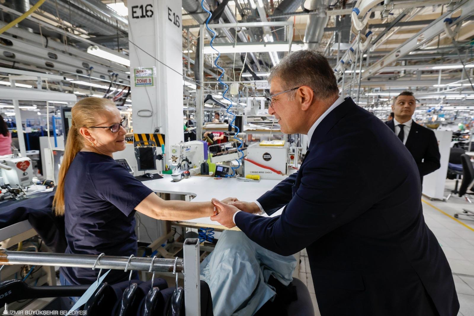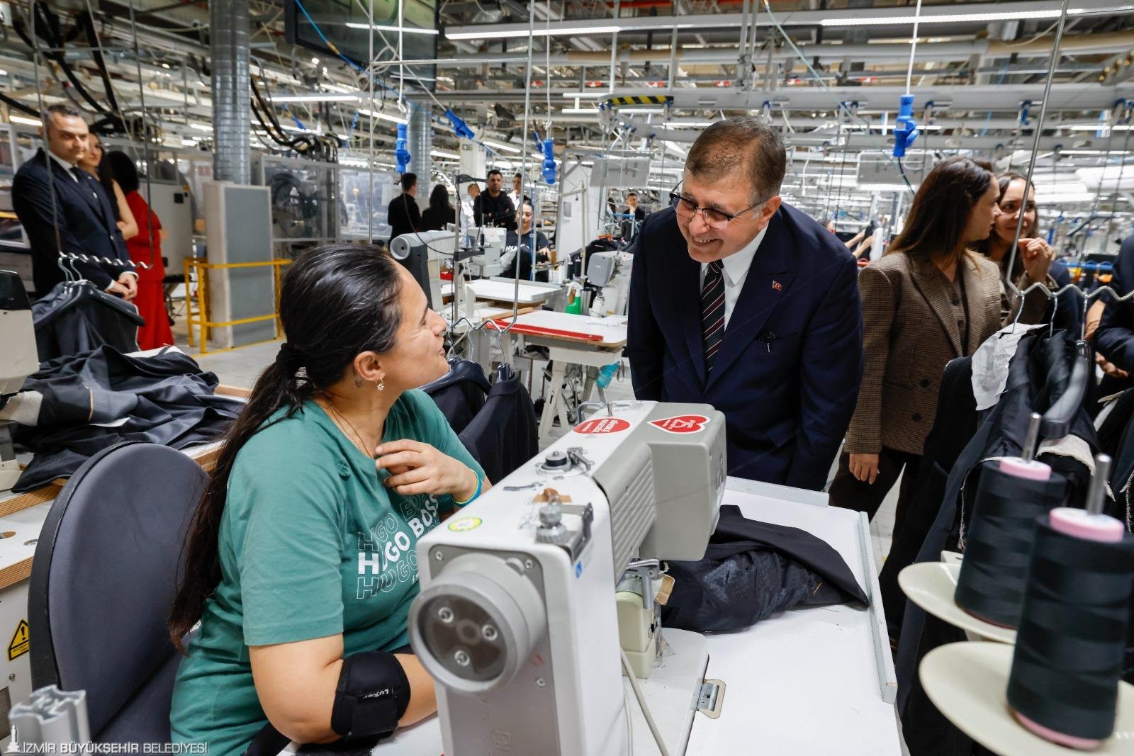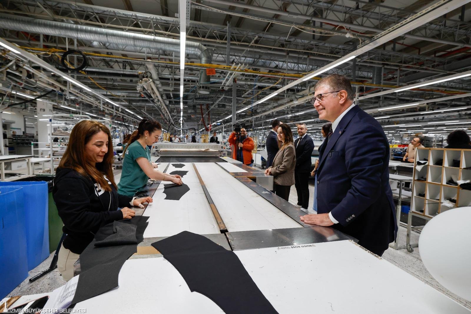 İzmir Büyükşehir Belediye Başkanı Dr. Cemil Tugay ile eşi Öznur Tugay, Ege Serbest Bölgesi'nde faaliyet yürüten bir tekstil fabrikasını ziyaret ederek burada çalışan kadın işçilerle bir araya geldi.