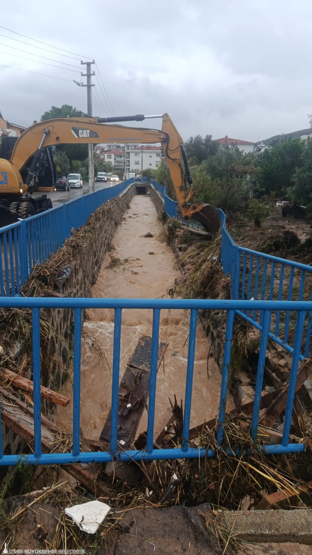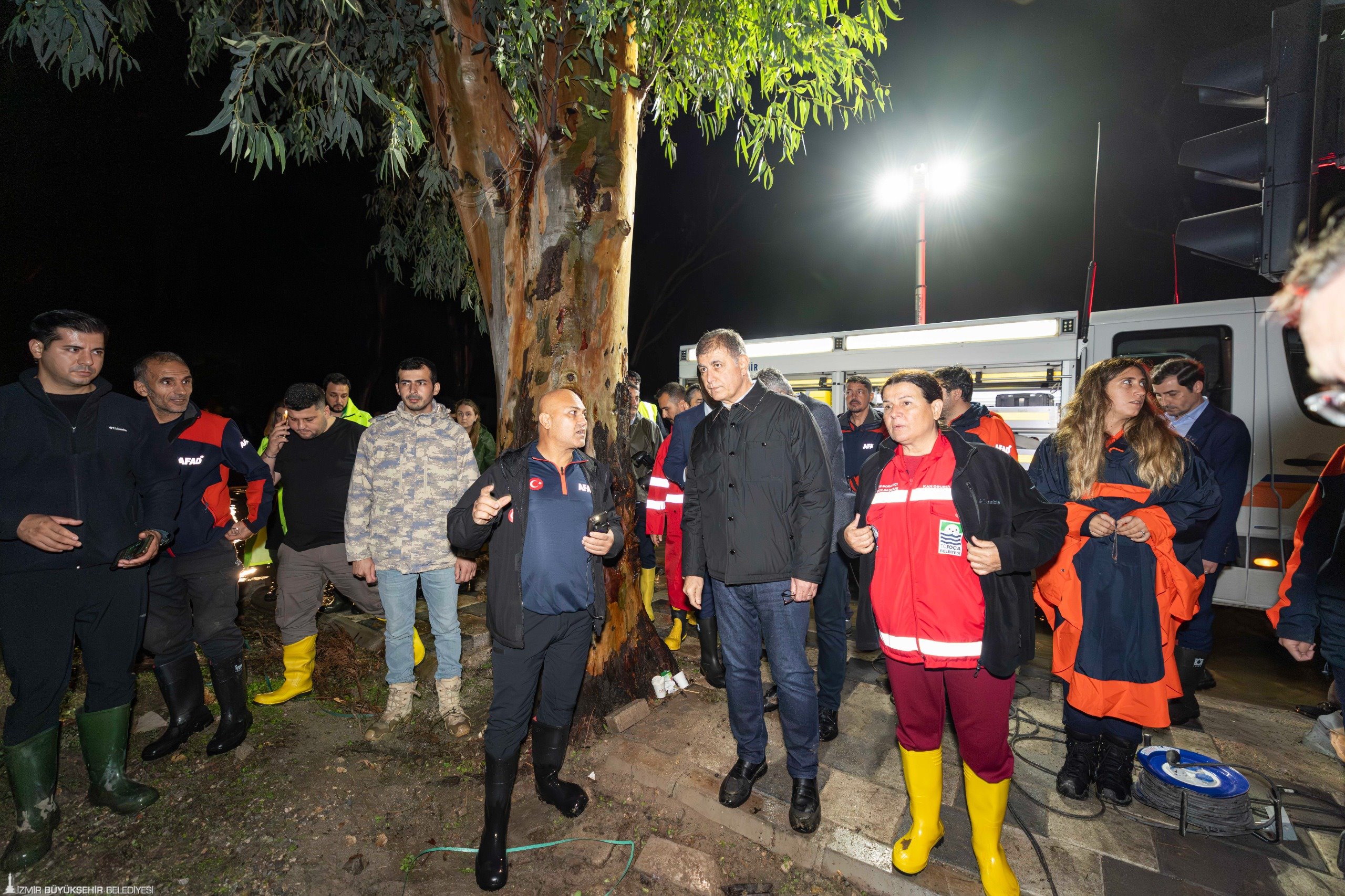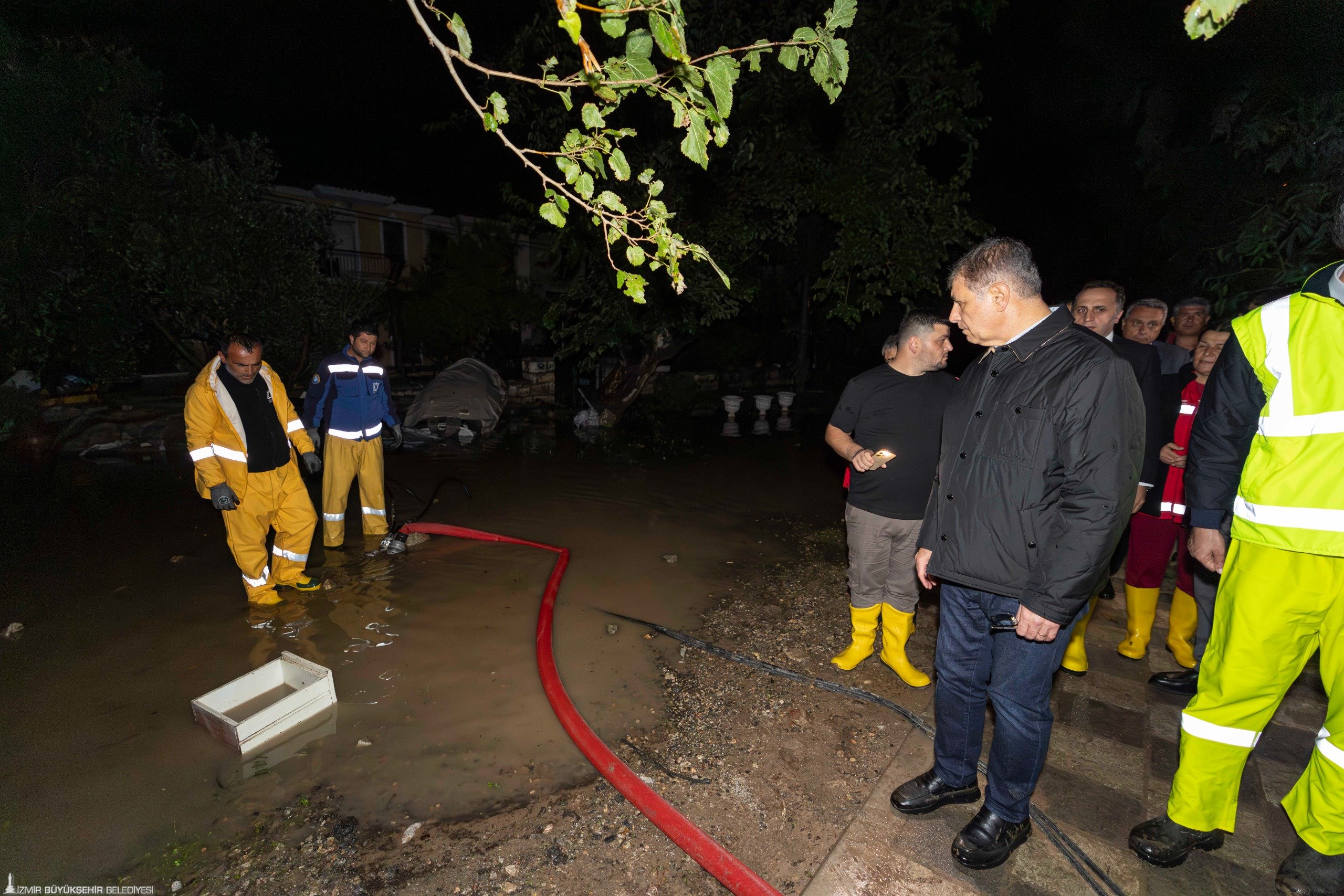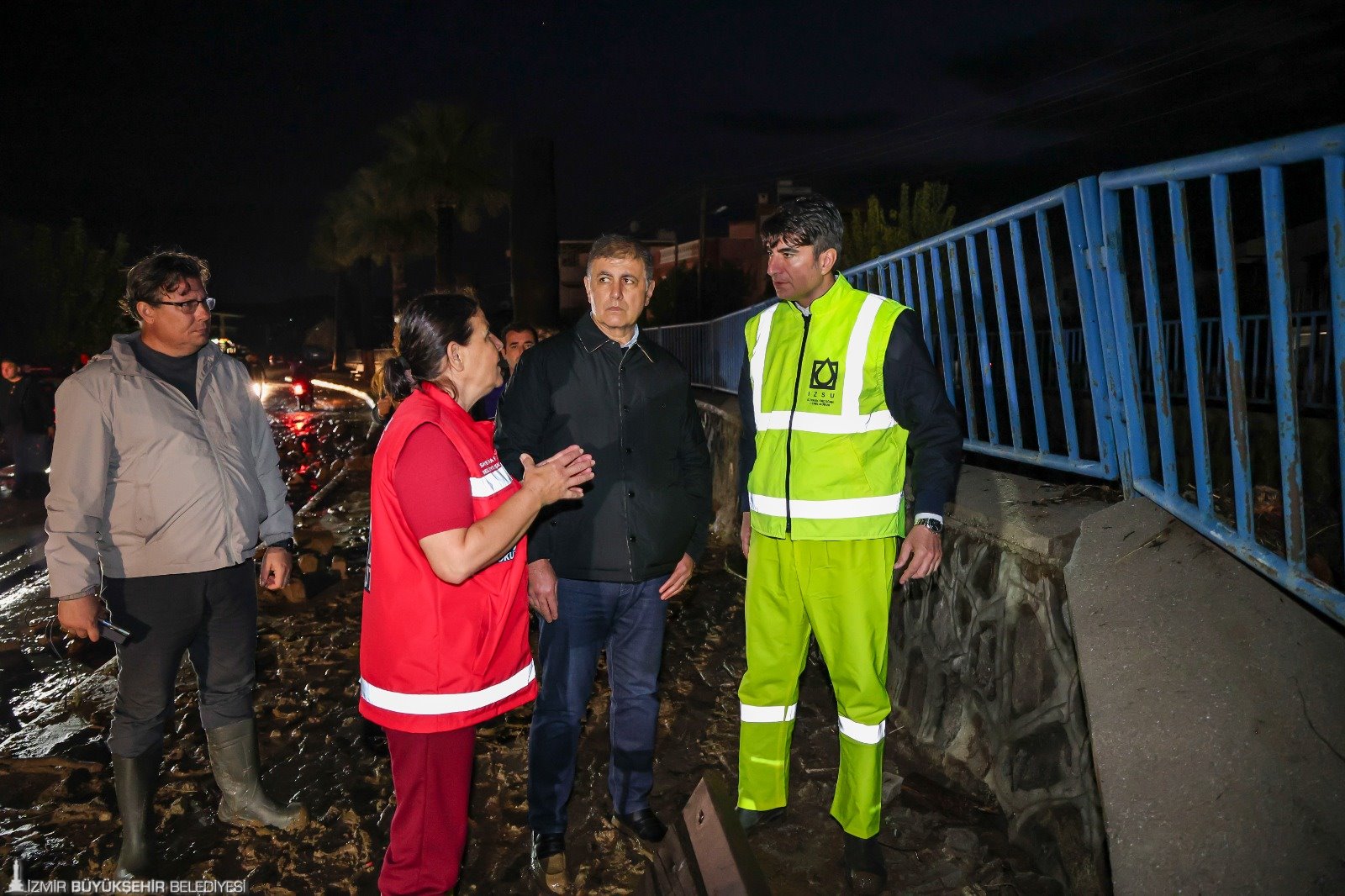 İzmir Büyükşehir Belediyesi İZSU ve itfaiye ekiplerinin yanı sıra Afet İşleri Dairesi, İklim Değişikliği ve Sıfır Atık Dairesi, Sosyal Hizmetler Dairesi, Muhtarlık İşleri Dairesi, Fen İşleri ve Veteriner İşleri Dairesi Başkanlığı ekipleriyle ilçede yaşamı normale döndürmek için 197 araç ve 350 personelle bölgede su tahliye çalışmalarını yürütürken, vatandaşların da ihtiyaçlarını karşılamak için çalışıyor.
