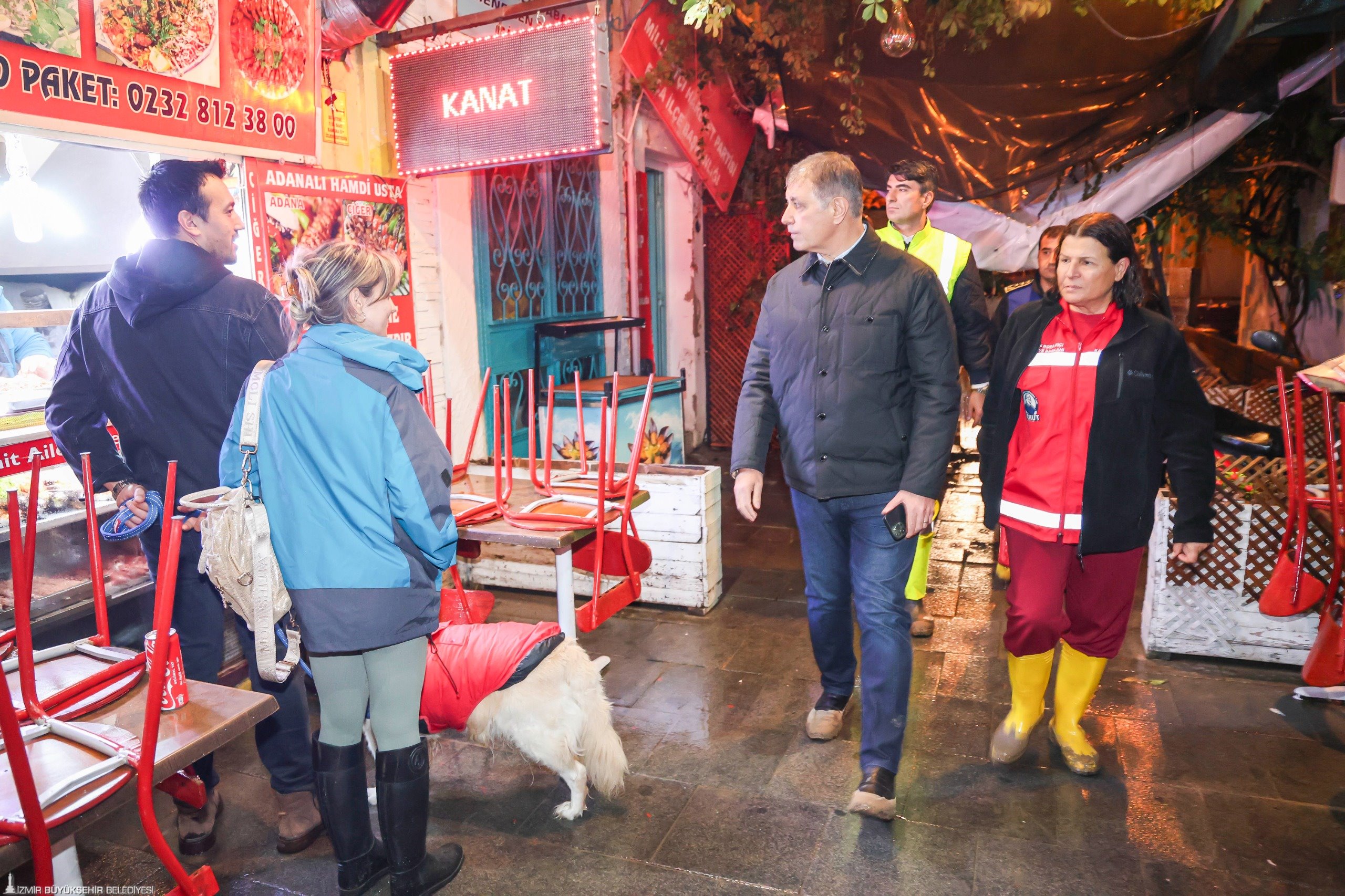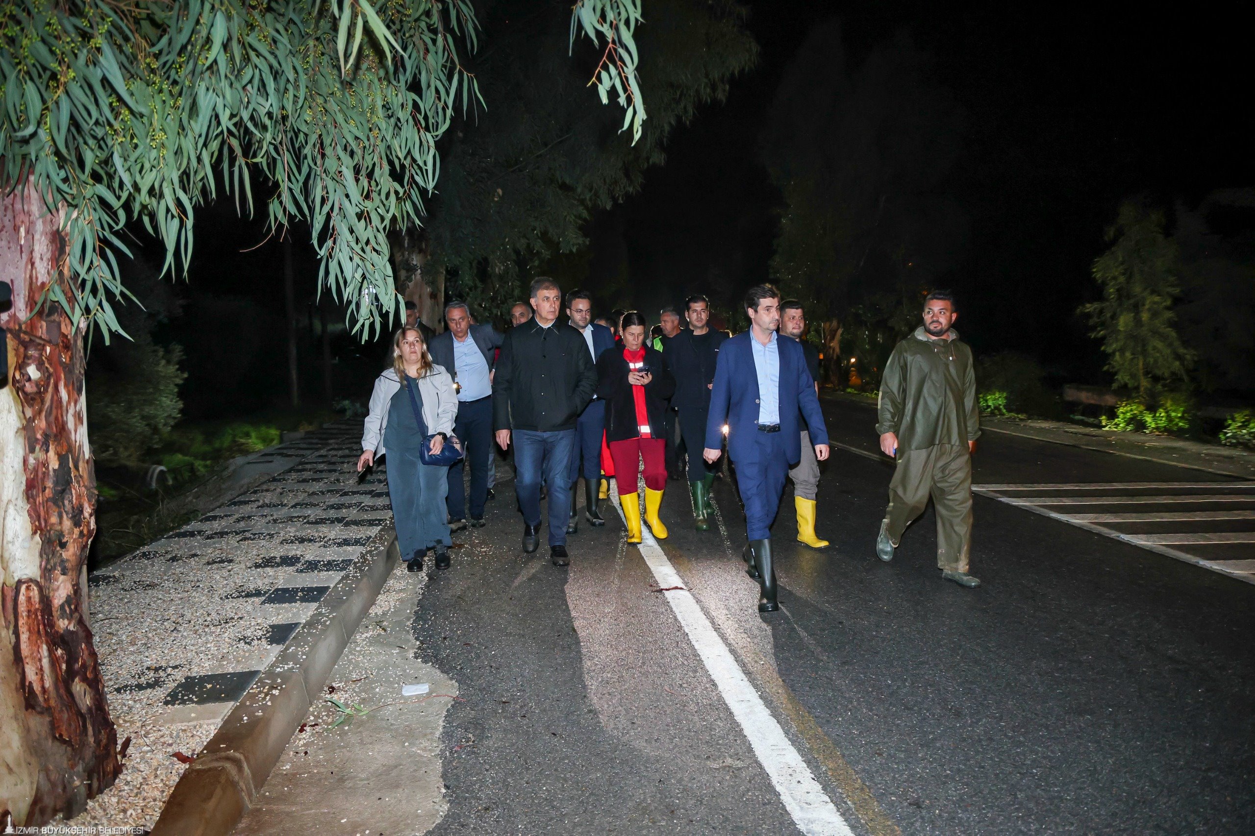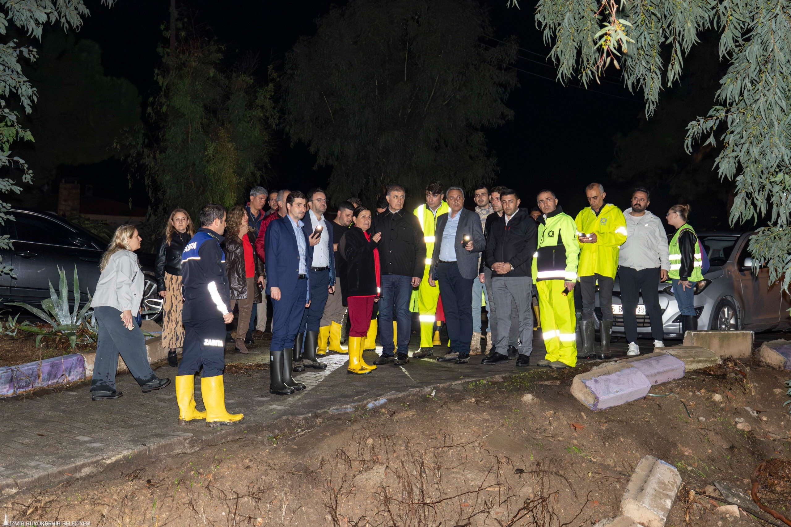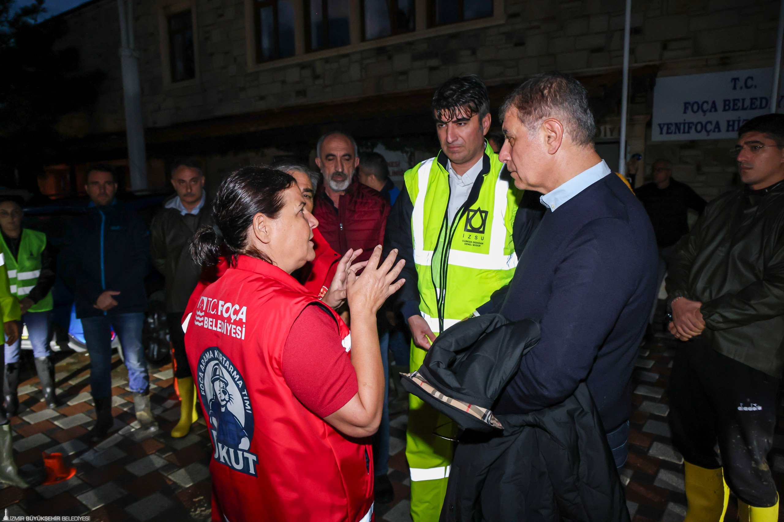 İzmir Büyükşehir Belediyesi İZSU ve itfaiye ekiplerinin yanı sıra Afet İşleri Dairesi, İklim Değişikliği ve Sıfır Atık Dairesi, Sosyal Hizmetler Dairesi, Muhtarlık İşleri Dairesi, Fen İşleri ve Veteriner İşleri Dairesi Başkanlığı ekipleriyle ilçede yaşamı normale döndürmek için 197 araç ve 350 personelle bölgede su tahliye çalışmalarını yürütürken, vatandaşların da ihtiyaçlarını karşılamak için çalışıyor.