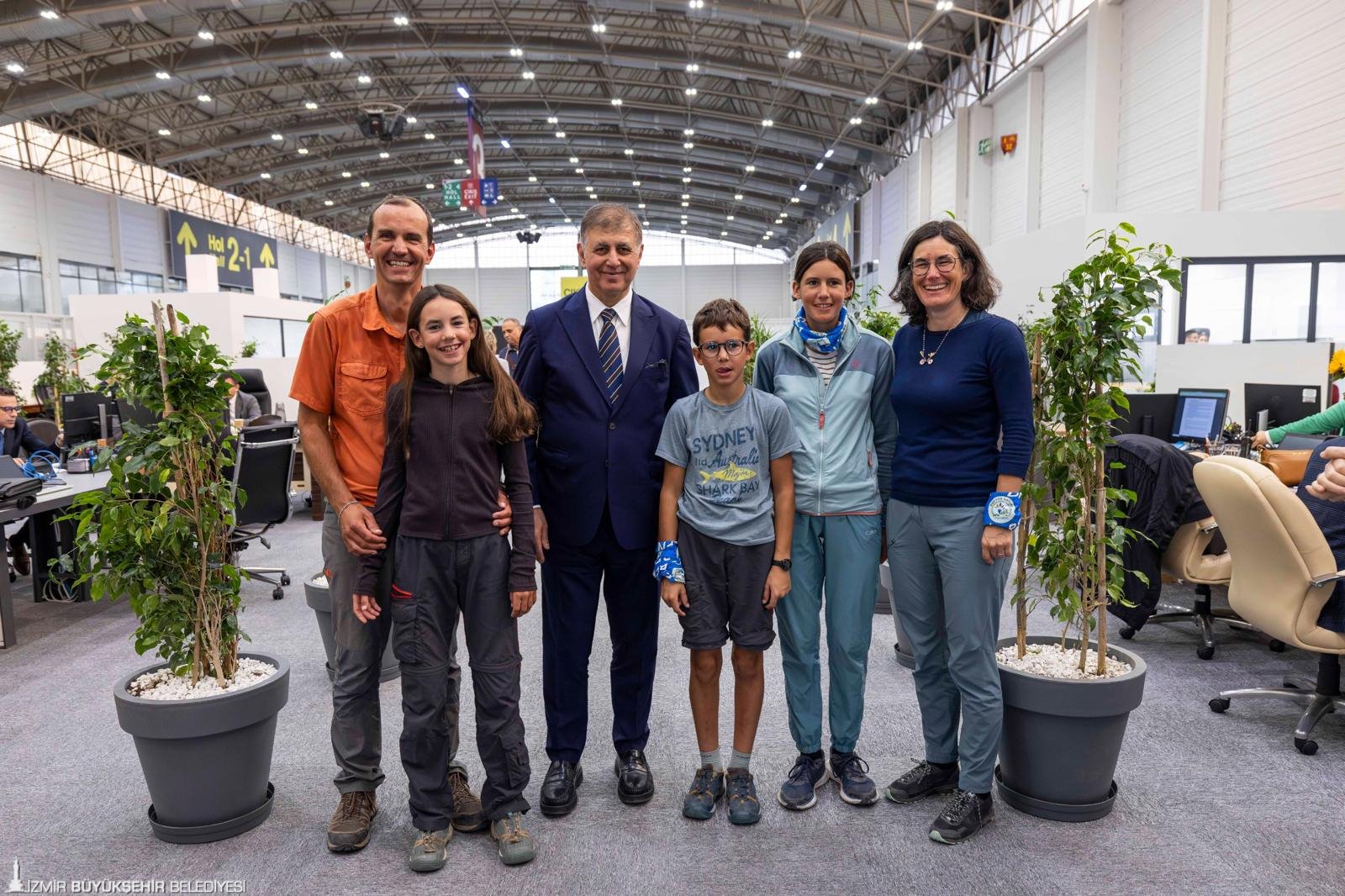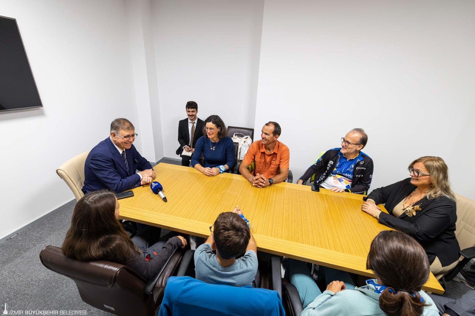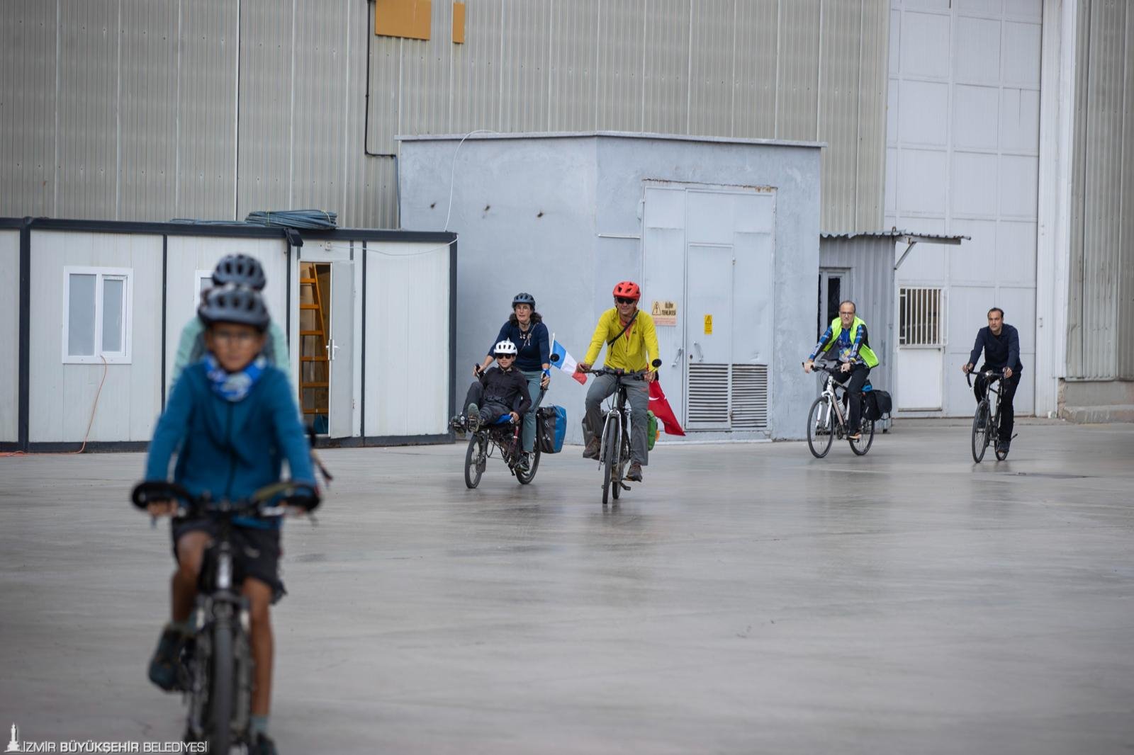 Makine mühendisi 44 yaşındaki Francois Ravanas, 47 yaşındaki sınıf öğretmeni Maud Ravanas ve çocukları 14 yaşındaki Colombine Ravanas, 12 yaşındaki Brune Ravanas ile 10 yaşındaki Eloi Ravanas, 10 aylık bir dünya turuna bisikletle çıktı. 3 aydır yolda olan aile, şimdiye kadar 11 ülke, 24 şehir ve 3 bin 700 kilometre yol yaptı. Yolculuklarına kamp kurarak ilerleyen ailenin rotasında İzmir de yer aldı. İzmir Büyükşehir Belediye Başkanı Dr. Cemil Tugay’ı, Kültürpark’ta yer alan açık ofiste ziyaret eden aile, Başkan Tugay’ı Fransa’ya davet etti. Ziyarette yer alan İzmir Bisiklet Derneği Başkanı Mustafa Karakuş ve Ravanas ailesi, İzmir’de bisiklet trafiğinin yoğun olduğunu dile getirerek bisikletli gezginler için duş ve tuvalet ihtiyaçlarının karşılanması amacıyla hostel tipi bir yapı gerektiğini söyledi. Başkan Tugay, kuzey ve güney aksında iki yapı olacak şekilde proje çalışması yapılabileceğini kaydetti.