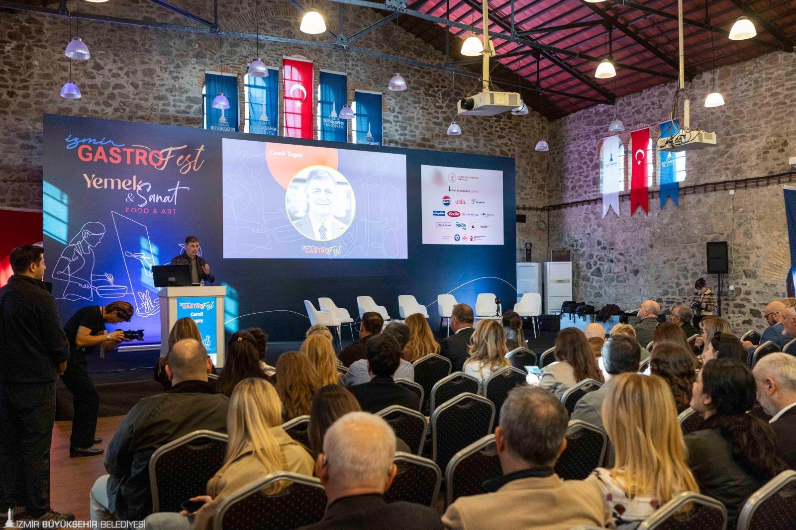 İzmir'in inanılmaz bir gastronomi kültürüne sahip olduğunu belirten Tugay, “Biz Akdeniz şehriyiz. En güzel şiirlerin yazıldığı coğrafya. En güzel şarkıların bestelendiği yer. Dünyada en güzel ve öncelikli şarapların yapıldığı topraklarda olduğumuzu biliyoruz. İzmir, Akdeniz'in kalbinde tarih boyunca hem bereketin, hem de zengin mutfakların simgesi olan bir kent. Yüz yıllar boyunca farklı coğrafyalardan gelen insanların getirdiği tariflerle, alışkanlıklarla yoğrulan bir liman kenti. Bu harmoni içerisinde kendine has kültürünü de her zaman koruyan bir coğrafya. Her ilçemiz, mutfak kültürünün ayrı bir hikayesini anlatıyor. Ancak bu zenginliği korumanın ötesine geçmemiz gerekiyor. Bizim kültürümüzün en büyük eksiği, ülkeye ve dünyaya bu kültürü tanıtmakla ilgili yeterince çaba göstermiyor oluşumuz” diye konuştu.
