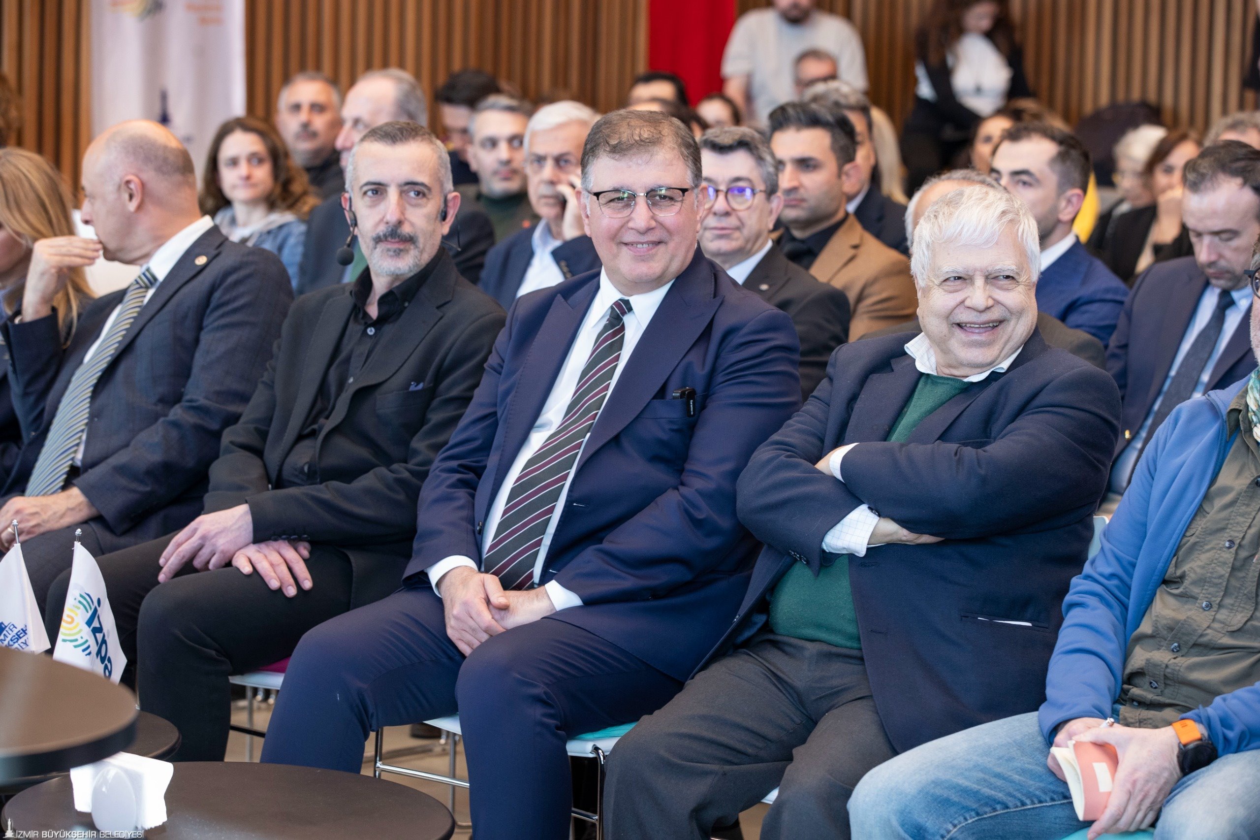 Panelin açılış konuşmasını yapan İzmir Büyükşehir Belediye Başkanı Dr. Cemil Tugay, kentin gelecek 50 yılını planlayarak doğru işler yapmayı hedeflediklerinin altını çizdi. Bu sürecin geçmişten kopuk düşünülmemesi gerektiğini aktaran Başkan Tugay, “Geçmiş aslında geleceğe dair pek çok ipucu da veriyor. Önceki 50 ve sonraki 50 yılın bir bütün olarak görülmesi gerekiyor. Bilgi temelli, veriye dayalı bu tür çalışmalar bu yüzden çok önemli. Gelecek 50 yıl, geçmiş 50 yıl kadar sakin geçmeyecek. Hepimiz bunun farkındayız. Daha fazla kriz aynı zamanda insan yaşamına, doğaya dönük pek çok tehdit yaşanacak. Genç arkadaşlarımız bunları yaşayacak. 50 yıl önce böyle bir çalışma yapılsaydı bugün İzmir, ülkemiz veya dünya daha iyi bir yerde olacaktı. Bizler 50 yıl sonrasını göremeyecek olabiliriz ancak geleceğe sağlıklı bir miras bırakmak çok önemli. Bize de bu konuda üzerimize düşeni yapmak yakışır. Sadece belediye yönetimi olarak değil kentine karşı sorumluluk taşıyan İzmirliler olarak bu çalışma için çaba gösteriyoruz. Ben de elimden geldiğince bu çalışmanın bir parçası olmaya çalışıyorum” dedi.