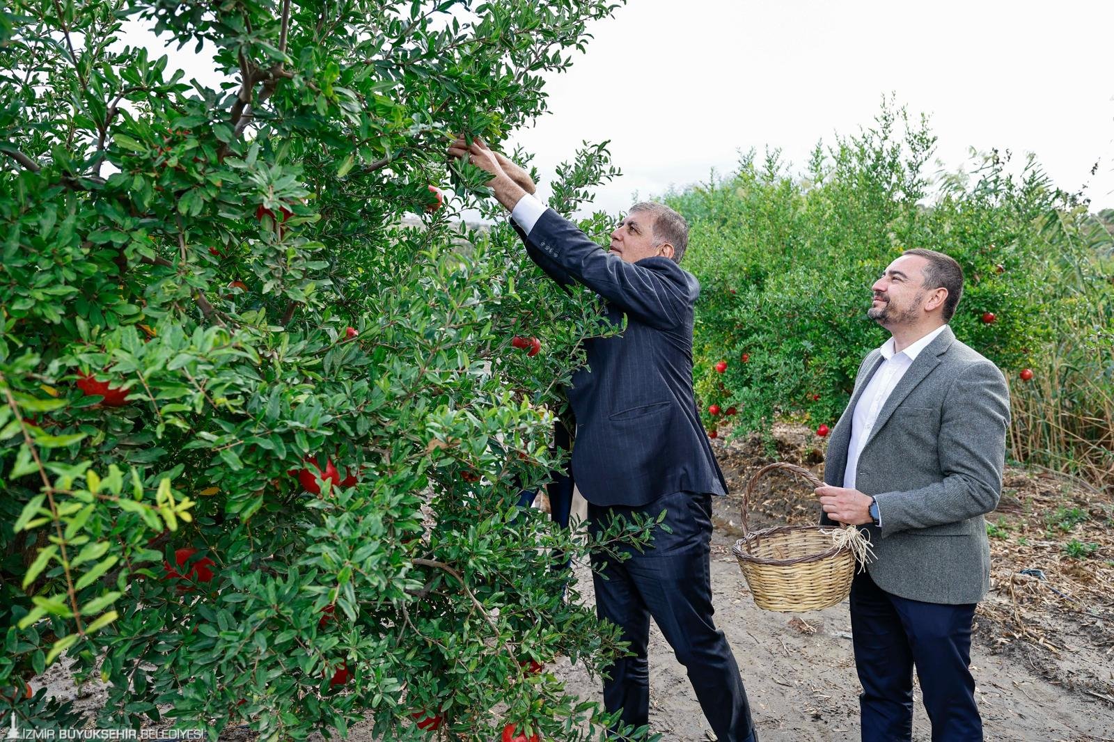 Dünya nar ihracatında ilk 10 içerisinde yer alan İzmirli üreticiler hasat yaptı. İzmir Büyükşehir Belediye Başkanı Dr. Cemil Tugay, Selçuk’ta gelenekselleşen nar hasadında çiftçilerin bereketine ortak oldu. Selçuk’un Zeytinköy Mahallesi’nde düzenlenen nar hasadında Başkan Dr. Cemil Tugay’a Efes Selçuk Belediye Başkanı Filiz Ceritoğlu Sengel, İzmir Büyükşehir Belediyesi Genel Sekreter Yardımcısı İsmail Mutaf ve Büyükşehir bürokratları, Selçuk Belediyesi yöneticileri, meclis üyeleri, muhtarlar, kooperatif başkanları ve çok sayıda çiftçi eşlik etti.