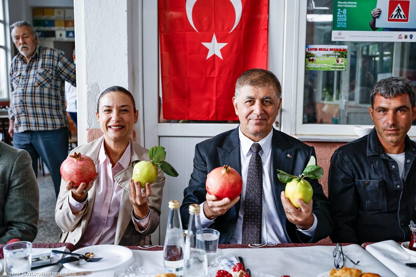 Tüm üreticilere bereketli bir sezon dileyen Başkan Tugay, “Sabah bu güzel bahçelerin arasından köye girdik. Bizleri çok güzel karşıladılar. Bu bölge meyve üretiminde gerçekten İzmir’in üslerinden birisi. Nar var, ayva var, mandalina var. Buradaki çiftçimiz işini hakkını vererek yapıyor. Narlar kaliteli ve lezzetli. Çok büyük kısmı da ihracata gidiyor. Başarılı oldukları meyvecilik ve bahçecilikle aslında İzmir’de başka bölgelere de örnek olabileceklerini düşünüyorum. O nedenle burada gördüğüm başarılı çalışmanın mimarı olan herkesi tebrik ediyorum. Bu katkıyı veren Selçuk Belediye’mize de teşekkür ediyorum. Buradaki bu güzel çalışmayı daha ileriye götürmek, önümüzdeki yıllarda da geliştirerek devam ettirmek için biz de çaba göstermeye devam edeceğiz” diye konuştu.