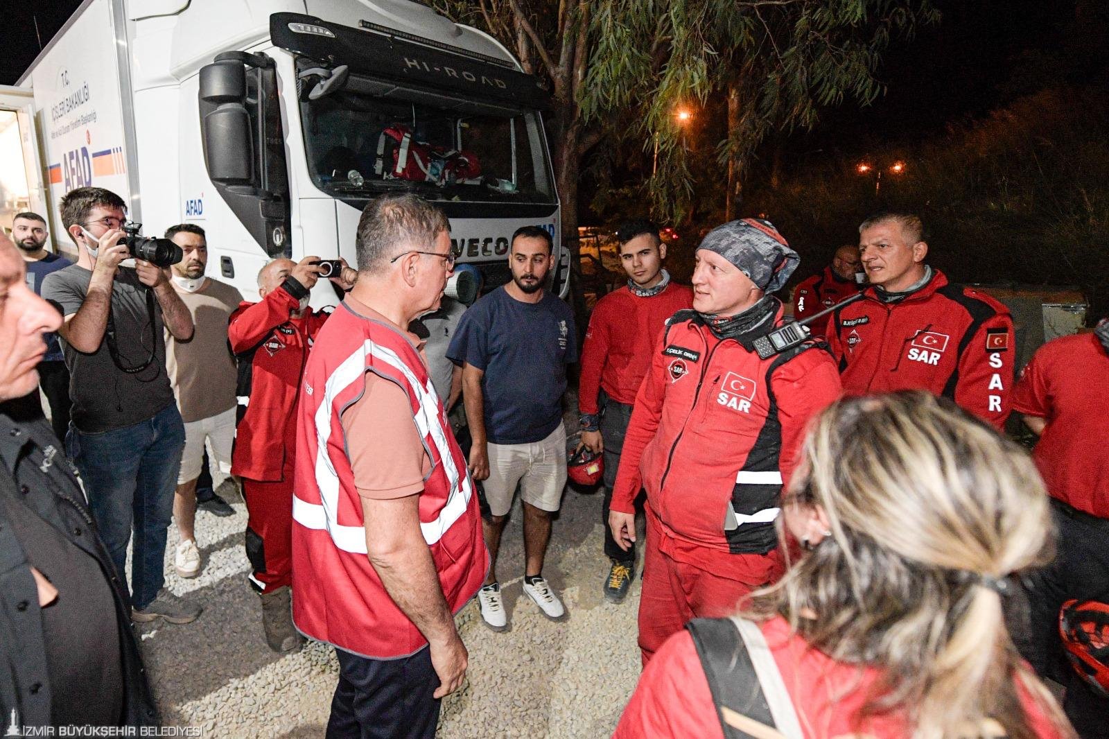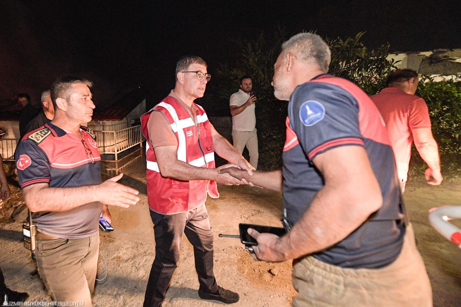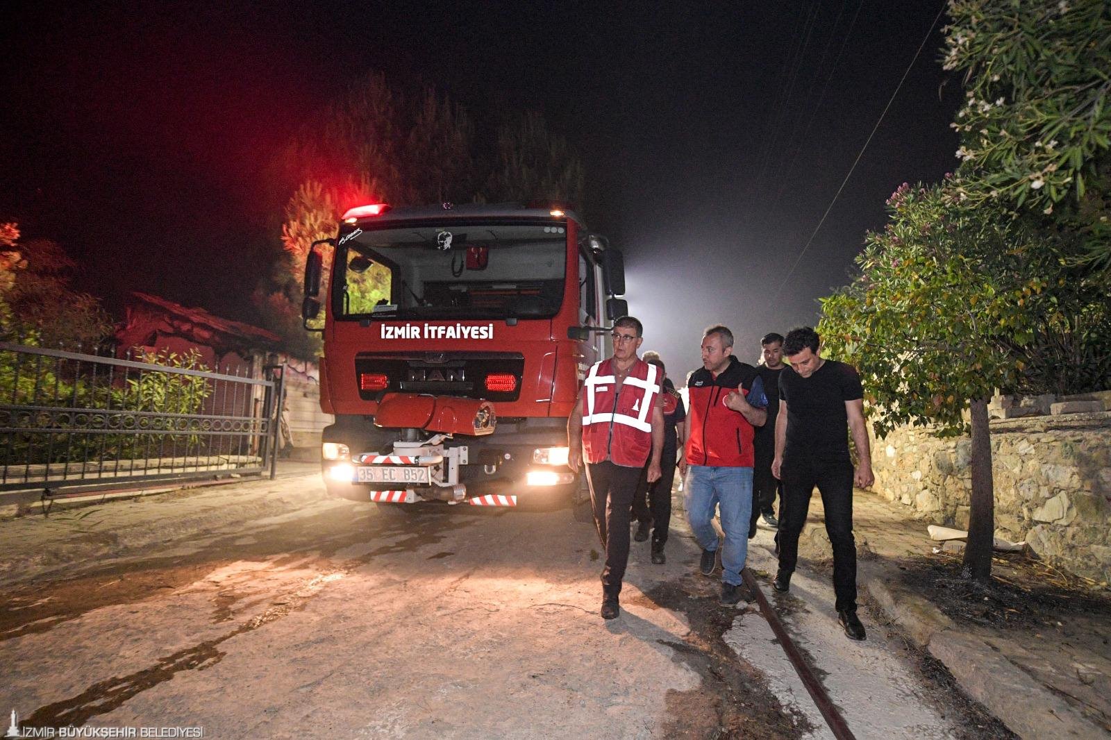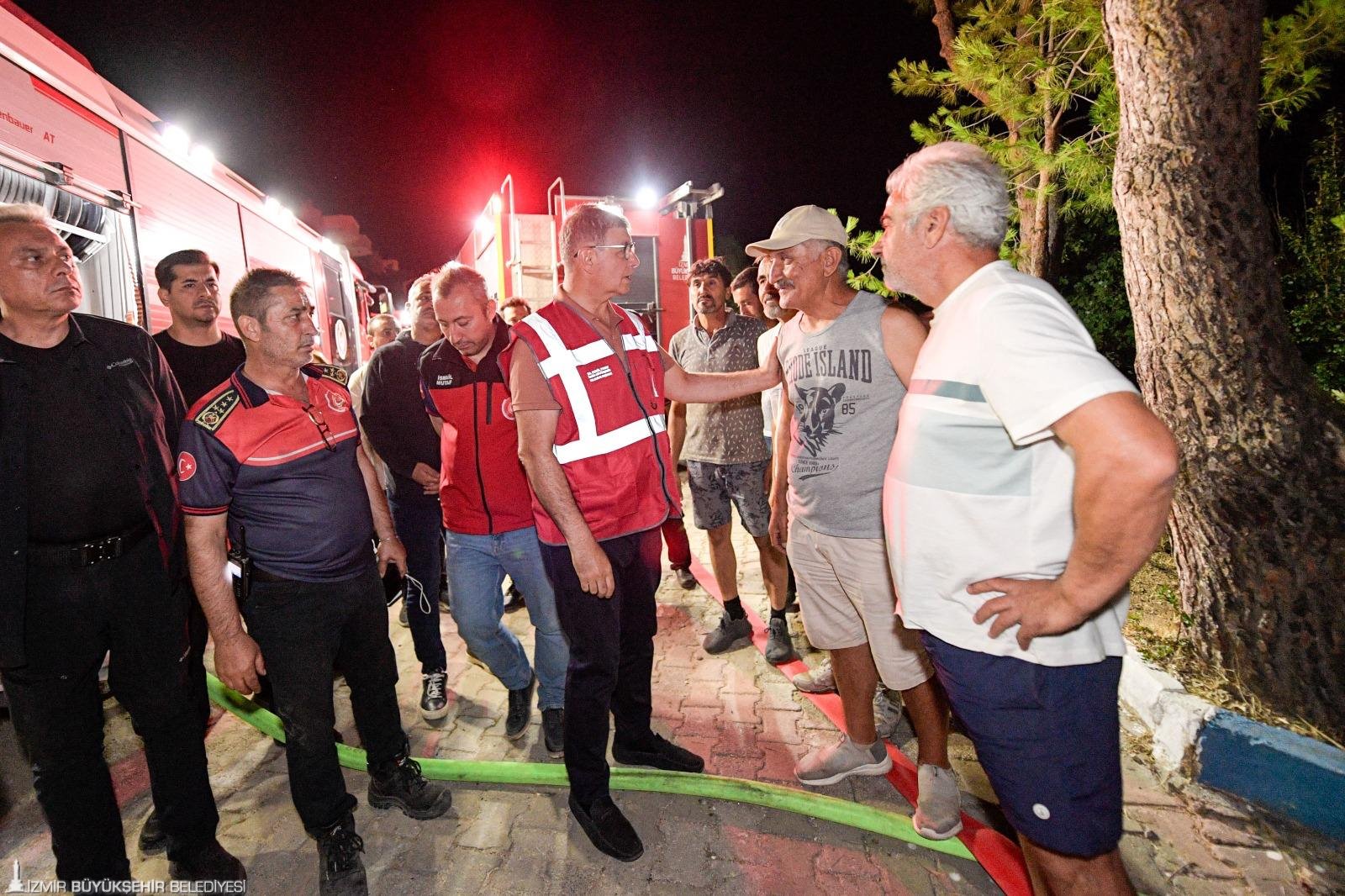 Genellikle yerleşim yerlerinin koruma altına alındığını söyleyen Başkan Tugay, “Ama sevindiğimiz şey, Payamlı Köyü, Orhanlı Köyü, Cumhuriyet Mahallesi gibi yerler ciddi tehdit altındaydı. Buraları korudu arkadaşlarımız. Neredeyse bütün itfaiye araçlarımız burada. Biz, bütün İzmir Büyükşehir Belediyesi ailesi olarak, itfaiye ile İZSU araçları ve personeli, Park ve Bahçeler, Fen İşleri gibi bütün araç gerecimiz ve personelimiz bu bölgedeydi. Denizli’den, Aydın’dan ve birkaç çevre ilden de bize yardıma geldiler. Şu an yolda olan araçlar da var. Yarın rüzgarlı hava devam edecek diye gördük, okuduk. Ondan dolayı yangına müdahalenin etkili şekilde devam etmesi ve tamamen sönene kadar çalışmanın devam etmesi gerekecek. Ama şu an için yerleşim yerlerini büyük ölçüde kontrol altına almış durumdayız. Riskli gibi görünen bir yer yok” şeklinde konuştu.