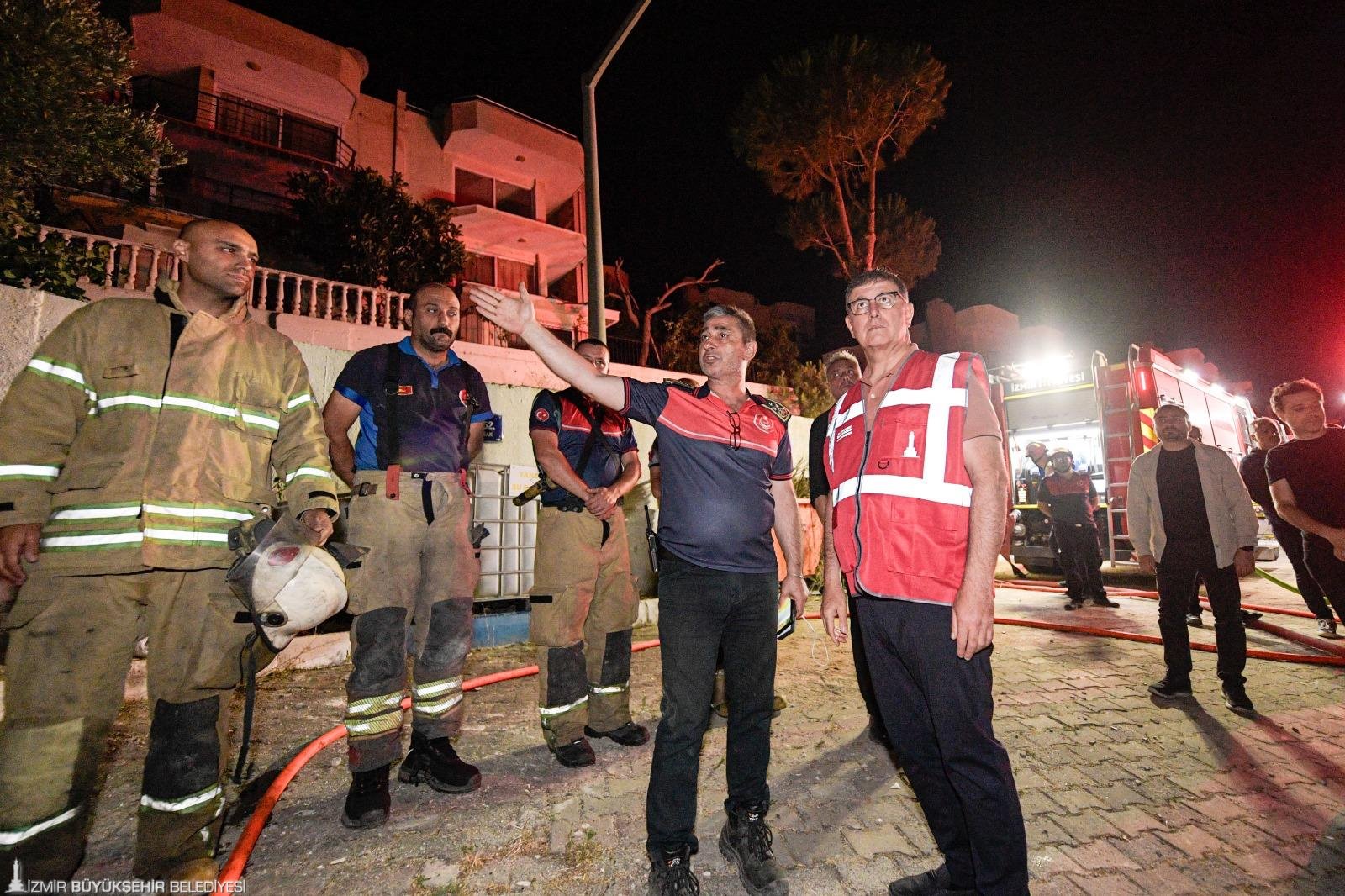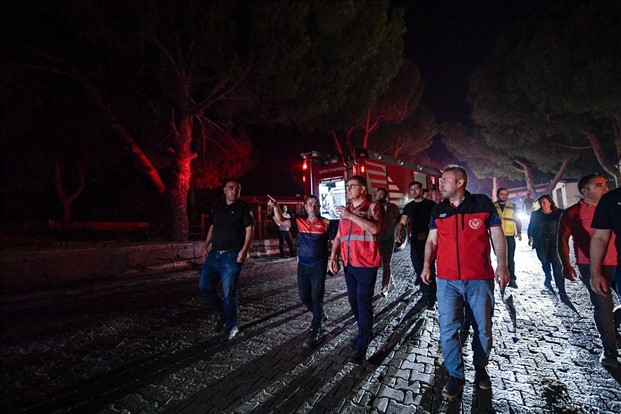 Yangında can kaybının olmadığını söyleyen Başkan Tugay, “Bulunduğumuz bölge Doğanbeyli bölgesi. Burada yazlık siteler var. Bir tarafta arkada gündüz saatlerinden beri başlayan orman yangını bazı bölgelerde orman yangını devam ediyor. Bulunduğumuz denize yakın bölgelerde de yazlık sitelerin olduğu alana da ne yazık ki sıçramış durumda. Akşam saat 7 civarında buradan ilk ihbar geliyor ve itfaiye araçlarımız o saatten beri müdahale ediyorlar. 20 civarında yazlık evin ve birkaç tane aracın yandığı tespit edildi. En fazla hasar olan yer burası, Doğankent Sitesi. Bunun dışında diğer siteler büyük ölçüde korundu. Ömür Sitesi’nde 4 tane evin yandığını biliyoruz. Yelkent Sitesi’nde 2 tane evin yandığını biliyoruz” ifadelerini kullandı.