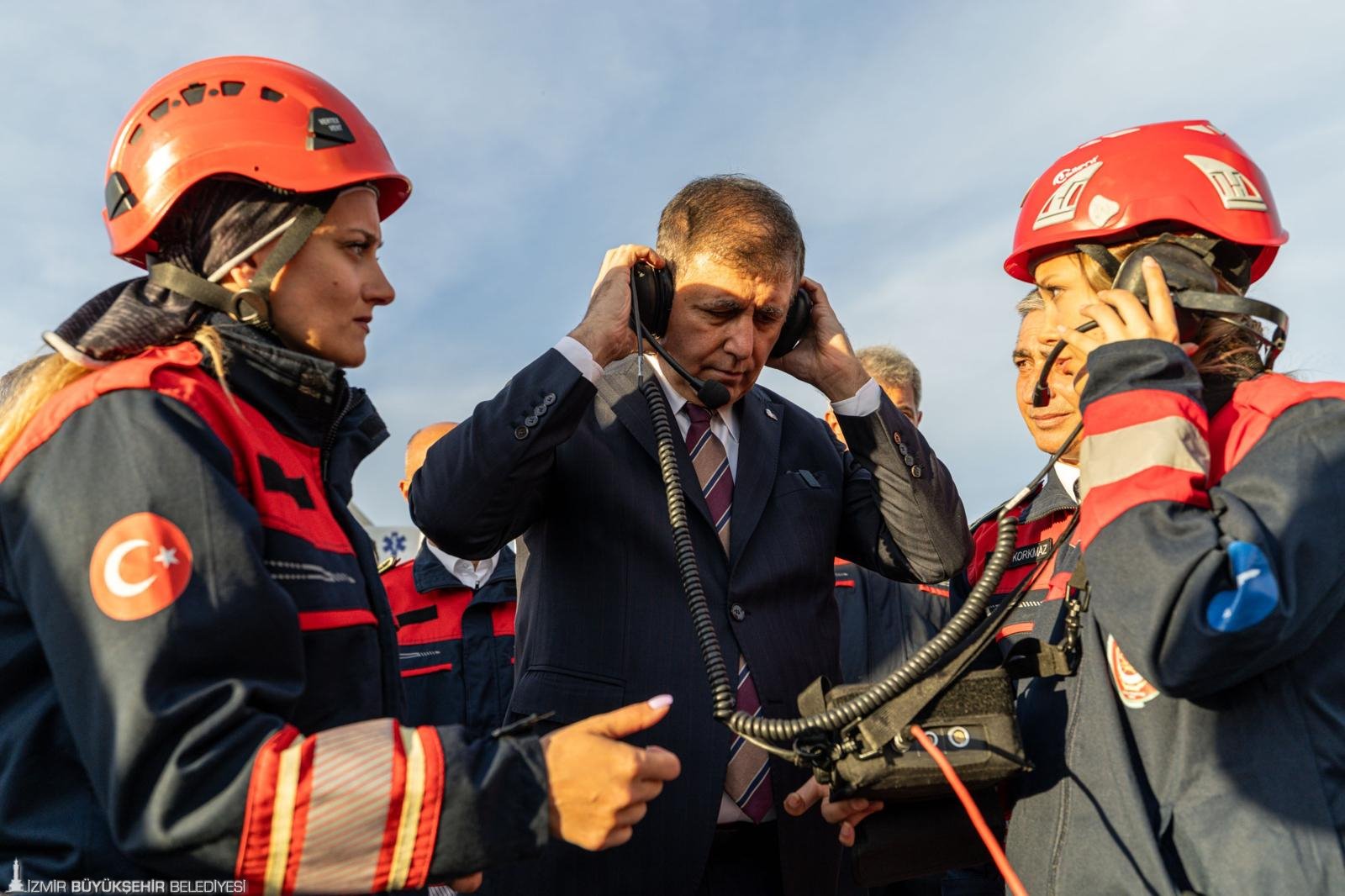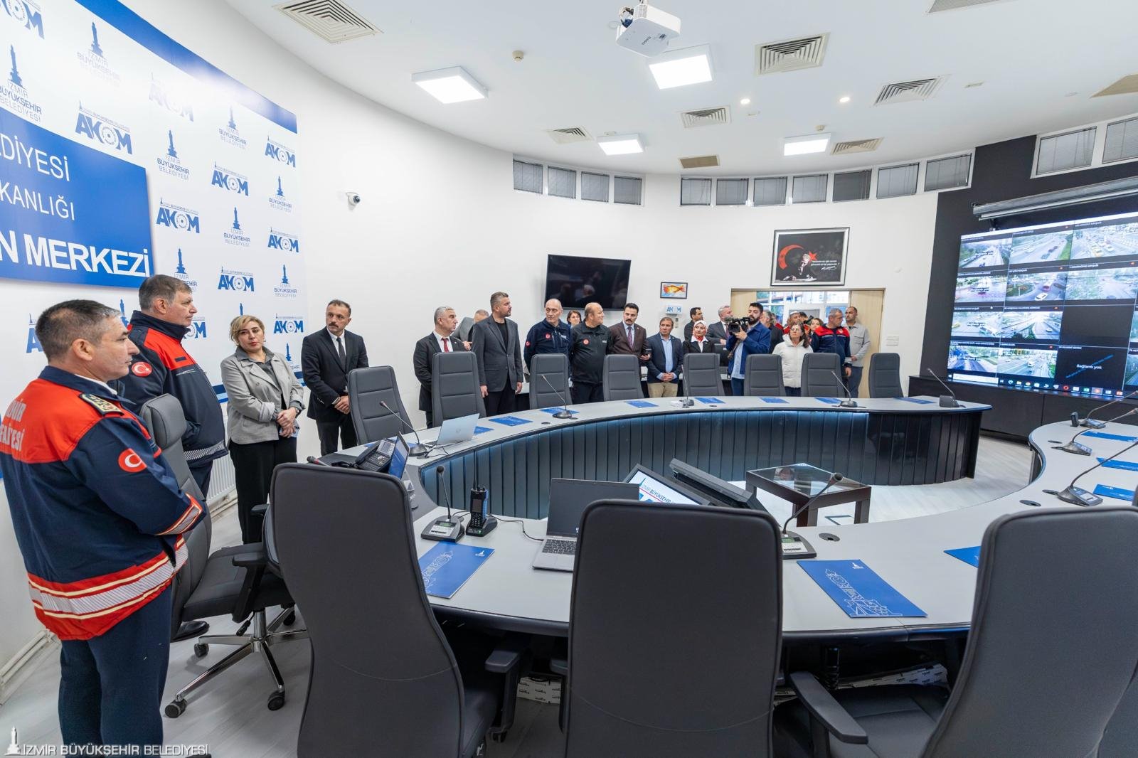 İzmir Büyükşehir Belediye Başkanı Dr. Cemil Tugay, aynı yerleşke içerisinde bulunan Afet İşleri Dairesi Başkanlığı Afet Koordinasyon Merkezi'ni (AKOM) ziyaret etti. Afet İşleri Dairesi Başkanı Eylem Ulutaş Ayatar, AKOM'un çalışmaları hakkında bilgi verdi.