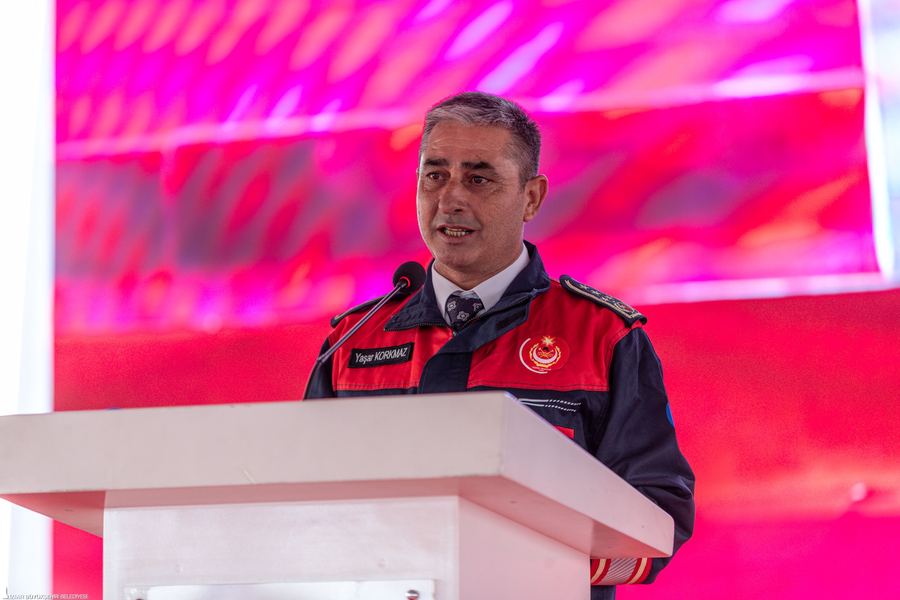 İtfaiyeciliğin yalnızca beceri değil aynı zamanda karakter işi olduğunu söyleyen Korkmaz, “Disiplin, cesaret, dayanıklılık kadar; liyakat ve şeffaflık da bu mesleğin temel taşıdır. Bu teşkilatın her bir neferi, sahip olduğu görevi bilgiye, emeğe, adalete ve dürüstlüğe dayanarak taşır. Bu değerleri kendine rehber edinen her çalışan, bu şehrin güvenliğine sadece görev bilinciyle değil, aynı zamanda örnek bir duruşla katkı sunar. İyi bir itfaiyeci yalnızca sahadaki yeteneğiyle değil; sosyal çevresindeki tutumuyla, topluma karşı sorumluluğuyla ve davranışlarıyla da örnek olur. Bu teşkilat, hem ulusal hem de uluslararası düzeyde örnek gösterilmeye devam edecektir. Hep birlikte daha güvenli bir gelecek; havası, suyu, toprağı, ormanı tertemiz bir İzmir için çalışmaya devam edeceğiz” dedi.