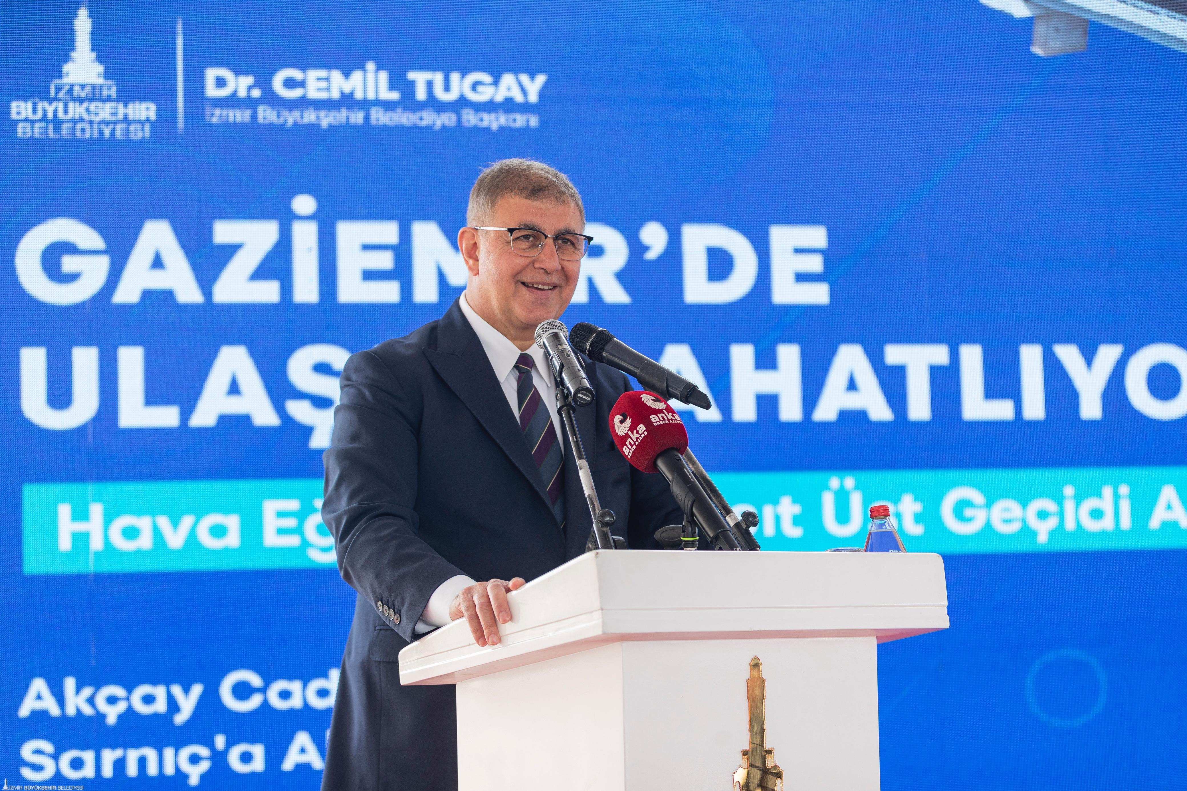 Açılış konuşmalarının ardından Gaziemir Hava Eğitim Yolu Taşıt Üst Geçidi hizmete açıldı. Başkan Tugay, kurdeleyi kestikten sonra köprü üzerinden davetlilerle birlikte karşıya geçti. Sarnıç köprüsüne alternatif oluşturan taşıt köprüsü, Adnan Menderes Havalimanı, Ege Serbest Bölgesi ve önemli alışveriş merkezlerinin ulaşım aksı üzerindeki Gaziemir ulaşımını büyük ölçüde rahatlatacak. Akçay Caddesi’nden Sarnıç’a ulaşımı kolaylaştıracak köprü, Dokuz Eylül Mahallesi ile Menderes Mahallesi’ni birbirine bağlayacak. Böylelikle Gaziemir aksında özellikle sabah ve akşam saatlerinde oluşan trafik yoğunluğu azalacak.
