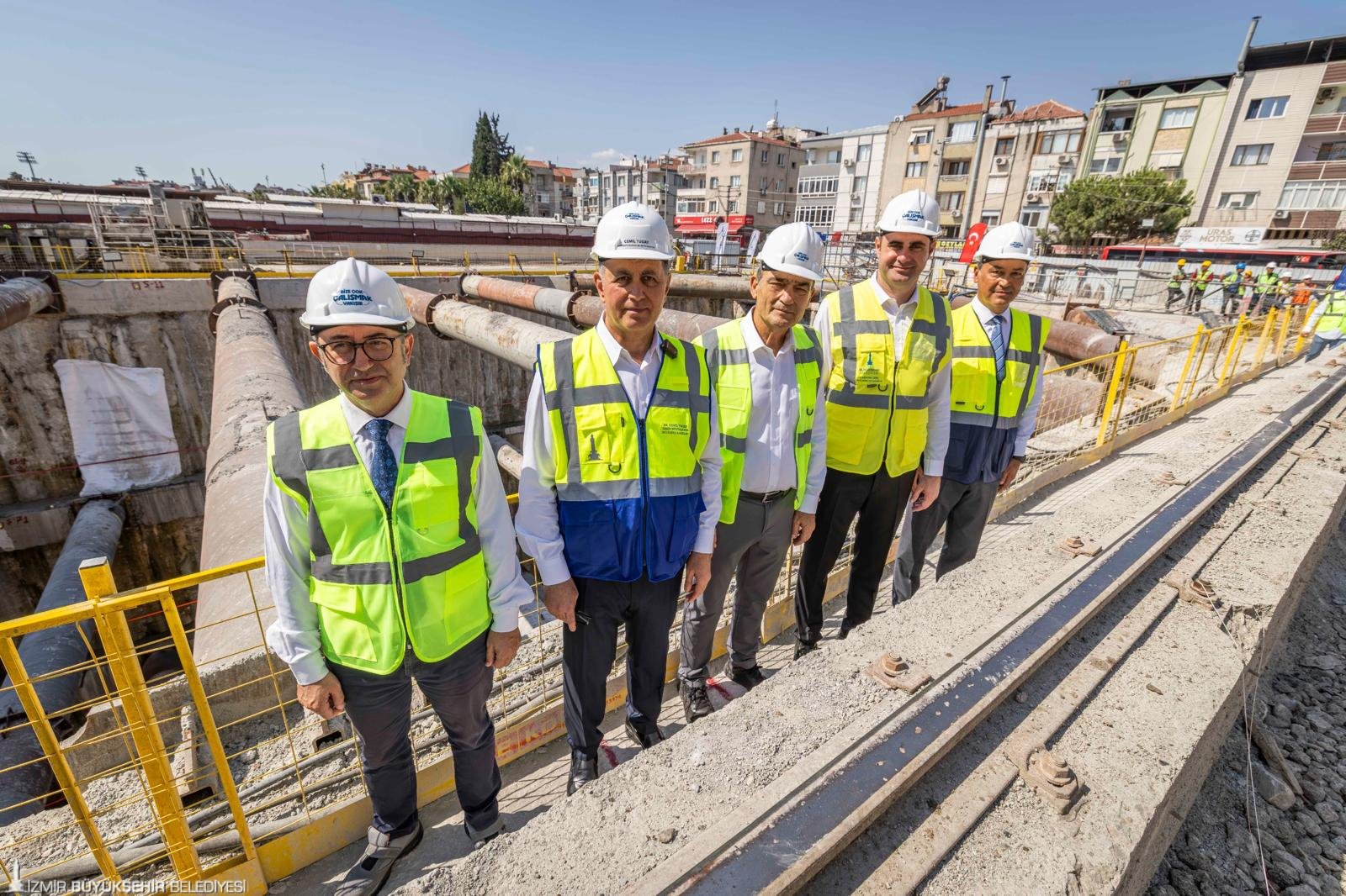 İzmir Büyükşehir Belediye Başkanı Dr. Cemil Tugay’ın göreve başladığında tamamlanma oranı yüzde 2 olan Buca Metrosu tünellerinde yüzde 77 seviyesine gelindi. Her biri 100 metre uzunluğunda, 7 metre genişliğinde ve 450 ton ağırlığındaki dört tünel açma makinesinin (TBM) aynı anda çalıştığı hattın yapımında önemli bir aşama daha kaydedildi. Üçyol İstasyonu’ndan kazıya başlayan tünel açma makinesi (TBM) Şirinyer İstasyonu’nda ışığı gördü. Toplamda 19 bin 500 metrelik tünel kazısının 15 bin 360 metrelik kısmı da tamamlanmış oldu. İzmir Büyükşehir Belediye Başkanı Dr. Cemil Tugay, önemli bir eşiğin daha aşıldığı metro inşaatında çalışmaları yerinde inceledi. Başkan Dr. Cemil Tugay’a İzmir Büyükşehir Belediyesi Başkan Vekili Dr. Zafer Levent Yıldır, İzmir Büyükşehir Belediyesi Genel Sekreteri Zeki Yıldırım, İzmir Büyükşehir Belediyesi Genel Sekreter Yardımcıları Çağatay Güç, İsmail Mutaf, Övünç Özgen, İzmir Büyükşehir Belediyesi Raylı Sistem Dairesi Başkanı Alpaslan Kara, Gülermak Buca Metrosu Proje Müdürü Andaç Bayram ve projede çalışan mühendisler eşlik etti.