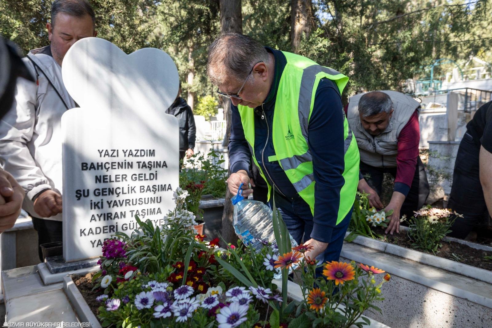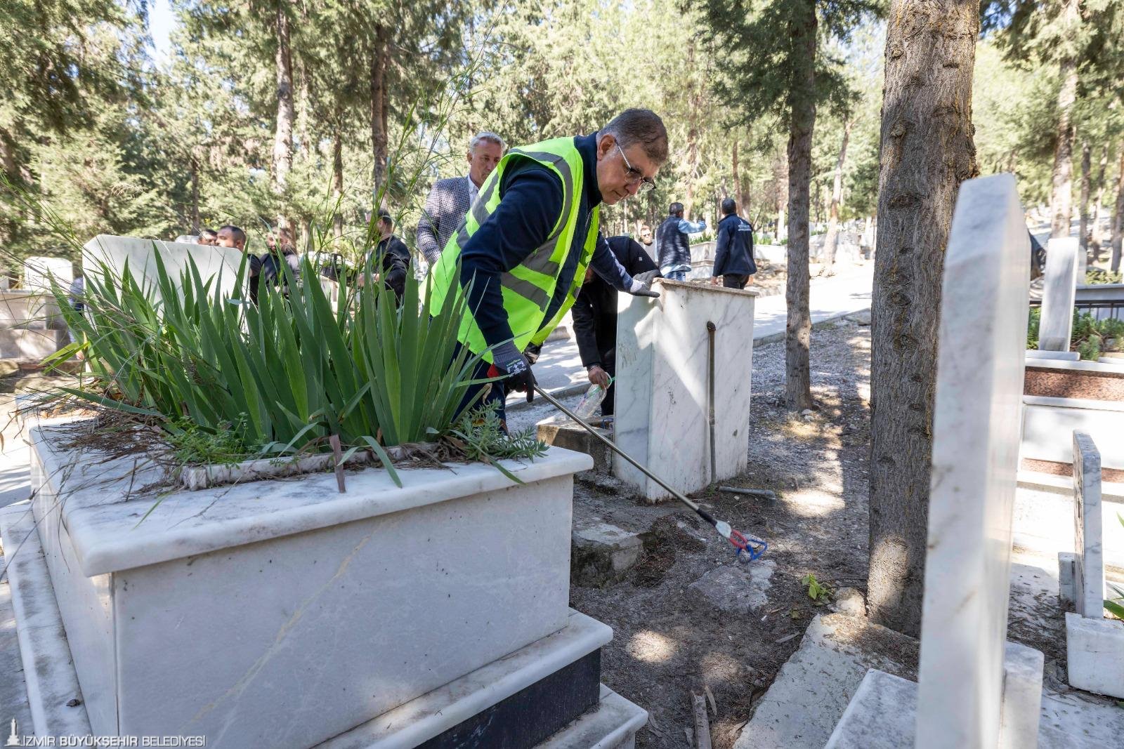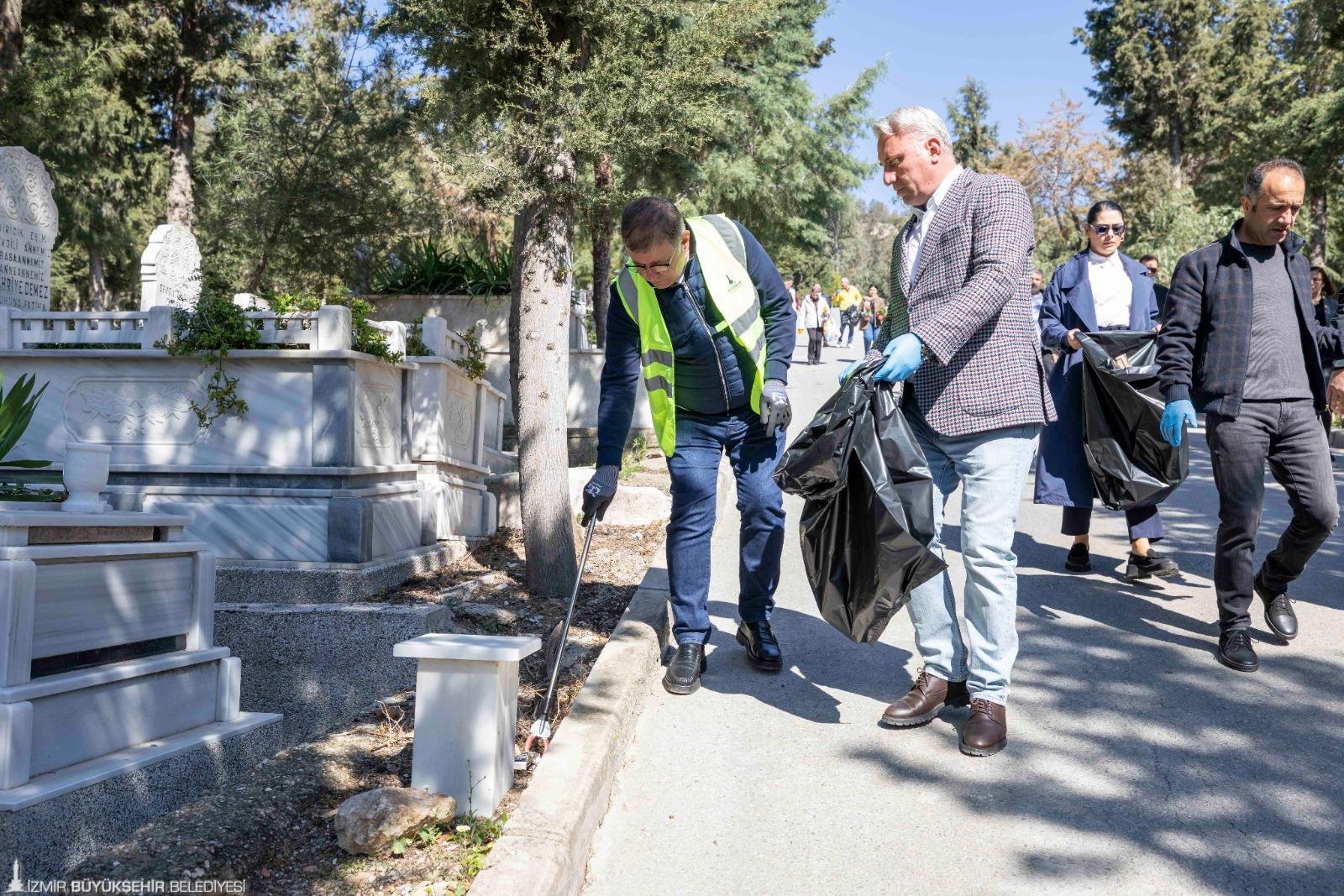 Etkinlik kapsamında İzmir Büyükşehir Belediyesi, sosyal sorumluluk projesine katılan yurttaşlara eldiven, çöp torbası ve mezarlıkları güzelleştirecek çiçek fideleri verdi. Başkan Tugay, yurttaşlarla eldivenleri takarak mezarlık yol kenarları ve kabirlerde yer alan çöpleri teker teker topladı. Etkinlikle özellikle kabirlerin içlerinde ve çevrelerinde görünmeyen kirliliğe dikkat çekildi. Temizlik çalışmalarının yanı sıra Başkan Tugay, mesai arkadaşı merhum Haydar İnanır’ın kabrini de ziyaret etti; mezarlık ziyareti yapan yurttaşlara başsağlığı diledi.