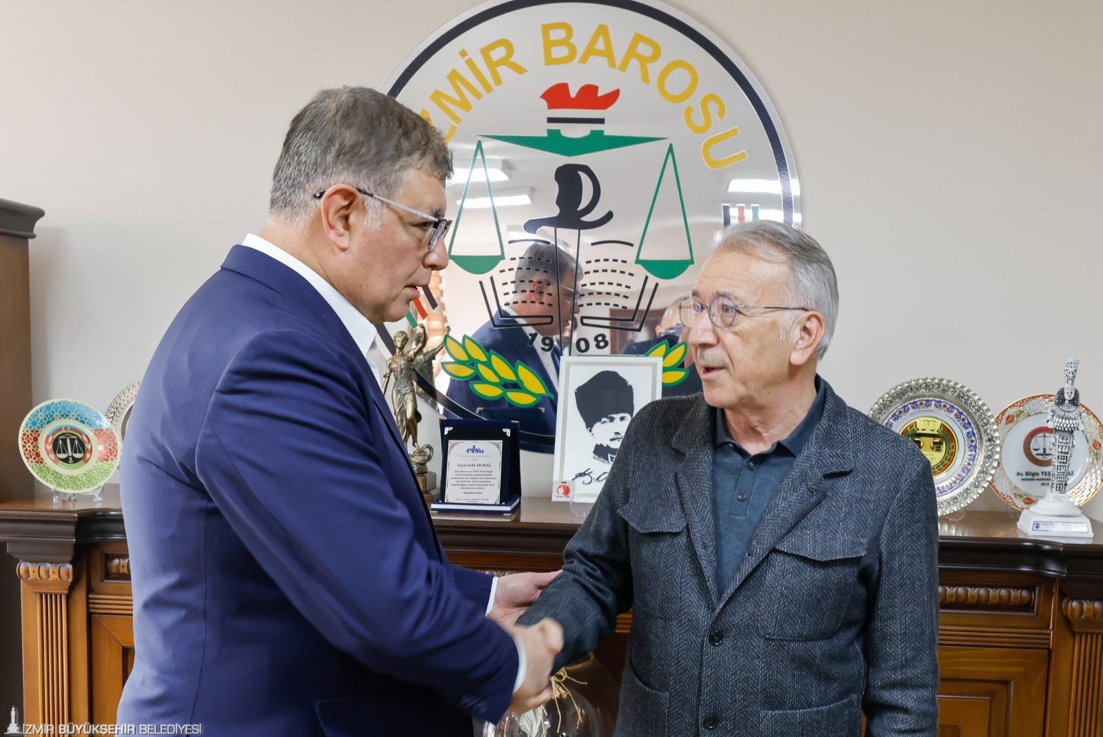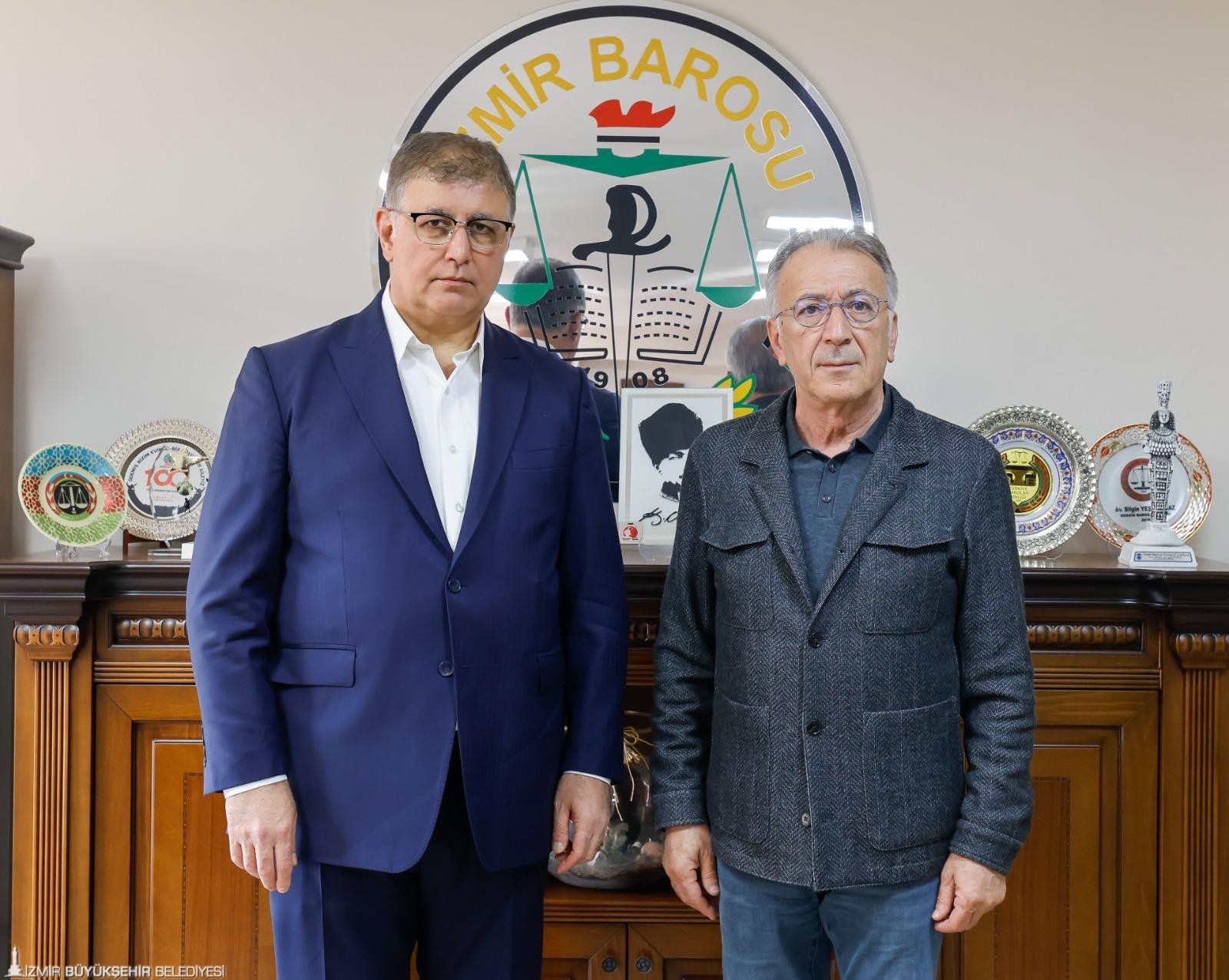 İzmir Büyükşehir Belediye Başkanı Dr. Cemil Tugay, İstanbul 2’nci Asliye Hukuk Mahkemesi’nin İstanbul Barosu Başkanı İbrahim Kaboğlu ile yönetim kurulu üyelerinin görevden alınmasına ilişkin verdiği kararın ardından İzmir Barosu Başkanı Sefa Yılmaz ve yönetimini ziyaret etti. İzmir Barosu’na gelen Başkan Dr. Cemil Tugay, duruma dair hukuki süreç hakkında bilgi aldı. Toplantıda ayrıca İstanbul Büyükşehir Belediye Başkanı Ekrem İmamoğlu’nun gözaltına alındığı 19 Mart tarihinden beri İzmir’de ve Türkiye genelinde devam eden protesto yürüyüşleri hakkında görüşüldü.