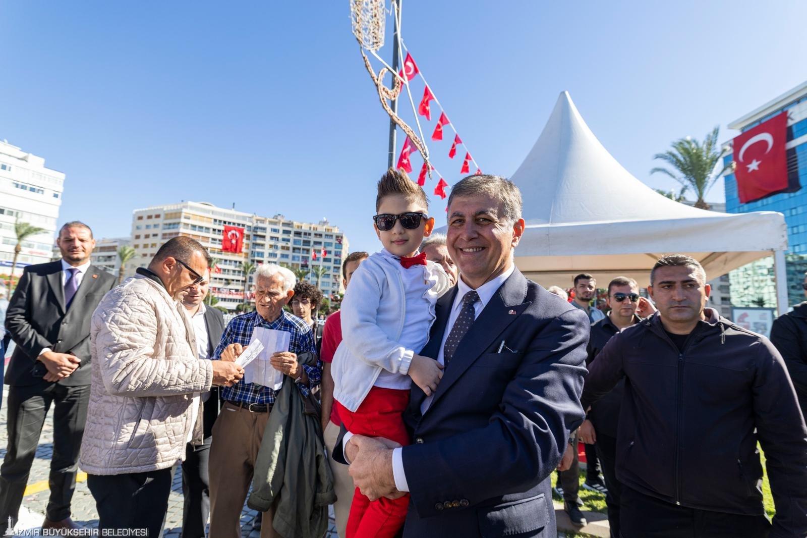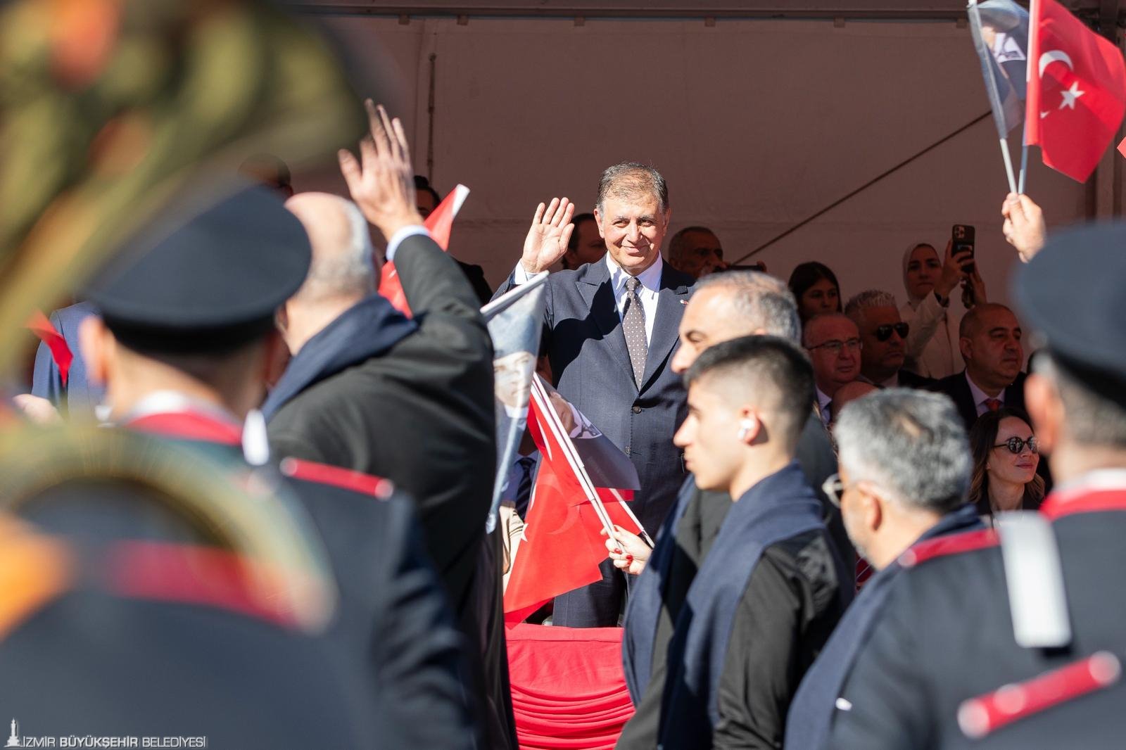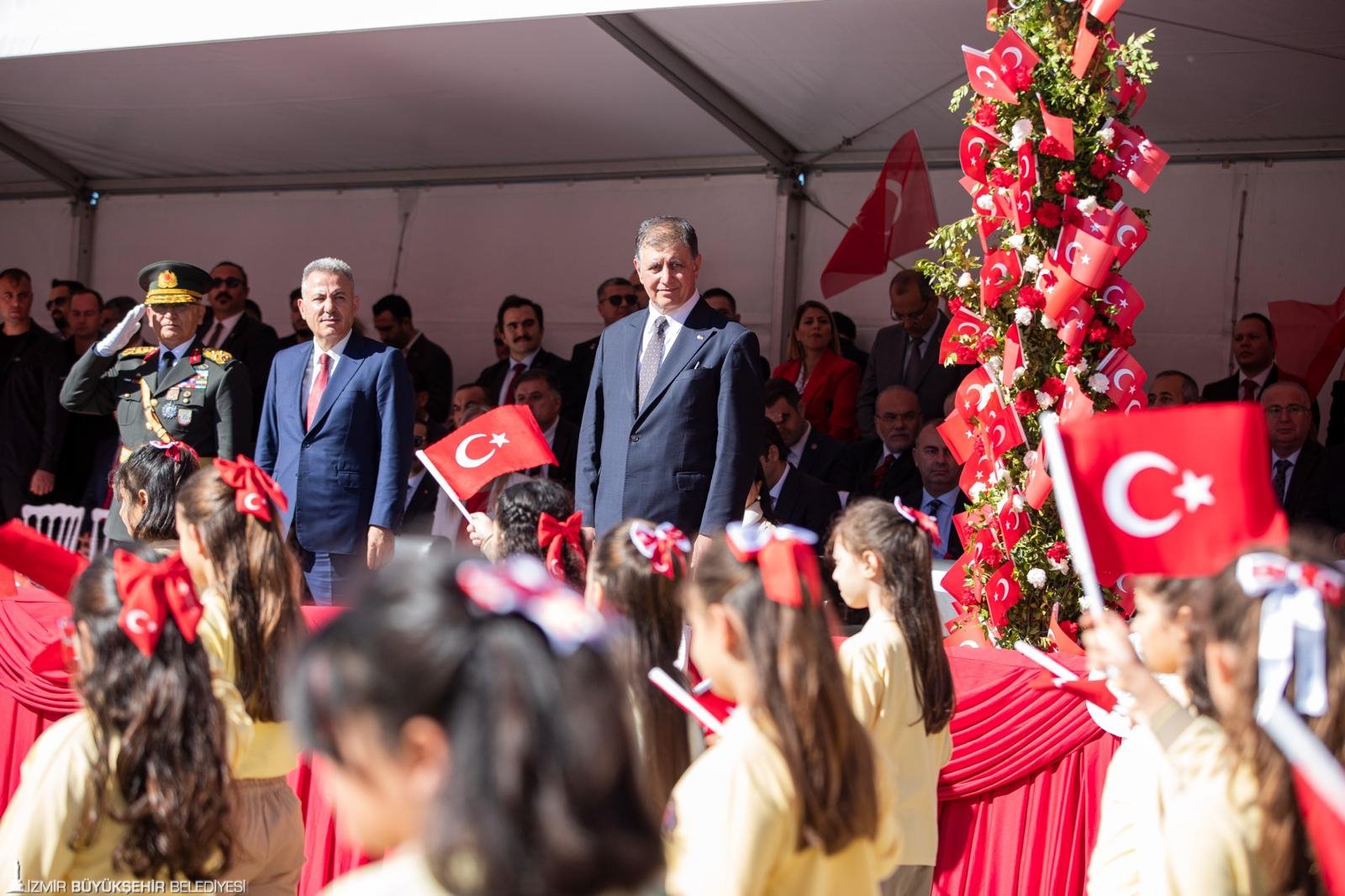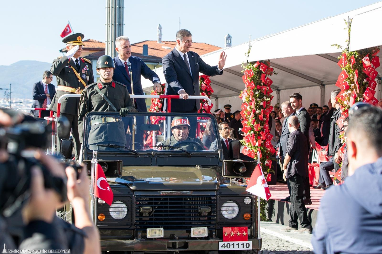 Kutlamaların ikinci adresi ise Cumhuriyet Meydanı oldu. Törene İzmir Valisi Dr. Süleyman Elban ve eşi İrem Beyza Elban, İzmir Büyükşehir Belediye Başkanı Dr. Cemil Tugay ve eşi Öznur Tugay, Ege Ordusu ve Garnizon Komutanı Orgeneral İrfan Özsert ve eşi Fatma Özsert, siyasi partilerin il başkanları ve yöneticileri, milletvekilleri, sivil toplum kuruluşlarının temsilcileri ve İzmirliler katıldı. Vali Dr. Süleyman Elban, Başkan Dr. Cemil Tugay ve Orgeneral İrfan Özsert askeri araçla tören birliklerini ve yurttaşları selamlayarak Cumhuriyet Bayramı’nı kutladı