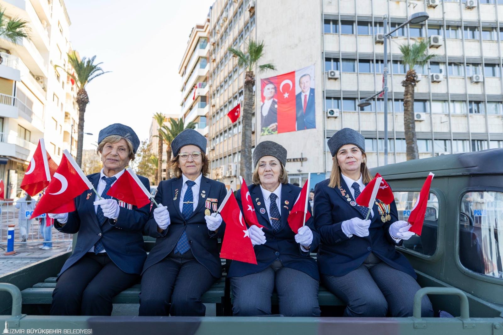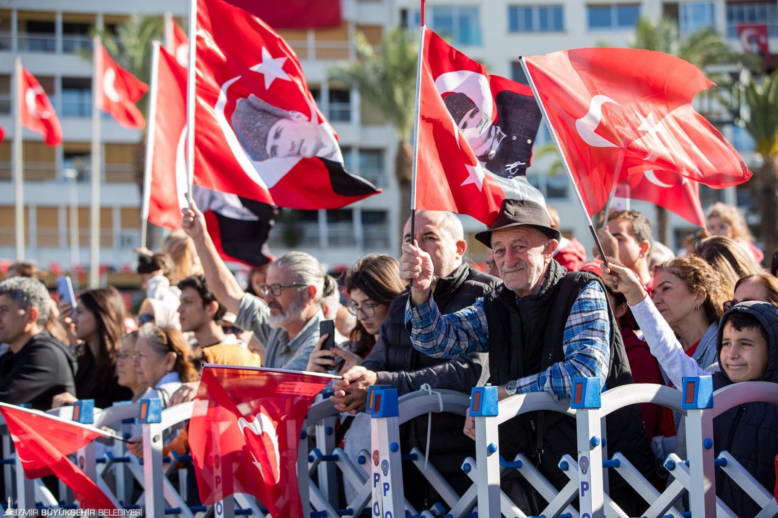Konuşmaların ve gösterilerin ardından geçit töreni düzenlendi. Ellerinde Türk bayrakları taşıyan öğrenciler, geçit törenin başında yer aldı. Ardından sırasıyla meslek odaları, dernekler, muhtarlar vakıflar gibi çok sayıda kurum geçit törenine katıldı. Tören, İzmir Büyükşehir Belediyesi Zabıtası ve İtfaiyesi ile askeri birliklerin geçit töreni ile son erdi.