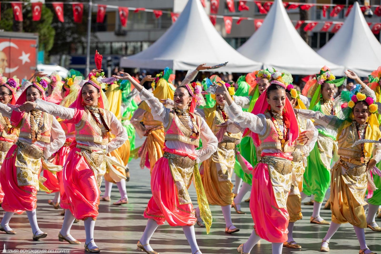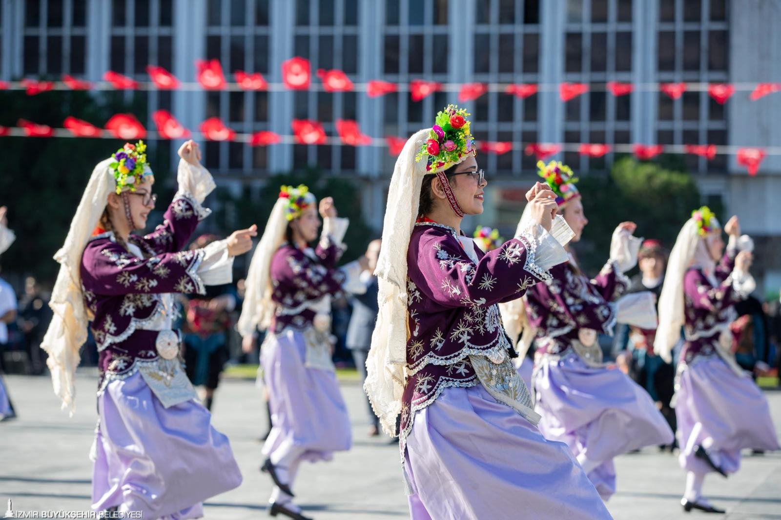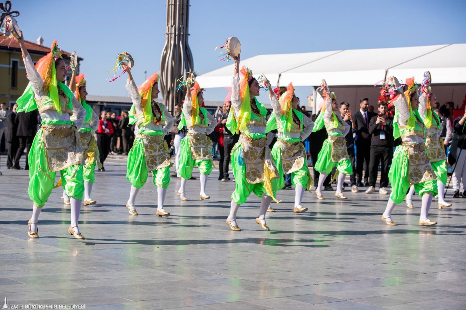 Kutlamalarda, Ege Üniversitesi Halk Dansları Topluluğu, İzmir Yüksek Teknoloji Enstitüsü Halk Oyunları Ekibi, Milli Eğitim Müdürlüğü'ne bağlı okulların halk oyunları ekipleri renkli gösteriler düzenlendi. Törende öğrenciler günün anlam ve önemine ilişkin şiirler de okundu.