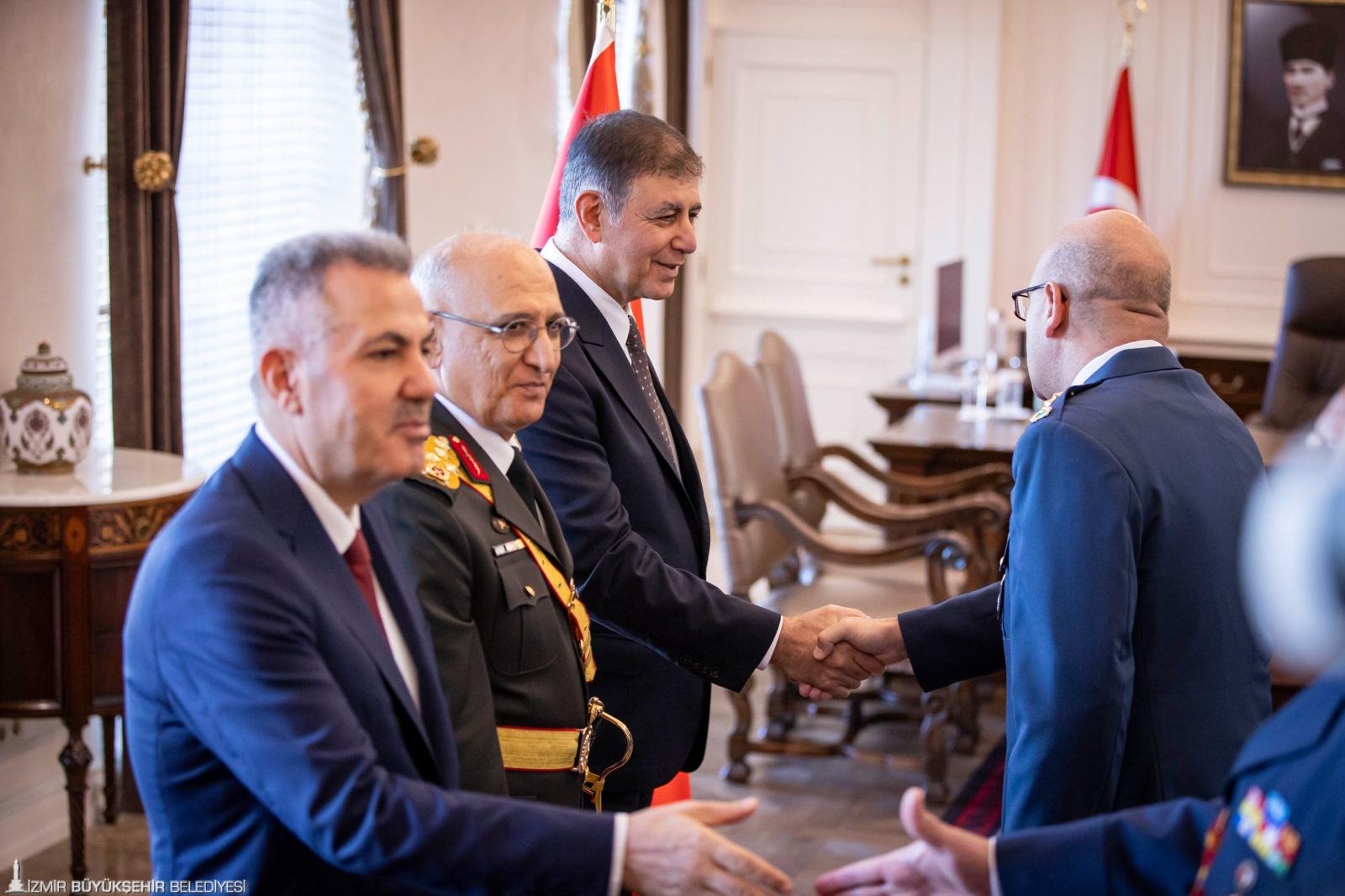 Cumhuriyetin 102. yılı İzmir'de büyük bir coşkuyla kutlanıyor. Günün son saatlerine kadar devam edecek 29 Ekim Cumhuriyet Bayramı kutlamalarının ilk adresi İzmir Hükümet Konağı oldu. İzmir Valisi Dr. Süleyman Elban, İzmir Büyükşehir Belediye Başkanı Dr. Cemil Tugay ve Ege Ordusu ve Garnizon Komutanı Orgeneral İrfan Özsert, kamu kurumları, siyasi partiler, oda ve sivil toplum kuruluşu temsilcilerinin tebriklerini kabul etti.