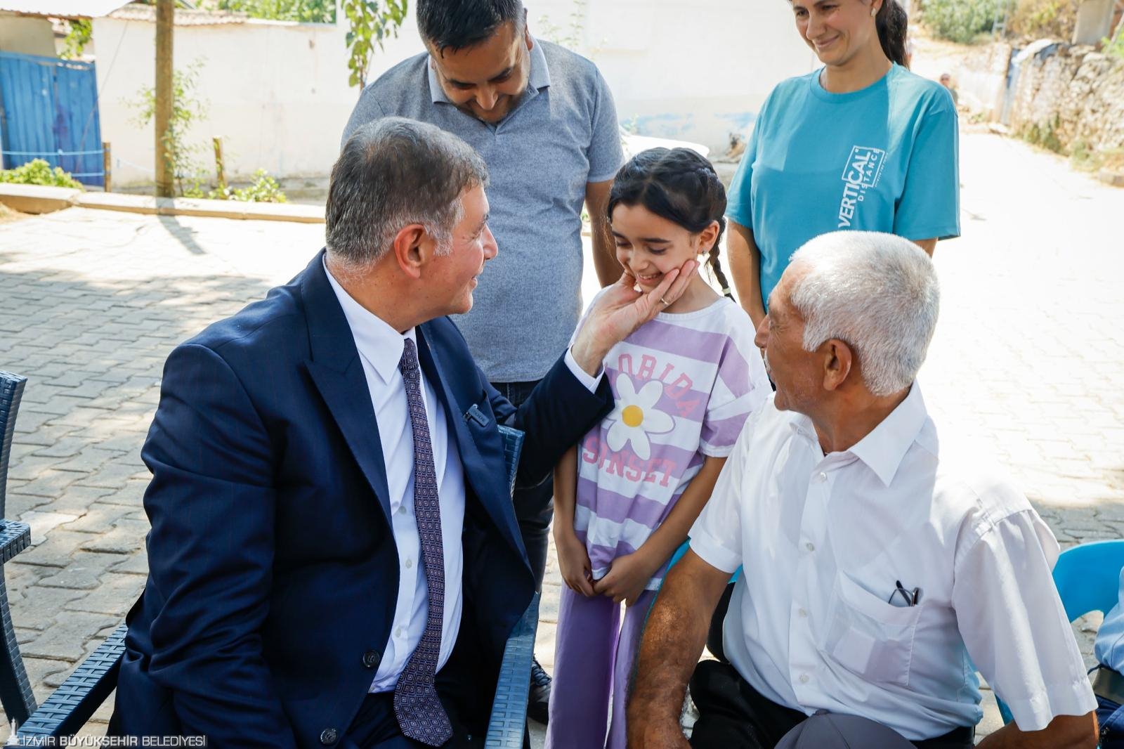 Başkan Tugay ilk olarak Karadoğan’ın merkezinde köy halkıyla sohbet etti, taleplerini dinledi. Bu sırada geçen haftaki bölge ziyaretinde yanan evleri için gözyaşı döken minik Aysima ile karşılaştı. Başkan Tugay, bu kez güler yüzüyle kendisini karşılayan Aysima’ya ev sözünü bir kez daha yineledi. Başkan Tugay, tüm birimleriyle aşama aşama çalışmalara başlayacaklarını ifade etti. Sohbetin ardından Başkan Tugay, Aysima’nın hasar gören evini de yerinde inceledi.