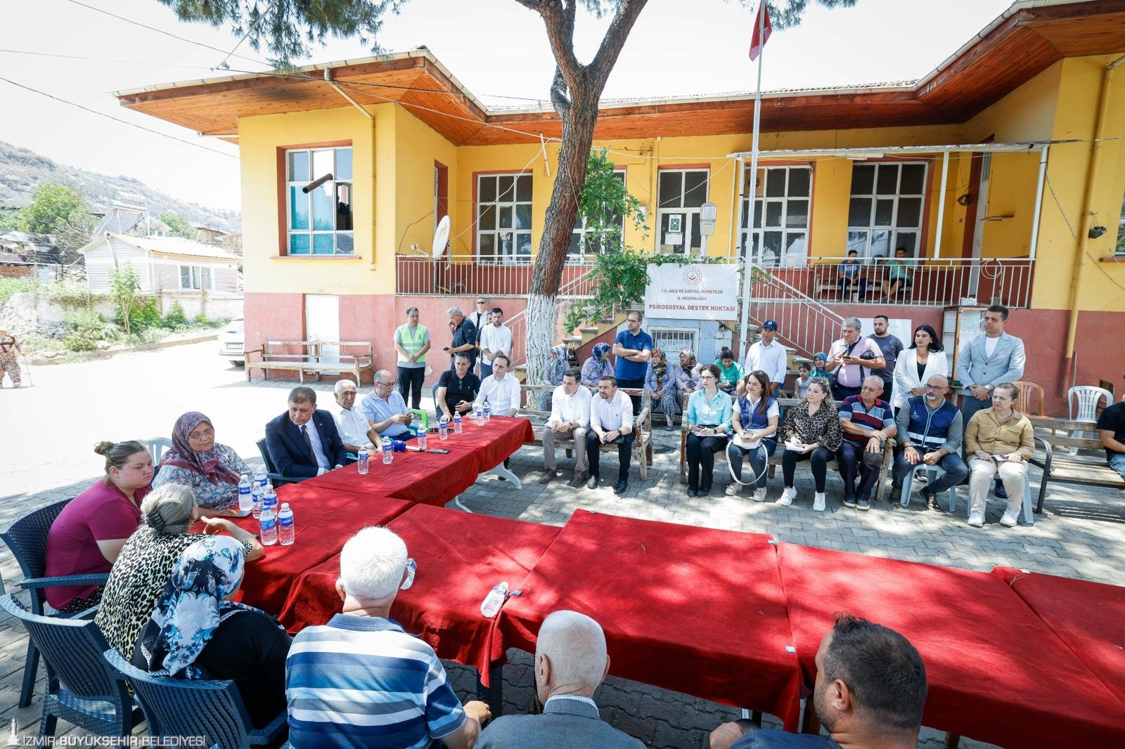 Köy merkezindeki değerlendirmenin ardından Başkan Tugay, zarar gören yerlerde inceleme yaptı. Karadoğan Muhtarı Levent Köymen’in eşliğinde hasarlı ev, ahır, dam ve tarım alanlarını gezen Başkan Tugay, notlar aldırdı. Başkan Tugay ziyarette ayrıca yangından zarar gören köylerden yıl sonuna kadar su faturası alınmayacağını da açıkladı.