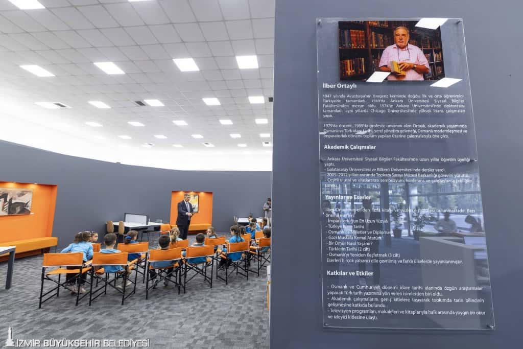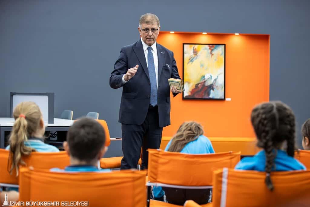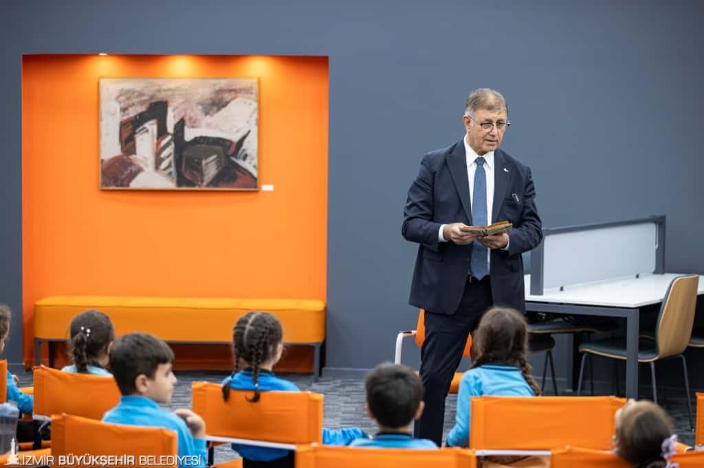 İzmir Büyükşehir Belediye Başkanı Dr. Cemil Tugay, Okul Aile Birliklerine Destek Projesi kapsamında gerçekleşen kitap okuma etkinliğine katıldı. İzmir Büyükşehir Belediyesi tarafından Kültürpark’ta açılan İlber Ortaylı Kütüphanesi’ni ziyaret eden öğrenci, veli ve öğretmenleri ağırlayan Başkan Tugay kütüphaneyi gezen misafirlere eşlik etti. Başkan Cemil Tugay, İzmir Büyükşehir Belediyesi Sosyal Hizmetler Dairesi Başkanlığı Eğitim Destekleri Şube Müdürlüğü’nce yürütülen çalışma kapsamında Konak Vali Kazım Paşa İlköğretim Okulu ikinci sınıf öğrencilerine babasının küçük yaşlarda hediye ettiği Ömer Seyfettin’in Kaşağı adlı hikayesini okudu. Başkan Tugay öğrencilerin okuma alışkanlıklarının geliştirilmesi, araştırma becerilerinin desteklenmesi ve kültürel gelişimlerine katkı sağlanmasının önemli olduğunu belirtti.