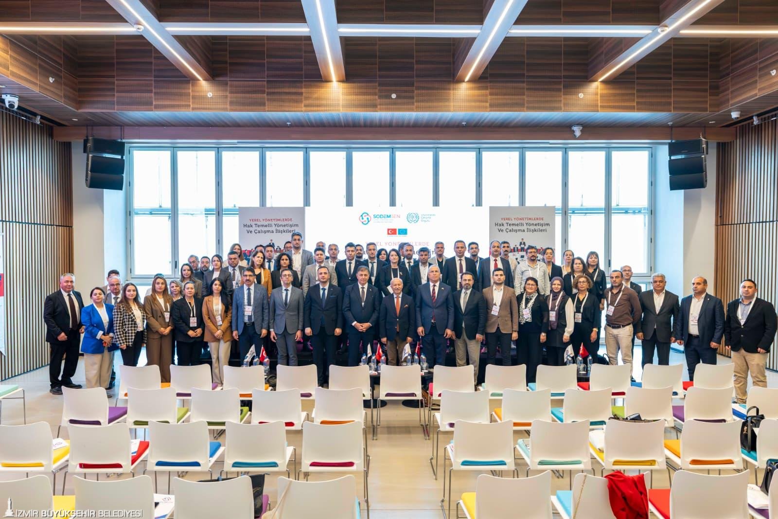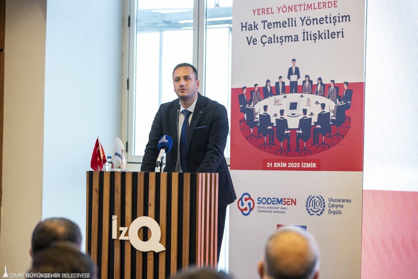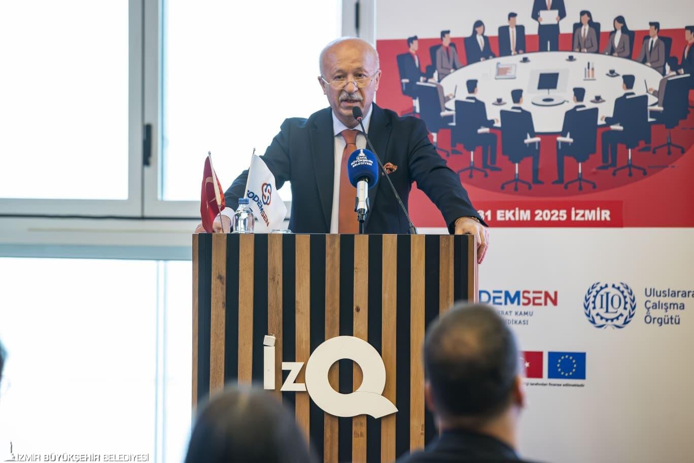 İzmir Büyükşehir Belediye Başkanı Dr. Cemil Tugay, Sosyal Demokrat Kamu İşverenleri Sendikası (SODEMSEN) tarafından düzenlenen Yerel Yönetimlerde Hak Temelli Yönetişim ve Çalışma İlişkileri Çalıştayı’na katıldı. İzQ Girişimcilik Merkezi’ndeki programda SODEMSEN’in üye belediye başkanları, yöneticileri ve bürokratları yer aldı. İzmir Büyükşehir Belediye Başkanı Dr. Cemil Tugay, açılış konuşmasında “Bizler daha adil, daha katılımcı ve daha insanca çalışma hayatı için ortak mücadele içindeyiz. Bizi bir araya getiren bu çalıştay, ‘Sosyal Taraflar ve Sivil Toplum Kuruluşlarının Çalışma Yaşamında Temel İlkeler ve Haklar Konusundaki Kapasitelerinin Güçlendirilmesi’ başlığıyla yapılıyor. Uluslararası Çalışma Örgütü (ILO) koordinasyonunda, Avrupa Birliği Türkiye Delegasyonu’nun desteğiyle yürütülüyor. Bu üçlü organizasyon bile başlı başına umut verici. En azından sosyal demokrat belediyeler olarak bu konuya ne kadar önem verdiğimizi gösteren, uluslararası sözleşmelerle garanti altına alan bir bakış açımız var. Yerel yönetimlerin, sendikaların, sivil toplumun ve uluslararası kurumların aynı masada buluştuğu bir çalıştay. Bu çalışmalar aslında içinde bulunduğumuz çağda en çok tartıştığımız ve en çok ihtiyaç duyduğumuz başlıklardan birisi olan demokrasi için umuttur” dedi.