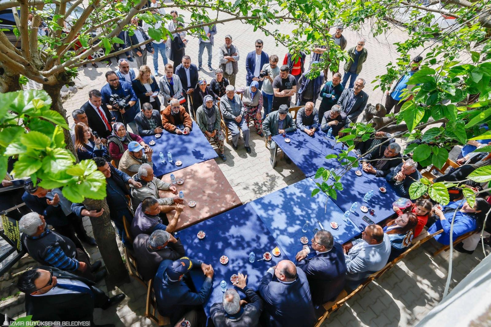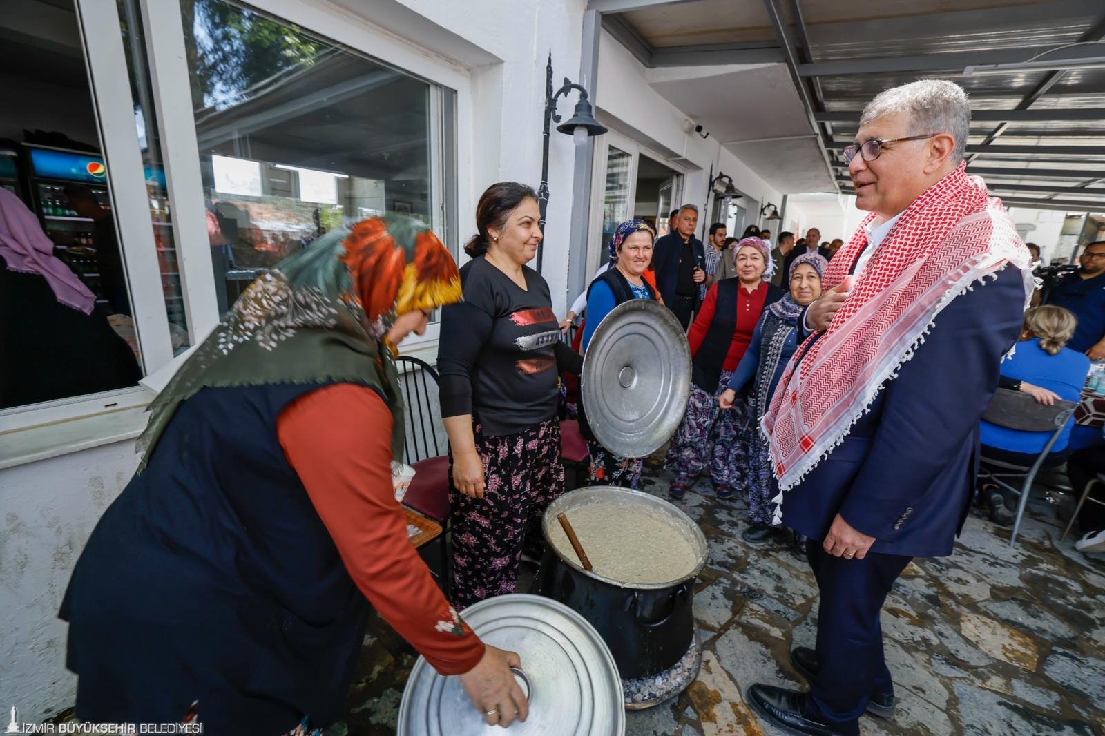 Değirmendere Köyü’nde İzmir Büyükşehir Belediye Başkanı Dr. Cemil Tugay'a, köylüler tarafından yapılan keşkek ikram edildi. Ataköy ve Çamönü köylerini de ziyaret ederek köy sakinleri ile sohbet eden Başkan Tugay, kente en iyi hizmeti vermek için yola çıktıklarını belirterek zor bir yılı geride bıraktıklarını aktardı. Yaşanan zorlukların bir kısmının ülkenin sorunlarından kaynaklı olduğuna değinen Tugay, “Yurttaşlarımıza daha fazla destek olmak için ne yapmamız gerekiyorsa, yapmaya hazırız. Elimizdeki imkanları zorlayarak çalışmalarımızı sürdürüyoruz. Göstermelik işler değil, kalıcı ve sağlıklı işleri, hızlı şekilde yapmak istiyoruz. Göz boyayan insanlar olmadığımıza emin olun. Millet adına görev yapıyoruz. Size uzak olmak istemiyoruz. Bu tür ziyaretleri gerçekten ihtiyaçları yerinde görmek için yapıyoruz. Bana ihtiyacınız olduğunda ve beni çağırdığınızda, gelirim. Yeter ki 'Cemil Başkan sana ihtiyacımız var' deyin. İnsanlarımızın her sözü, her dileği bizim için önemli. Görev süremiz ne kadar olursa olsun, önemli olan insanların gönlünde bıraktığımız izler. Sizleri sevdiğim ve saygı duyduğum için bu göreve geldim. Elimden gelenin en iyisini yapacağım. İzmir güzel bir kent. Hep birlikte çaba göstererek, sahip çıkarak, birbirimize yol göstererek, çok daha güzel günlerin yaşanmasını sağlayacağız” dedi.