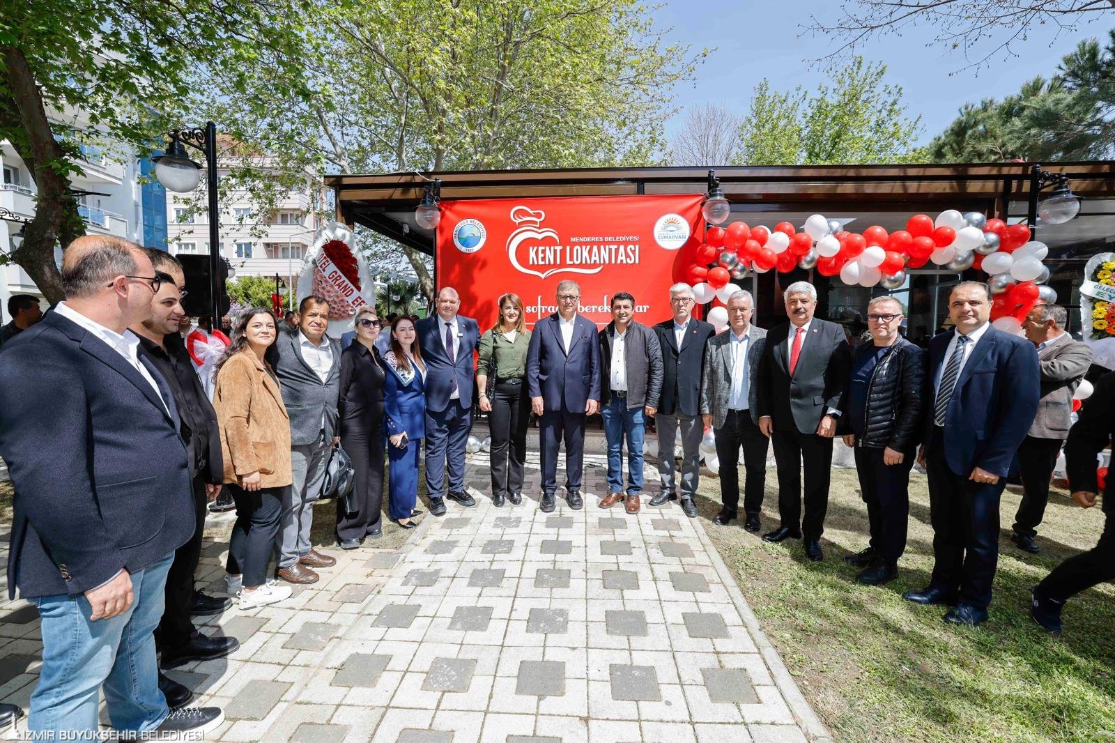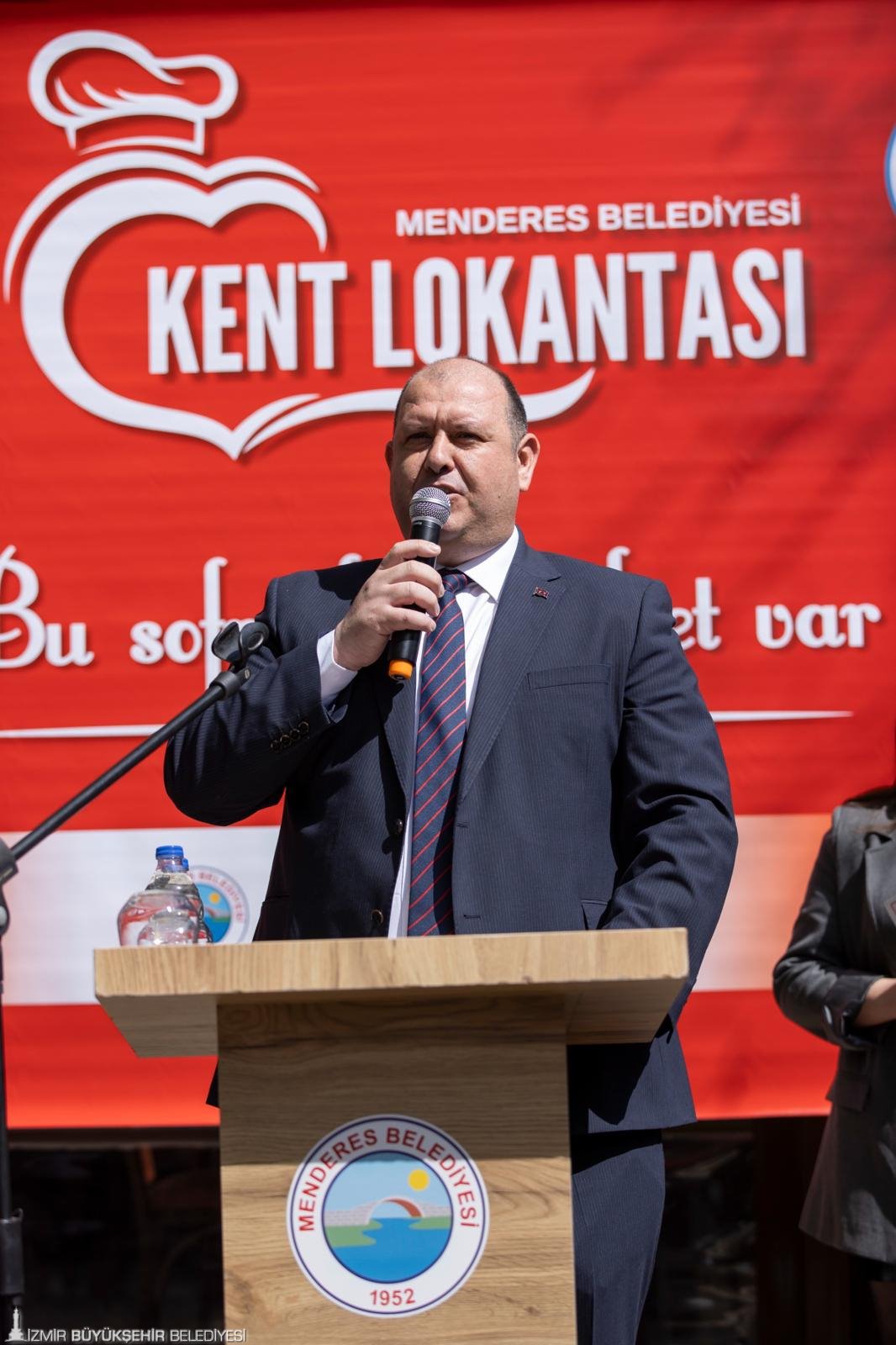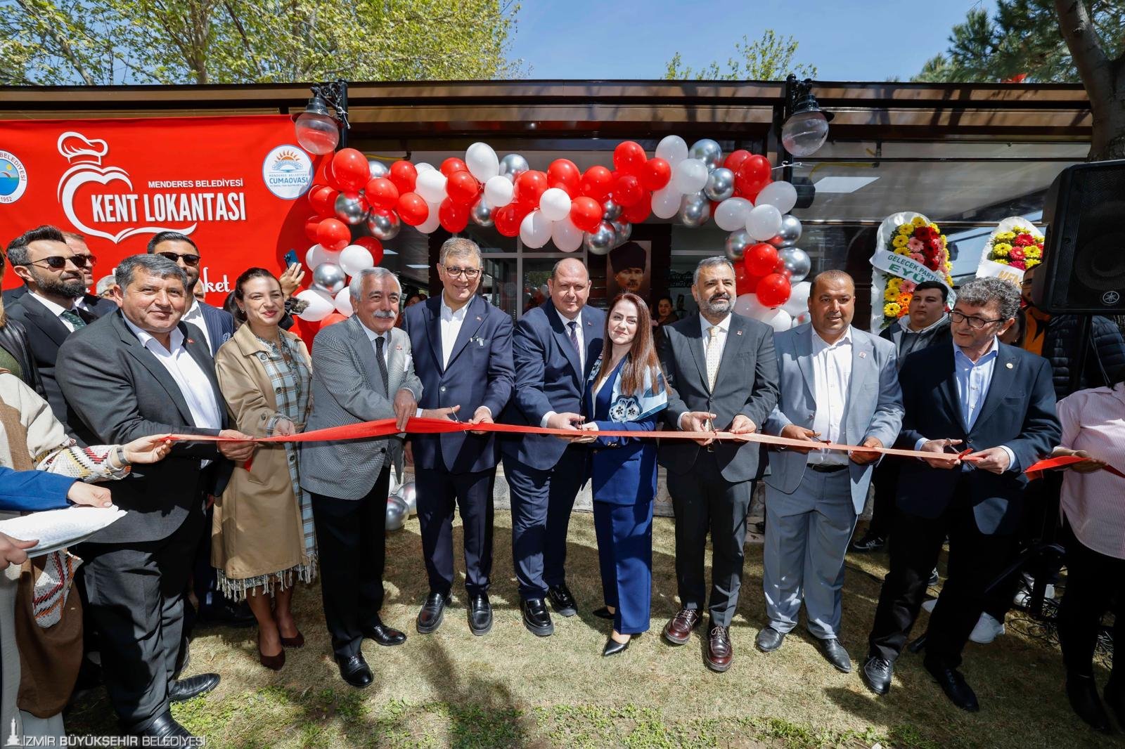 İzmir Büyükşehir Belediye Başkanı Dr. Cemil Tugay, yurttaşlara sağlıklı, kaliteli ve uygun fiyatta yemek hizmeti sunmak için Menderes Belediyesi tarafından Ayyıldız Parkı içerisinde hizmete alınan Kent Lokantası’nın açılışına katıldı. Menderes Belediye Başkanı İlkay Çiçek’in ev sahipliğinde yapılan açılış törenine CHP İzmir Milletvekili Yüksel Taşkın, CHP İzmir İl Başkanı Şenol Aslanoğlu, ilçe belediye başkanları, muhtarlar ve yurttaşlar da katıldı. Belediye şirketi Cumaovası AŞ tarafından işletilen ve ilk etapta günlük bin kişilik yemeğin çıkacağı lokantada, 3 çeşit yemek, ekmek ve su 90 TL’den halka sunuluyor. Kent Lokantası’nın ilk günü menüsünde ise mercimek çorbası, tas kebabı, pirinç pilavı ve cacık yer aldı. Menüde her gün farklı yemekler yer alacak.