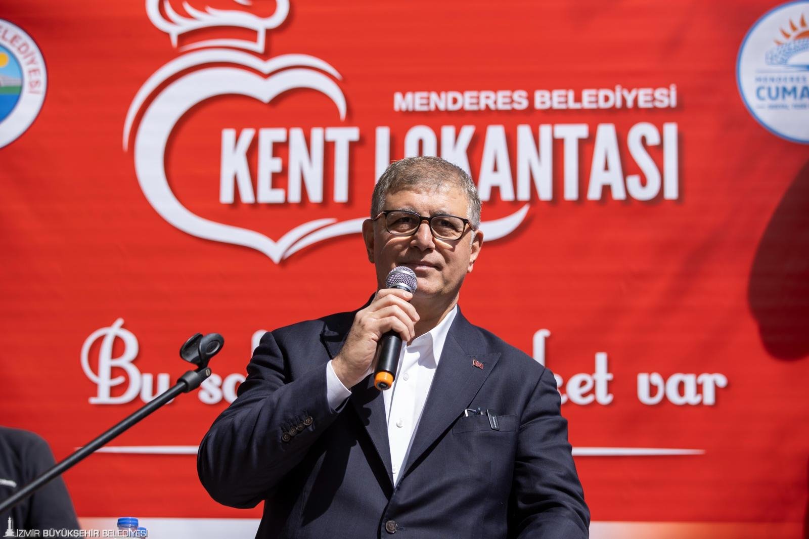 İzmir Büyükşehir Belediye Başkanı Dr. Cemil Tugay, Kent Lokantası uygulamasının Türkiye dışında bir yerde olmadığını ve İstanbul’da başladığını vurgulayarak, “Ekrem Başkan, şu anda hepimiz adına görev yaparken, hepimiz adına mücadele ederken, kabul edemediğimiz, vicdanlarımızda çok büyük sızıya neden olan bir kararla tutuklandı ve şu anda cezaevinde. O orada oldukça, onunla birlikte bizim bir tarafımız hapiste. Bir tarafımız onunla birlikte o hücrede yatıyor. Emin olun. O değerli başkanımız İstanbul'da yoksulluk üzerine çok çalıştı. Geçen dönemde kent lokantası fikrini geliştirdiler. Birkaç tane açarak denediler. Ondan sonra gösterilen ilgiden ve memnuniyetten anlaşıldı ki işe yarıyor. Sonra Türkiye'nin her yerinde yeni kent lokantaları açılmaya başlandı. Biz de halkımızın talepleri doğrultusunda Büyükşehir Belediyesi olarak kentin 5 farklı noktasında Kent Lokantası açtık. İlçe belediyelerimiz arasında kendi ilçelerinde açanlar oldu” dedi.