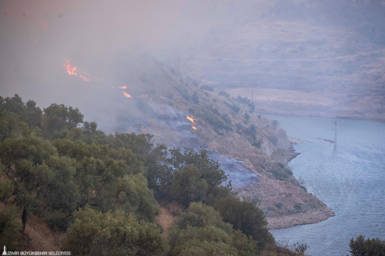 İzmir İtfaiyesi ve çevre illerden gelen itfaiye araçları Üzümlü köyünün girişinde bulunan alanda yangının yerleşim yerlerine ulaşmaması için konuşlandı.