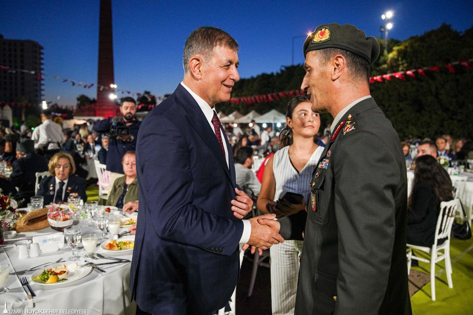 İzmir Büyükşehir Belediye Başkanı Dr. Cemil Tugay, 19 Eylül Gaziler Günü kapsamında, gazi, gazi yakınları ile şehit ailelerini Tarihi Havagazı Fabrikası Kültür Merkezi çim alanda ağırladı. İlçe belediye başkanları, sivil toplum örgütleri ve askeri kadroların da katıldığı programda konuşan Dr. Cemil Tugay, gaziliğin vatanseverler için cesaretin, vatan uğruna göğüslenen acıların ve bağımsızlık için ortaya konan kararlılığın simgesi olduğunu söyledi. Gazilerin vatanı ve vatandaşı korumak için kendi bedenlerini siper ettiğini vurgulayan Başkan Tugay, “Gazi Mustafa Kemal Atatürk’ün de dediği gibi gaziler bu milletin yaşayan anıtlarıdır. Gösterdikleri cesaret bugün hala bekçisi olduğumuz özgürlüğümüzün ve cumhuriyetimizin teminatıdır. Ben bu değerlerle büyüyen bir mirasa sahip çıkmak için yetiştirilen bir insanım. Bir gazi çocuğuyum. Kıbrıs gazisi bir babanın oğluyum. Babamdan ve büyüklerimden, vatansever öğretmenlerimden bağımsızlığın değerini, dayanışmanın kıymetini ve vatan sevgisinin ağırlığını öğrendim. Bugünleri görebilmemiz için Cumhuriyet tarihi boyunca bu ülkenin evlatlarının verdiği mücadeleyi, onların fedakarlıklarını dinledim” dedi.