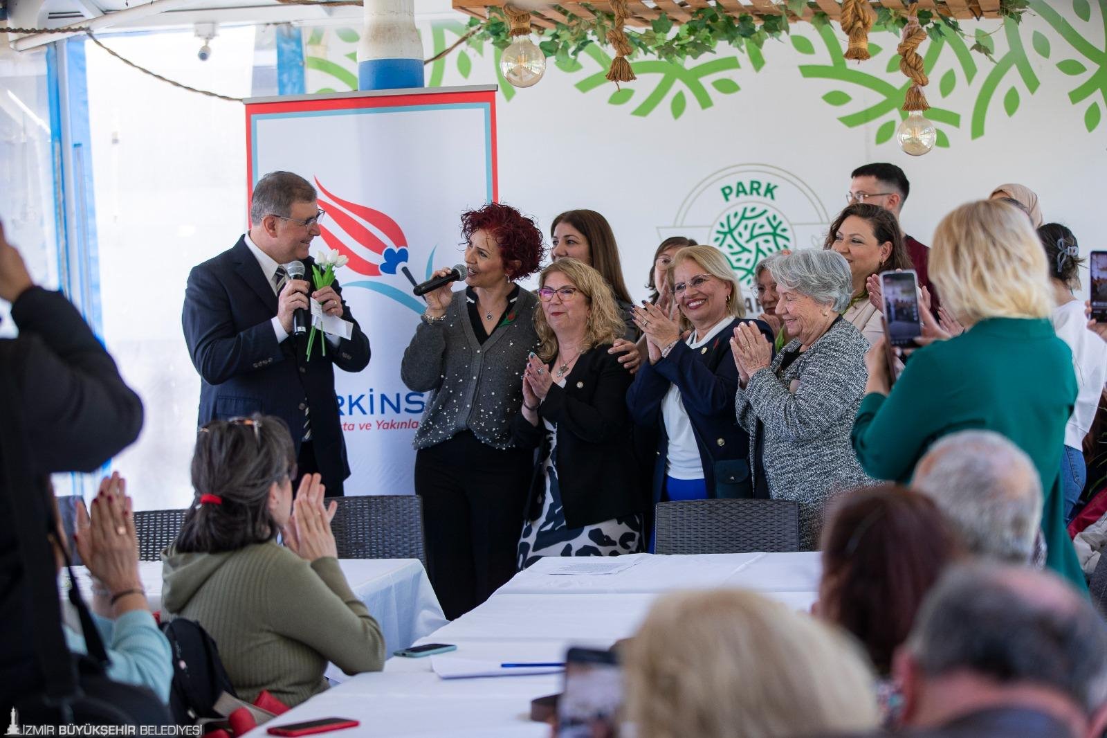 Parkinson Hasta ve Yakınları Derneği Başkanı Gülnur Kelçe de Başkan Tugay'a Parkinson hastalığının sembolü haline gelen Parkinson Lalesi takdim etti. Başkan Tugay, etkinlikte müzik dinletisi sunan Ege Üniversitesi Devlet Türk Musikisi Konservatuvarı Öğretim Görevlisi Doç. Dr. Serap Nargaz ve katılımcıların söylediği şarkılara da eşlik etti.