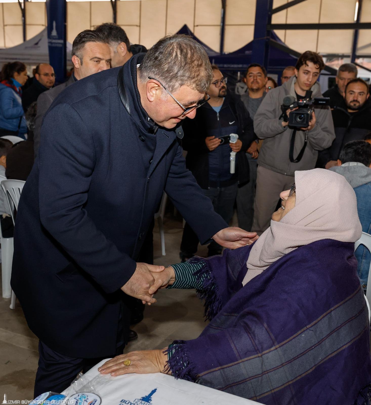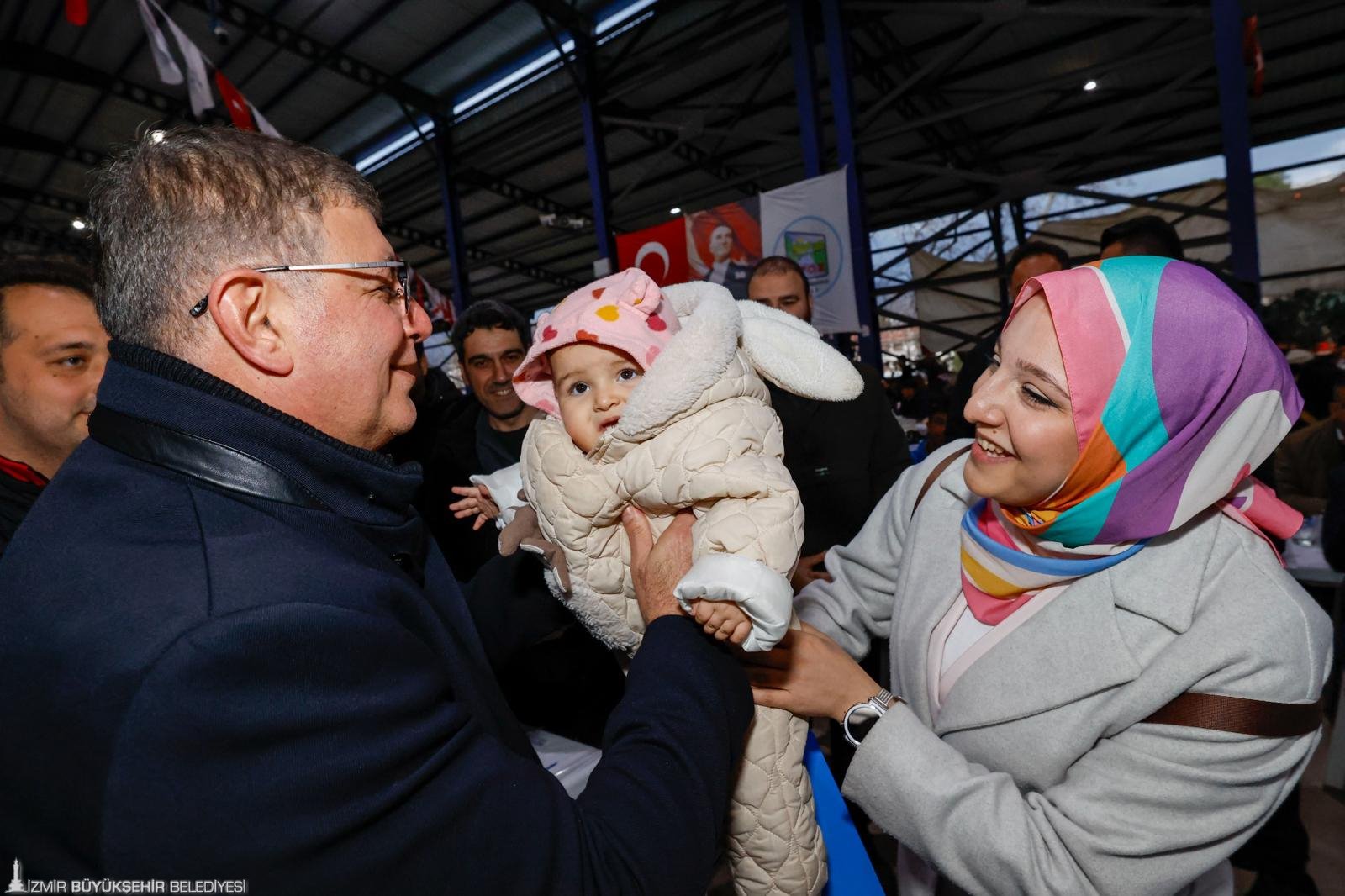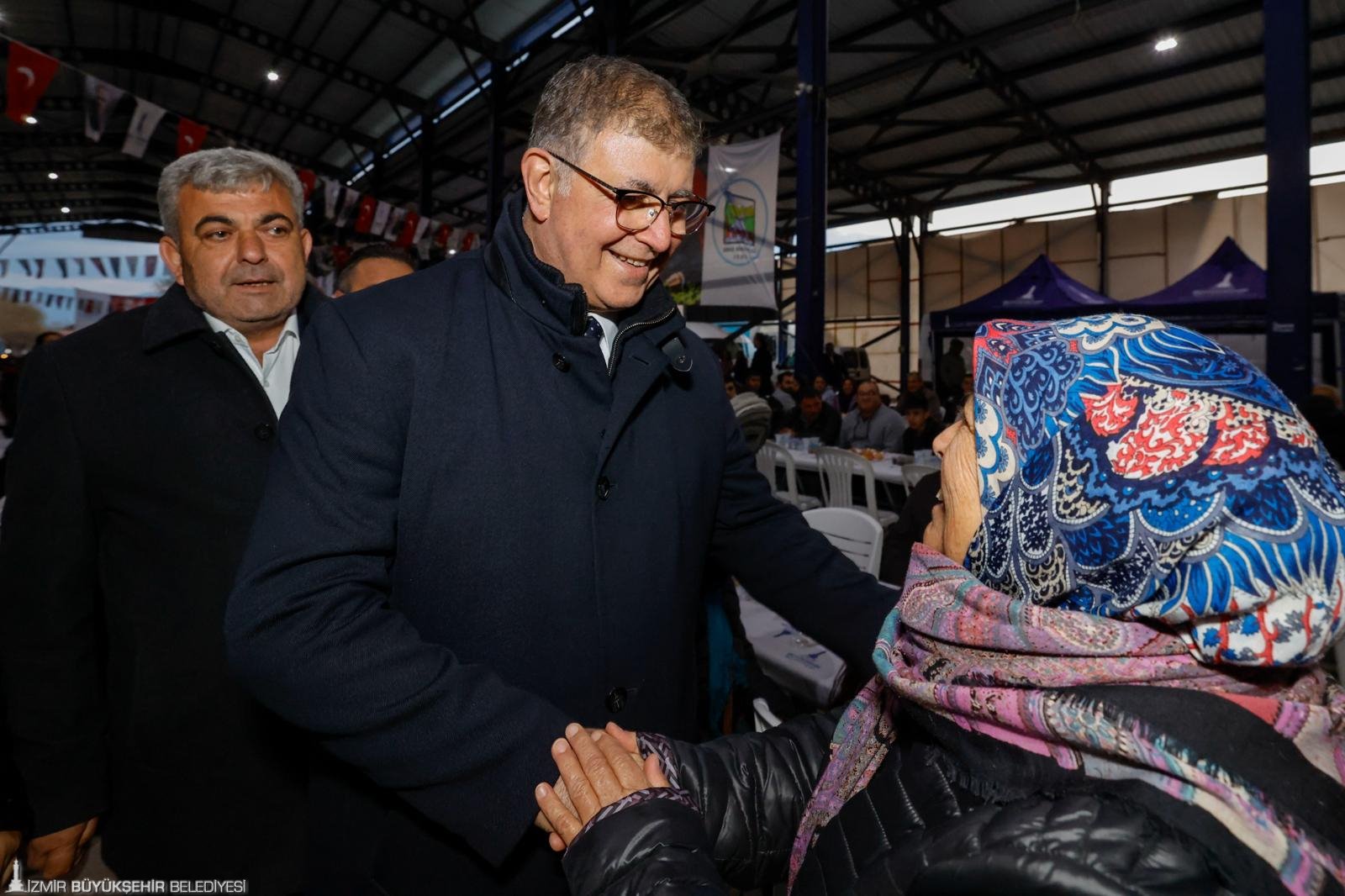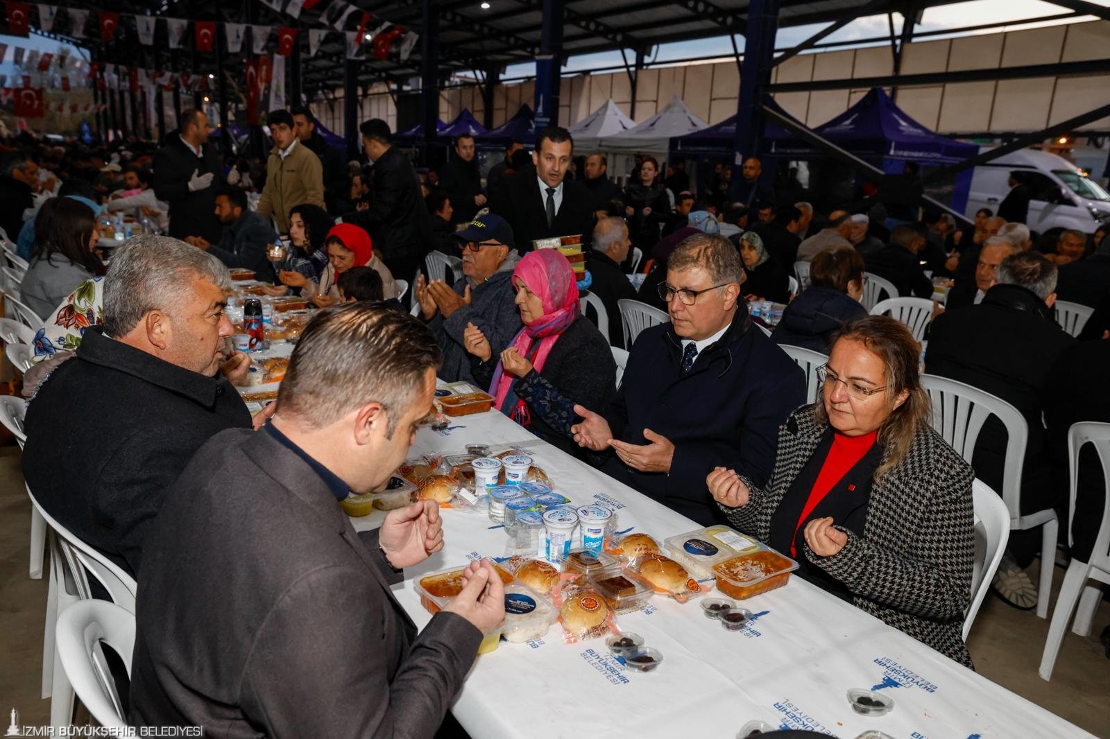 İftarda Kirazlılara seslenen Başkan Tugay, “Soğuk bir akşamda bir arada olmanın onurunu yaşıyoruz. Fırsat buldukça bir sofranın etrafında bir arada olmalıyız. Birbirimize duyduğumuz sevgiyi, sorumlulukları hatırlamalıyız. Bizler İzmir Büyükşehir Belediyesi ailesi olarak 30 ilçemizde her akşam farklı bir ilçede bu tabloyu yaşıyoruz. Hemşehrilerimizle, komşularımızla bir araya geliyoruz. Kutsal ramazan ayının ülkemize bereket, şehrimize hayırlar, iyilikler getirmesini diliyoruz. Bize bu nimetleri sağlayan, yaratan bu bereketli topraklara şükranlarımızı sunuyorum. Aynı yemeği, aynı masada paylaşmak, o eşitlik ve adalet duygusunu yaşamak bizim için çok değerli” şeklinde konuştu.