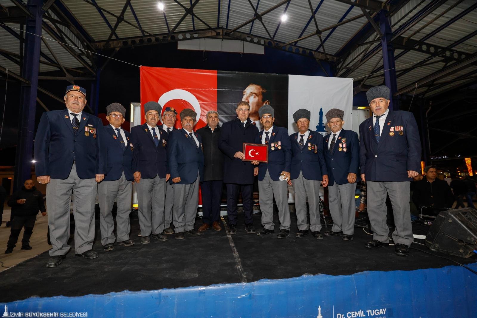 Konuşmaların ardından gaziler Başkan Tugay’a verdiği hizmetler nedeniyle günün anısına Türk bayrağı armağan etti.