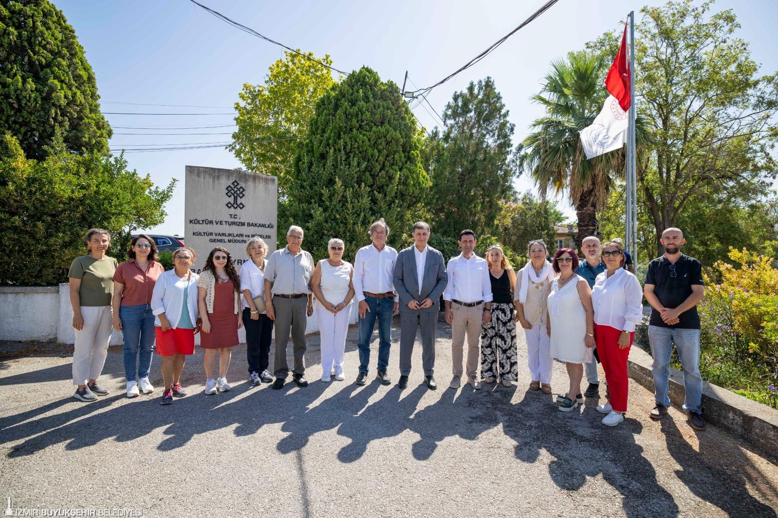 İzmir Büyükşehir Belediyesi, 8 bin 500 yıllık tarihe sahip İzmir’in tarihinin gün yüzüne çıkması için desteklerine devam ediyor. İzmir Büyükşehir Belediye Başkanı Dr. Cemil Tugay, İzmir Büyükşehir Belediyesi tarafından bu yıl da hem maddi hem de teknik destek verilen Eski Smyrna Bayraklı Höyüğü Örenyeri’ndeki kazı çalışmalarını inceledi. Başkan Dr. Cemil Tugay’a Bayraklı Belediye Başkanı İrfan Önal, Smyrna Bayraklı Höyüğü Kazı Başkanı Prof. Dr. Cumhur Tanrıver, İzmir Büyükşehir Belediyesi Kent Tarihi ve Tanıtımı Dairesi Başkanı Hasibe Velibeyoğlu ve sivil toplum kuruluşu temsilcileri eşlik etti.