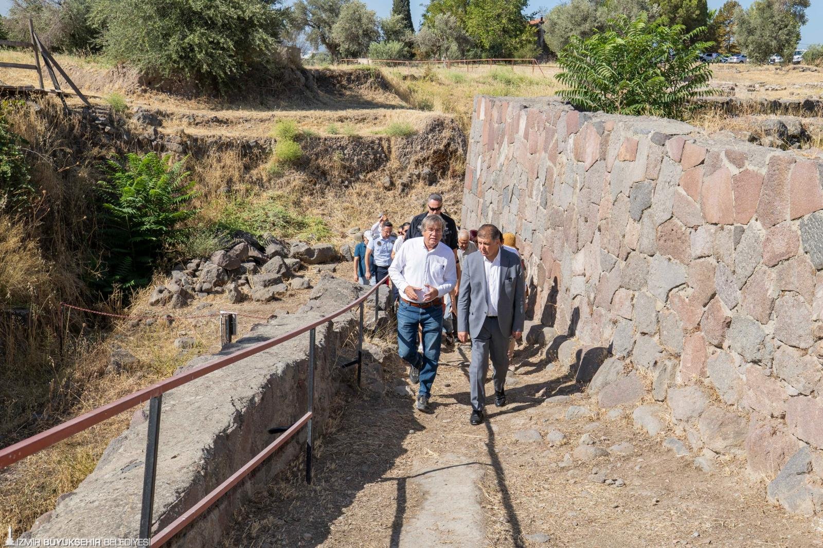 Binlerce yıllık medeniyetlerinin izlerini taşıyan örenyerini gezerek Prof. Dr. Cumhur Tanrıver’den bilgi alan Başkan Tugay, kazı çalışmalarını yerinde inceledi. Kazı ekibiyle sohbet eden Başkan Tugay, örenyerinin şartlarının geliştirilerek tarihi birikimin gün yüzüne çıkarılması için fikir alışverişinde bulundu. Başkan Tugay, sahadaki turun ardından Prof. Dr. Cumhur Tanrıver eşliğinde alandan çıkarılan tarihi eserleri inceleyerek bilgi aldı.
