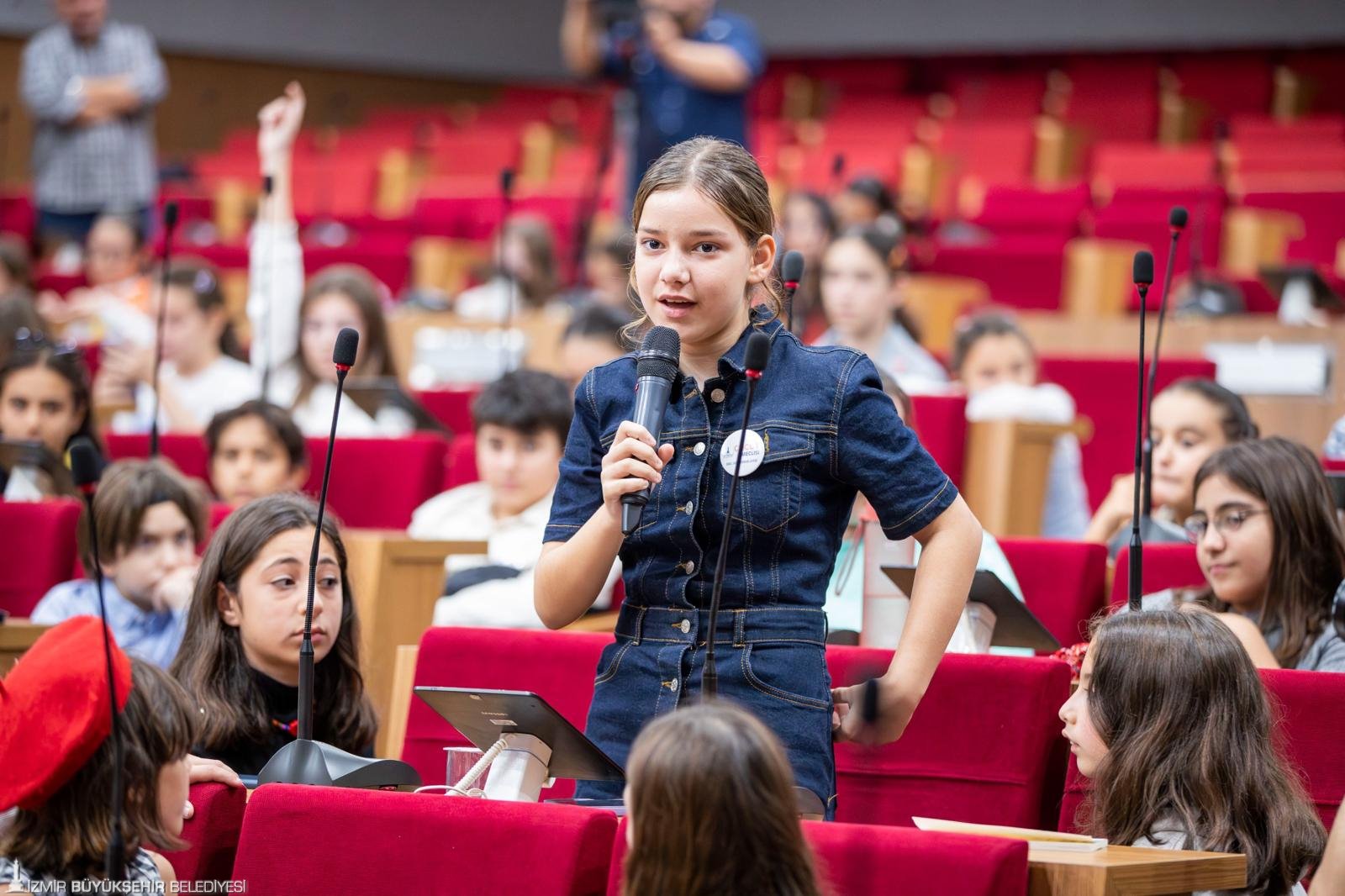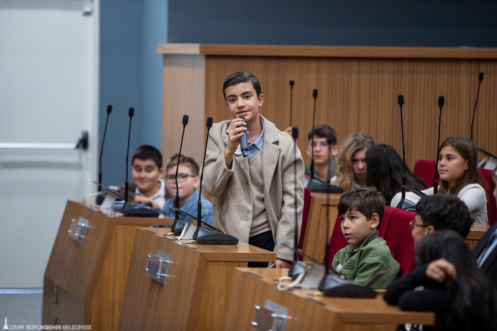 Çocukları dinledikten sonra kürsüye gelen Başkan Tugay, “Sabırsızlıkla bugünü bekliyordum. Sizlerin neler söyleyeceğini çok merak ediyorum. Sizler her biriniz birer bireysiniz. Çocuk olmanız fark etmiyor. Dünyadaki bütün insanlar çocuktu ve sonra büyüdüler. Siz de büyüyeceksiniz. Sizler her biriniz özelsiniz. Çok iyi bir yaşamı hak ediyorsunuz. Güzel bir yaşam yaşamanız gerekiyor. Başkalarına sorumluluk düşüyor ama size de görev düşüyor. Önce kendinize, sonra sevdiklerinize, ailenize, arkadaşlarınıza, okulunuza, mahallenize, şehrinize, ülkenize ve dünyaya sahip çıkmanız gerekiyor. Bunların hepsi size ait. Önümüzdeki aylarda, yıllarda, dünya güzel olsun, her şeyi iyi olsun istiyorsanız, bazı şeyler için şimdiden üzerinize düşeni yapmalısınız. Sizler bu şehirdeki çocukları temsil edenlersiniz. Onlar adına burada konuşuyorsunuz, ben de İzmir Büyükşehir Belediye Başkanı olarak sizleri dinlemek istiyorum” dedi.