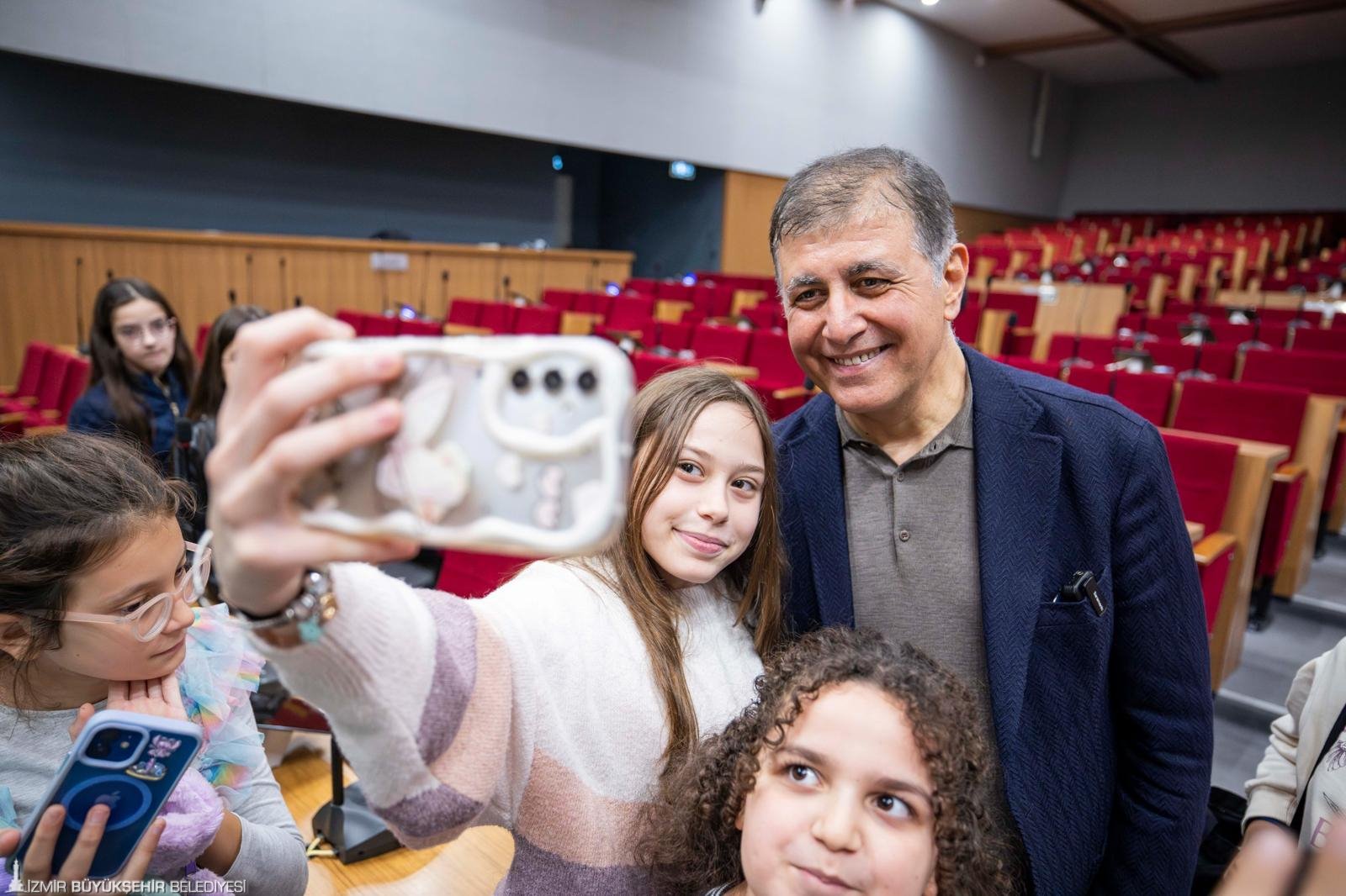 “Suça sürüklenen çocuklar hakkında ne düşünüyorsunuz?” şeklinde gelen sorunun ardından konuşan Başkan Tugay, “İnsanlar birbirine kaba davranıyor. Biraz gülümsemek, günaydın demek önemli. Yüzünde gülümseme olan insana herkes iyi bakar. Hayatınız boyunca olabildiğince gülümsemeye çalışın. Ülkemizde ve dünyada çok sayıda çocuk maalesef bugün suça itilmiş durumda. Ama onları kurtarmak hepimizin görevi. Onlara kötü insan, suçlu demeden bu durumun arkada bir nedeni olduğunu hatırlayıp o nedeni ortadan kaldırmamız gerekiyor. Sizlerin içinden belediye başkanları, milletvekilleri çıkacak. Sizler çok önemli konumlara geleceksiniz. Doğruları yapmayı, doğruların yapılması için mücadele etmeyi tercih etmeniz lazım. Pozitif insanlar olmanız lazım. Ne iş yaparsanız yapın bilime göre davranmanız lazım” ifadelerini kullandı.