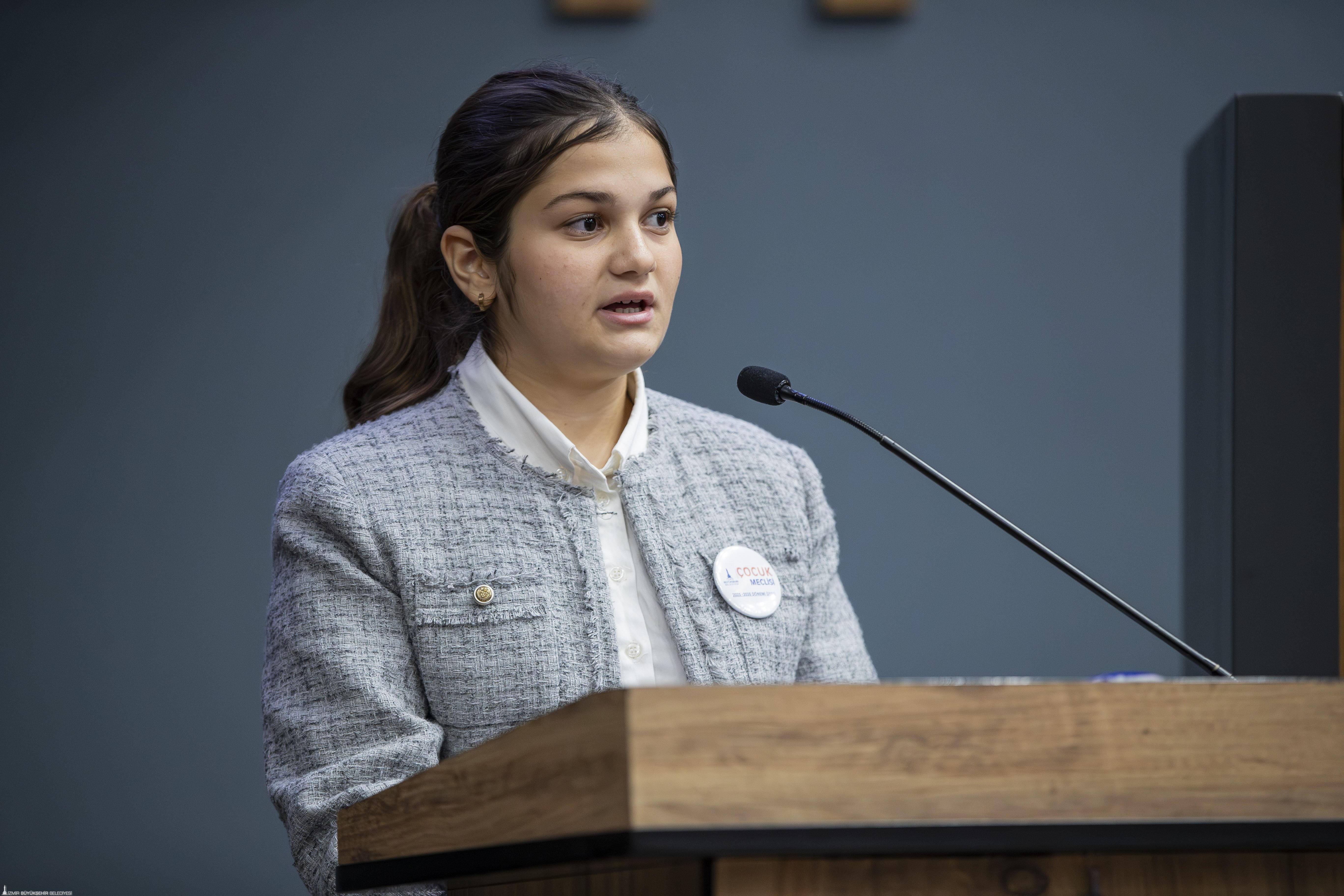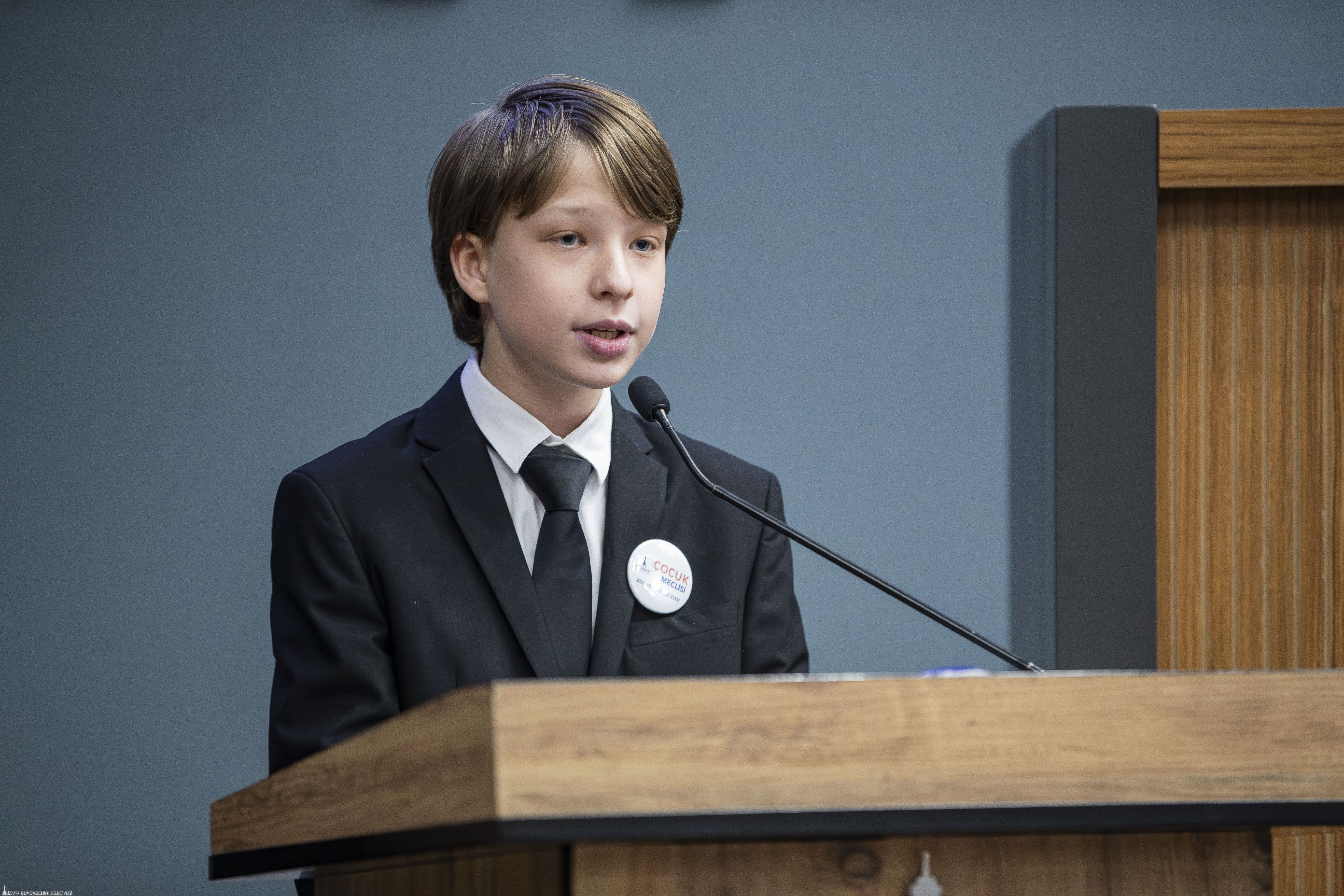 20 Kasım Dünya Çocuk Hakları Günü’nün önemine değinen Çocuk Meclisi Üyesi Zeynep Talay ise, “Çocuk haklarını özgürce konuşabildiğim için çok mutluyum. Ama ülkemizde ve dünyada bazı çocuklar okula gidemiyor, bazıları savaşlar nedeniyle hayatlarını kaybediyor, bazıları erken yaşta evlendiriliyor, bazı çocuklar ise oyun oynamaları gerekirken çalışmak zorunda kalıyor. Tam da bu yüzden fikirlerimizi ifade edebildiğimiz, haklarımızı öğrendiğimiz Çocuk Meclisi çok önemli. Burada sadece kendi sesimiz için değil, haklarına ulaşamayan tüm çocuklar için varız. Çocuk Meclisi’ni ülkemize yaymak ve çocukların baskı altında kalmadan yaşayabilmelerini istiyoruz. Tüm çocuklar eşittir ve eşit haklara sahiptir. Bizler bağımsızlığını Gazi Mustafa Kemal Atatürk önderliğinde Kurtuluş Savaşı’yla kazanmış bir halkız. Ata’mızın çocuklara karşı olan inancını, sevgisini ve güvenini bilerek birlikte mücadele etmeyi sürdüreceğiz” diye konuştu.