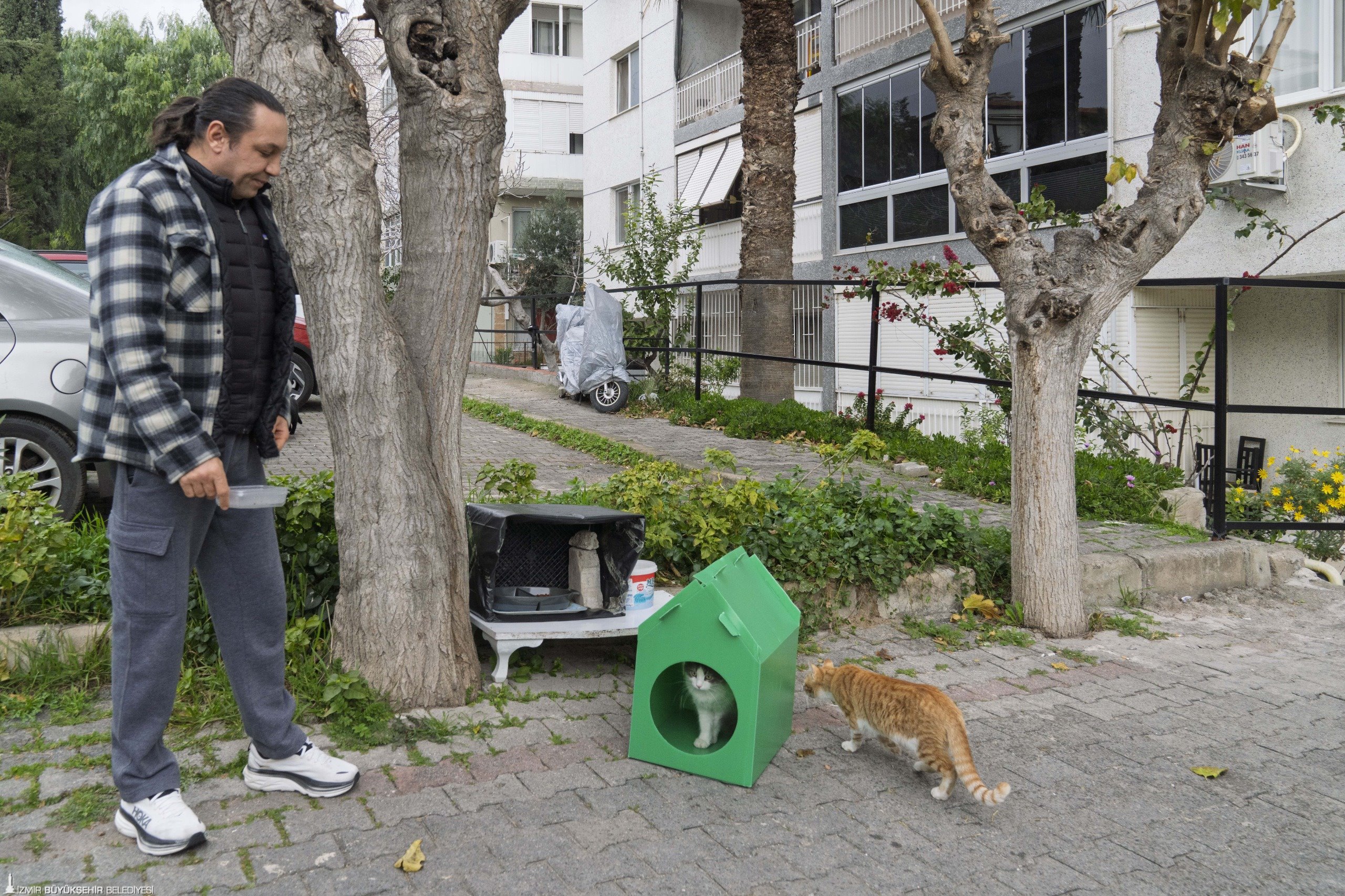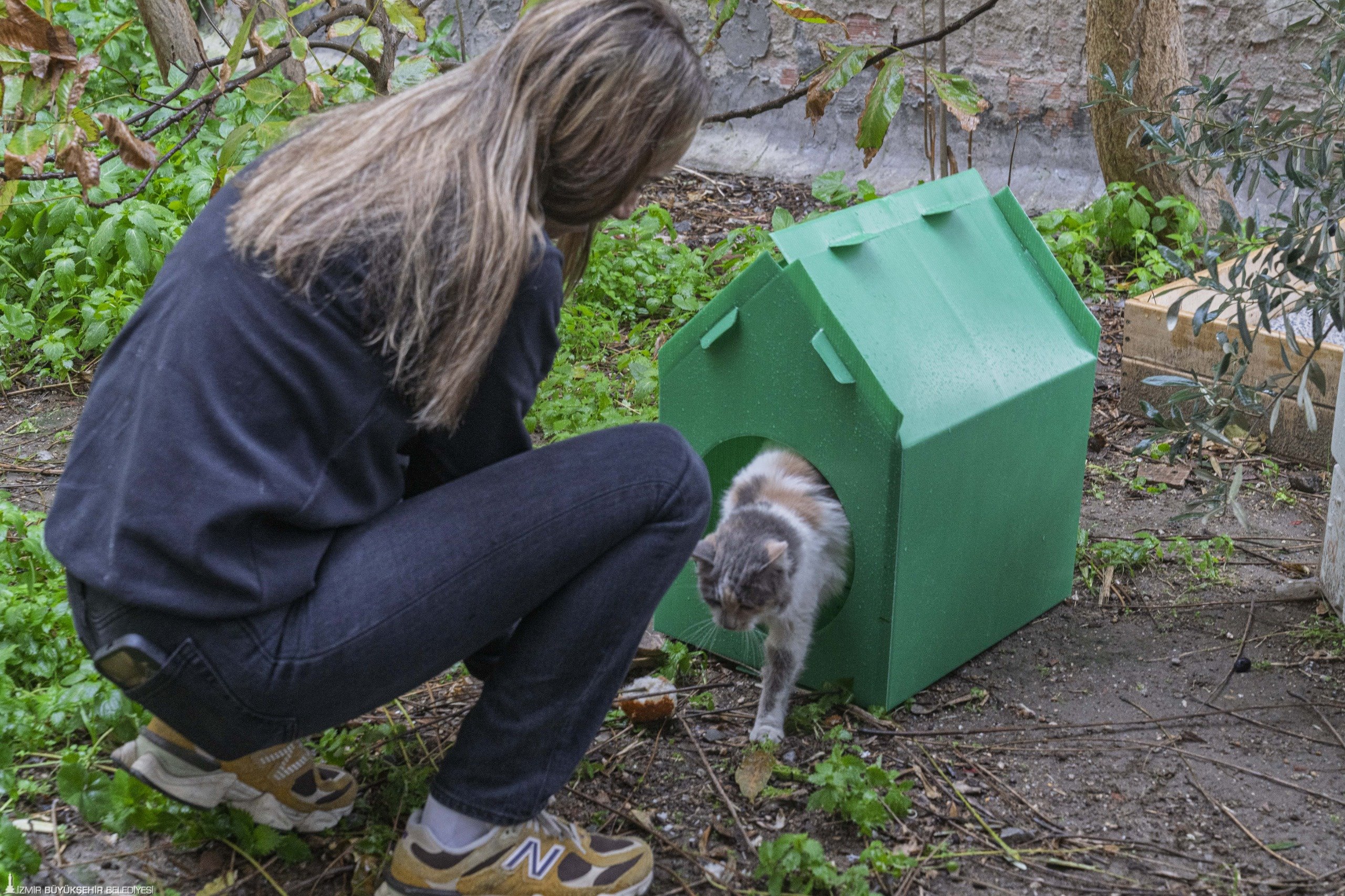 İzmir Büyükşehir Belediyesi Veteriner İşleri Dairesi Başkanlığı ekipleri, soğuk hava koşullarında barınma sorunu yaşayan sokak kedileri için portatif kedi evi hizmeti veriyor. İzmir Büyükşehir Belediye Başkanı Dr. Cemil Tugay’ın, sokakta yaşayan canlılar için sosyal medya hesabından yaptığı destek sözü, İzmirli hayvanseverler tarafından memnuniyetle karşılandı. 153 Hemşehri İletişim Merkezi’ni arayan yurttaşlar, mahallelerindeki sokak kedilerinin barınması için portatif kedi evleri talep etti. Ekipler, talep oluşturan yurttaşların mahallelerini tek tek ziyaret ederek kedi evlerini teslim etmeye başladı. Can dostlar da kendilerine sıcak yuva olacak yeni evlerini çok sevdi.