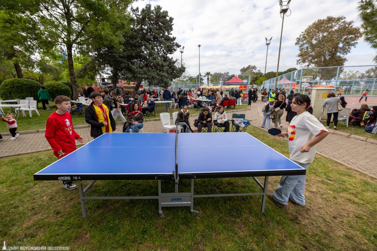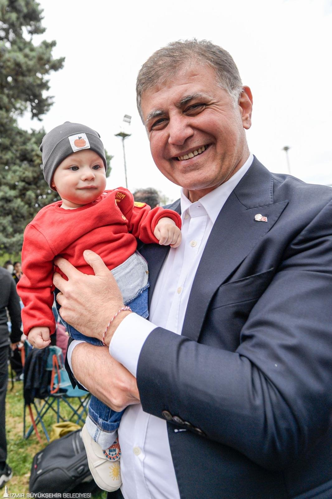 İzmir Büyükşehir Belediye Başkanı Dr. Cemil Tugay, İnciraltı’nda düzenlenen 23 Nisan Çocuk Şenliği’nde sporcu çocuklarla bir araya geldi. Farklı branşlardaki etkinlikleri izleyen Tugay, çocuklarla futbol ve satranç oynayıp ok atarak bayram coşkusuna ortak oldu.