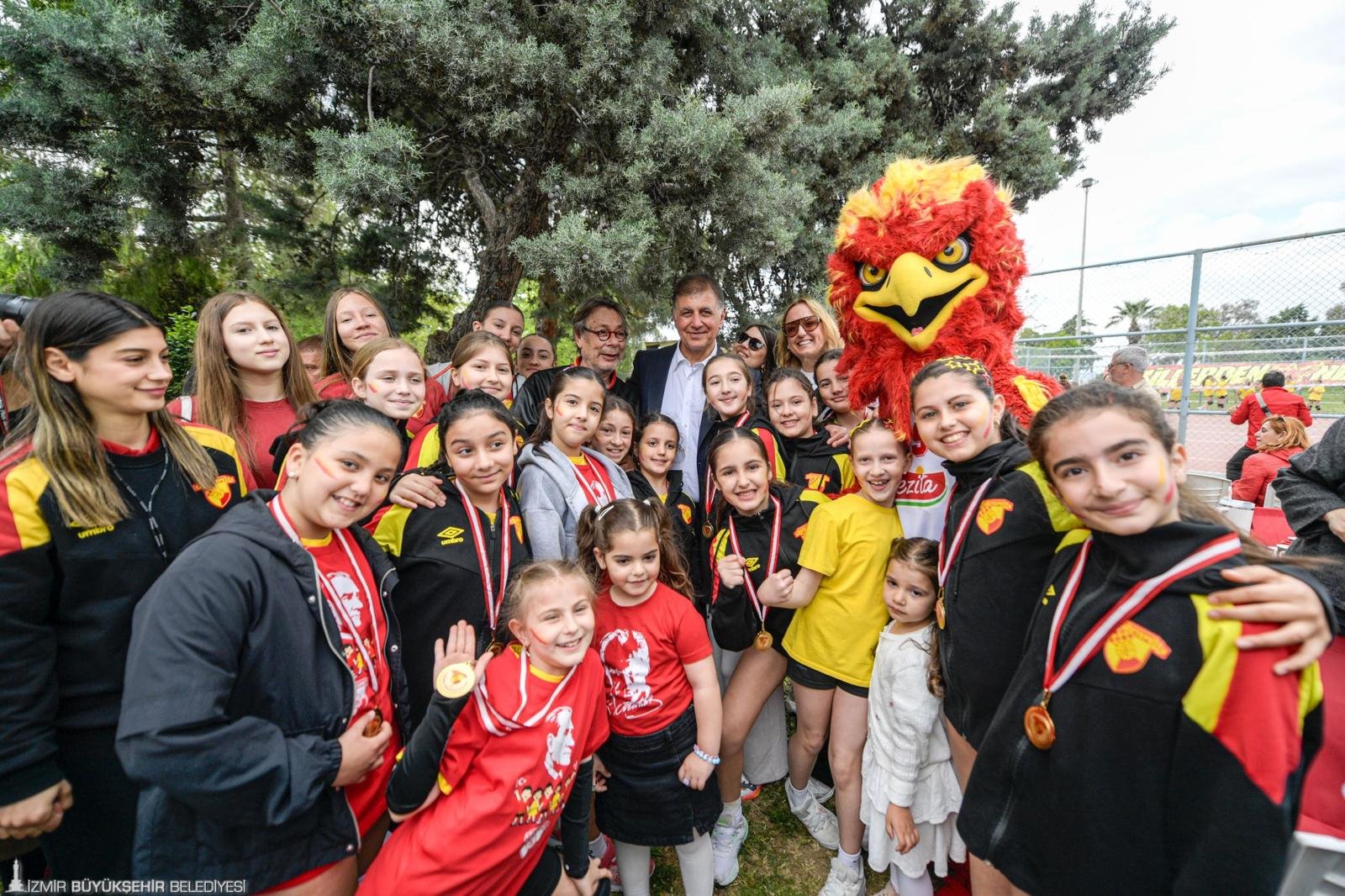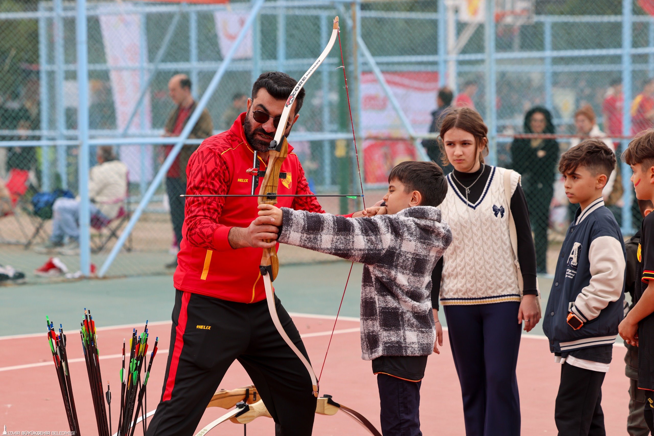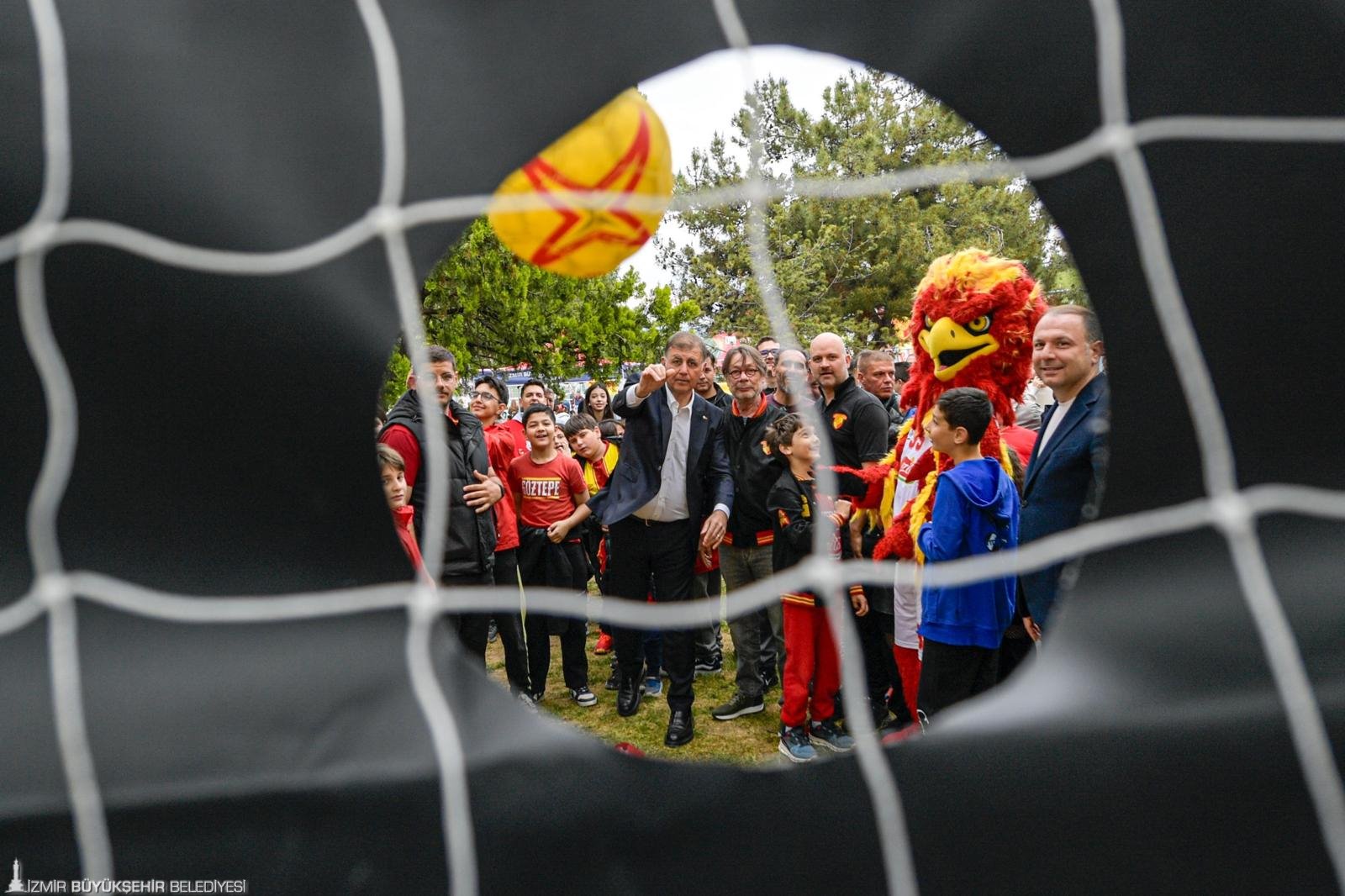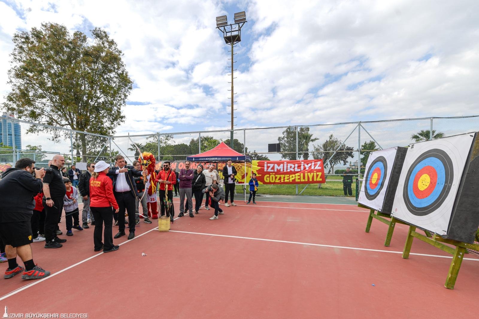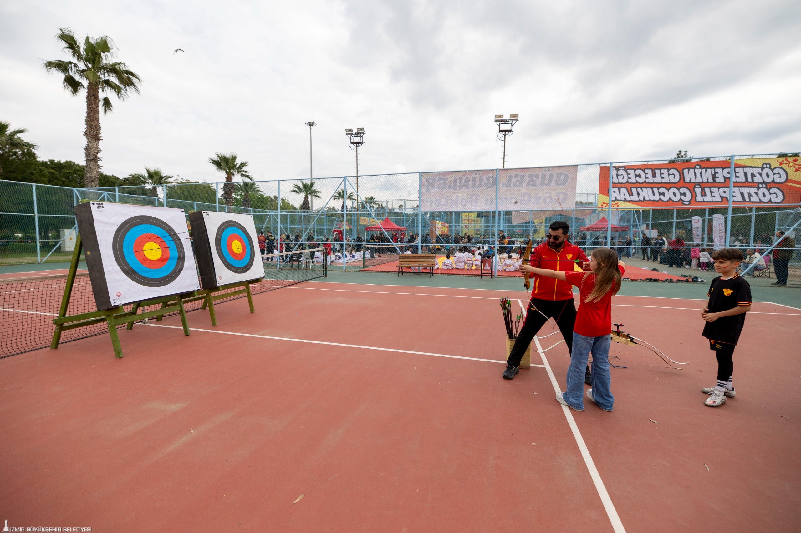 23 Nisan Ulusal Egemenlik ve Çocuk Bayramı, İzmir’de kentin dört bir yanında kutlandı. İzmirli çocukların spora teşvik edilmesine yönelik çalışmalara destek veren İzmir Büyükşehir Belediye Başkanı Dr. Cemil Tugay, İzmir Büyükşehir Belediyesi ile Göztepe Spor ve Eğitim Vakfı iş birliğiyle İnciraltı’nda düzenlenen 23 Nisan Çocuk Şenliği’ne katıldı. Göztepe Spor Kulübü Onursal Başkanı Mehmet Sepil tarafından karşılanan Başkan Tugay, şenlikteki sporcu çocuklar ve aileleri ile Göztepe’nin maskotu K’ANKA ile bir araya gelerek hatıra fotoğrafı çektirdi. Başkan Tugay, Göztepe Spor Kulübü bünyesinde okçuluk, tekvando, bale, jimnastik, voleybol, futbol ve basketbol gibi farklı branşlarda eğitim alan çocukların antrenman ve gösterilerini izledi. Olimpik Branşlar Sportif Direktörü Deniz Durmaz’dan branşlara ilişkin bilgi alan Başkan Tugay, çocuklarla satranç oynadı, futbol sahasında şut çekti ve okçuluk antrenmanına katılarak ok attı. Çocukların yoğun ilgisiyle karşılanan Tugay’a “Cemil Başkan” tezahüratları yapıldı. Şenlikteki çocuklar ve aileler ise spora verdiği destek nedeniyle Başkan Tugay’a teşekkür etti.