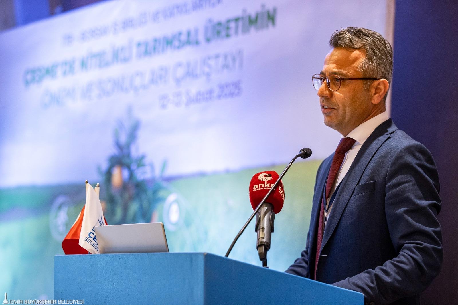 İzmir Büyükşehir Belediye Başkanı Dr. Cemil Tugay, Çeşme Belediyesi’nin İzmir Ticaret Borsası ve İzmir Ticaret Borsası Eğitim, Kültür ve Sosyal Entegrasyon Vakfı’nın (BORSAV) katkılarıyla düzenlediği “Çeşme’de Nitelikli Tarımsal Üretimin Önemi ve Sonuçları Çalıştayı’na katıldı. Boyalık Otel’de düzenlenen çalıştaya Başkan Dr. Cemil Tugay’ın yanı sıra Çeşme Belediye Başkanı Lal Denizli, Cumhuriyet Halk Partisi geçmiş dönem Milletvekili Prof. Dr. Kamil Okyay Sındır, Çeşme İlçe Tarım ve Orman Müdürü Ahmet Keçeci, İzmir Ticaret Borsası Genel Sekreteri Dr. Erçin Güdücü, İzmir Ticaret Borsası Yönetim Kurulu Üyesi İsmail Emin Kentli, İzmir Büyükşehir Belediyesi Genel Sekreteri Ramazan Tezcan ve Büyükşehir bürokratları, sivil toplum kuruluşları, akademisyenler, kooperatifler, siyasi parti temsilcileri ve çok sayıda üretici katıldı.