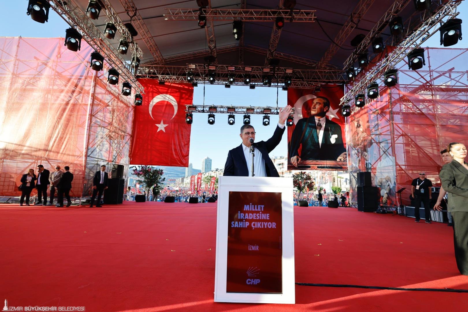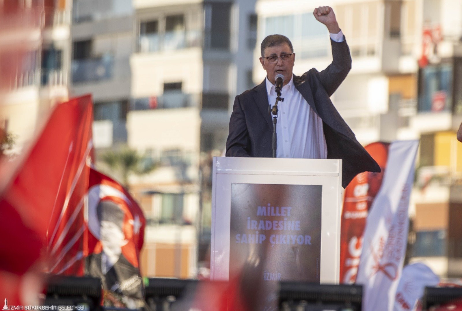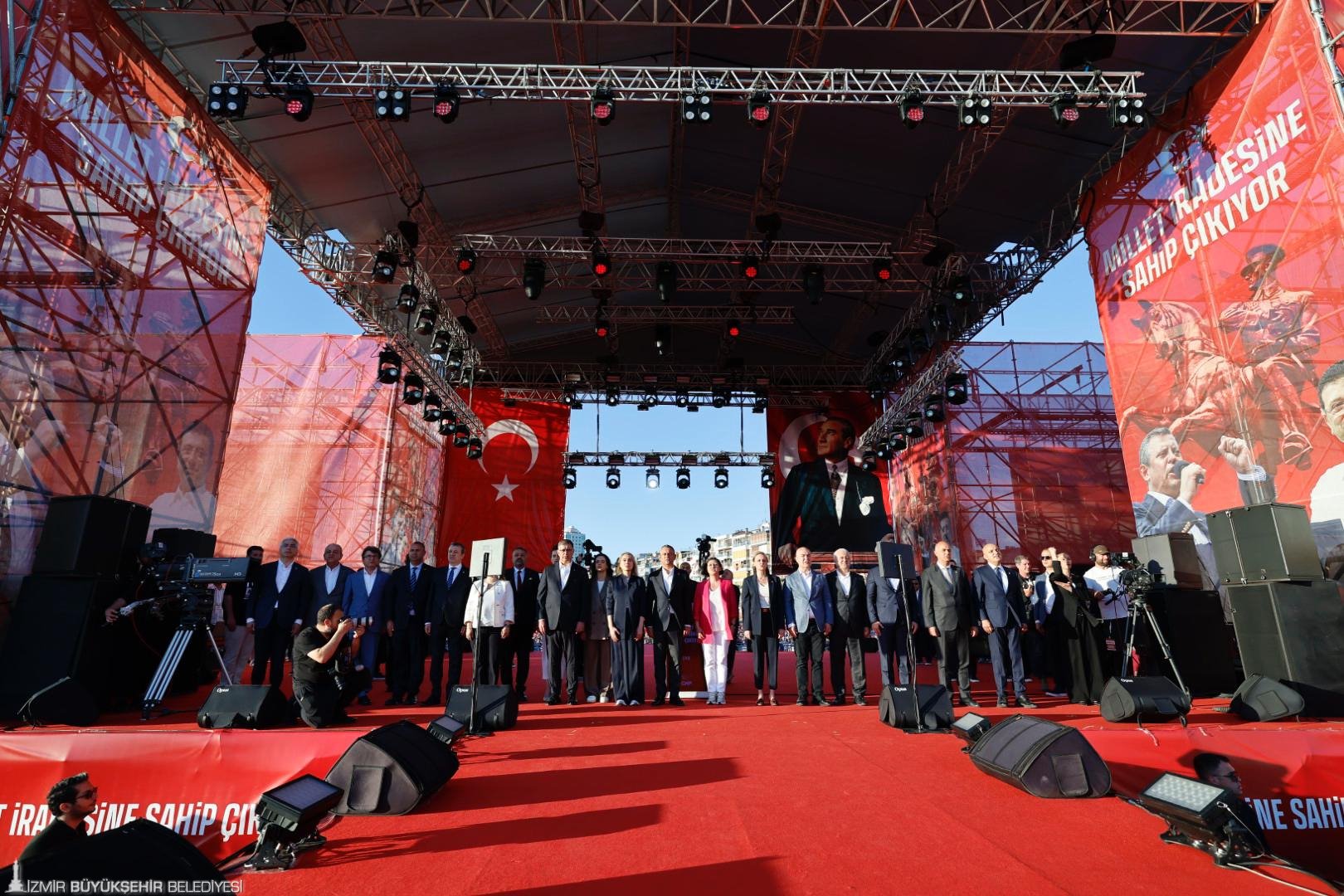 İzmir Büyükşehir Belediye Başkanı Dr. Cemil Tugay, Cumhuriyet Halk Partisi (CHP) Genel Başkanı Özgür Özel’in katılımıyla Gündoğdu Meydanı’nda düzenlenen “Millet İradesine Sahip Çıkıyor İzmir Mitingi”nde yurttaşlara hitap etti. Konuşması sırasında sık sık tutuklu bulunan İstanbul Büyükşehir Belediye Başkanı ve CHP’nin Cumhurbaşkanı Adayı Ekrem İmamoğlu’nun sözlerini hatırlatan Başkan Tugay, “Türkiye kaybettiği her şeyi tekrar geri kazanacak. Çalışarak başaracağız. Kendimize, halkımıza, değerlerimize inanarak bunu başaracağız. Türkiye’yi zor günlerinden, mücadeleden vazgeçmeyen insanlar çıkaracak” dedi.