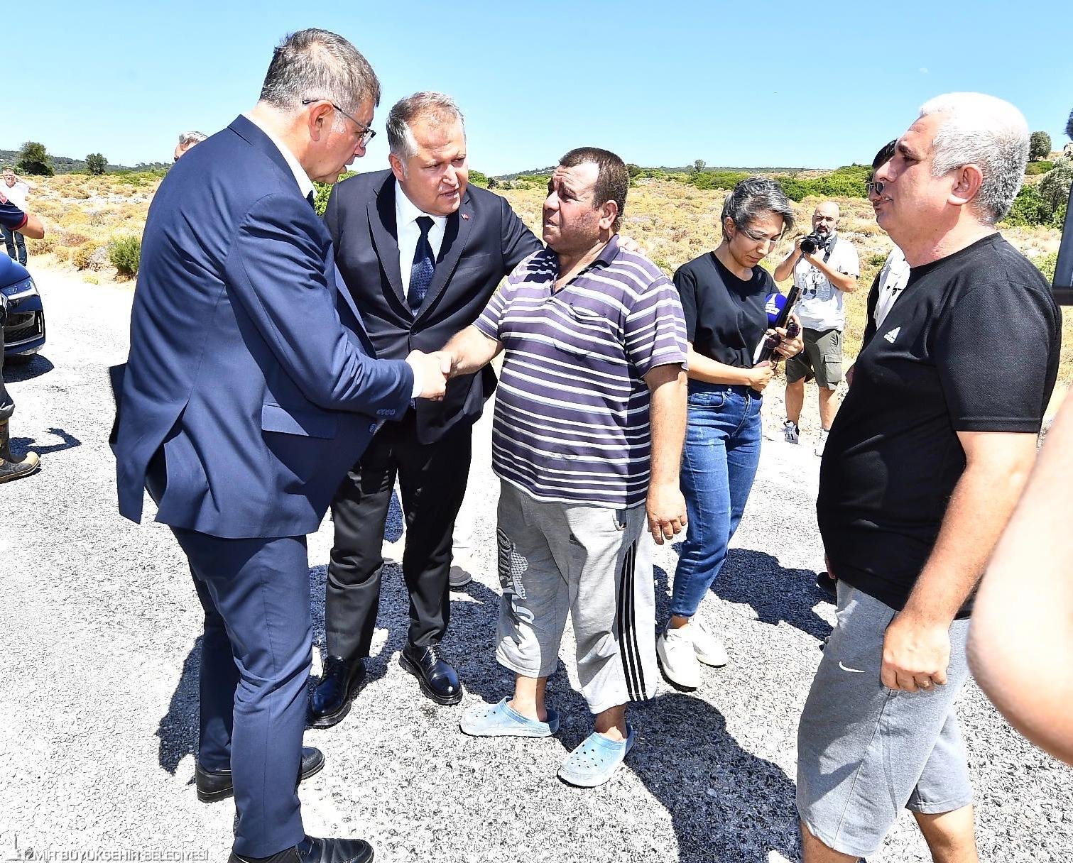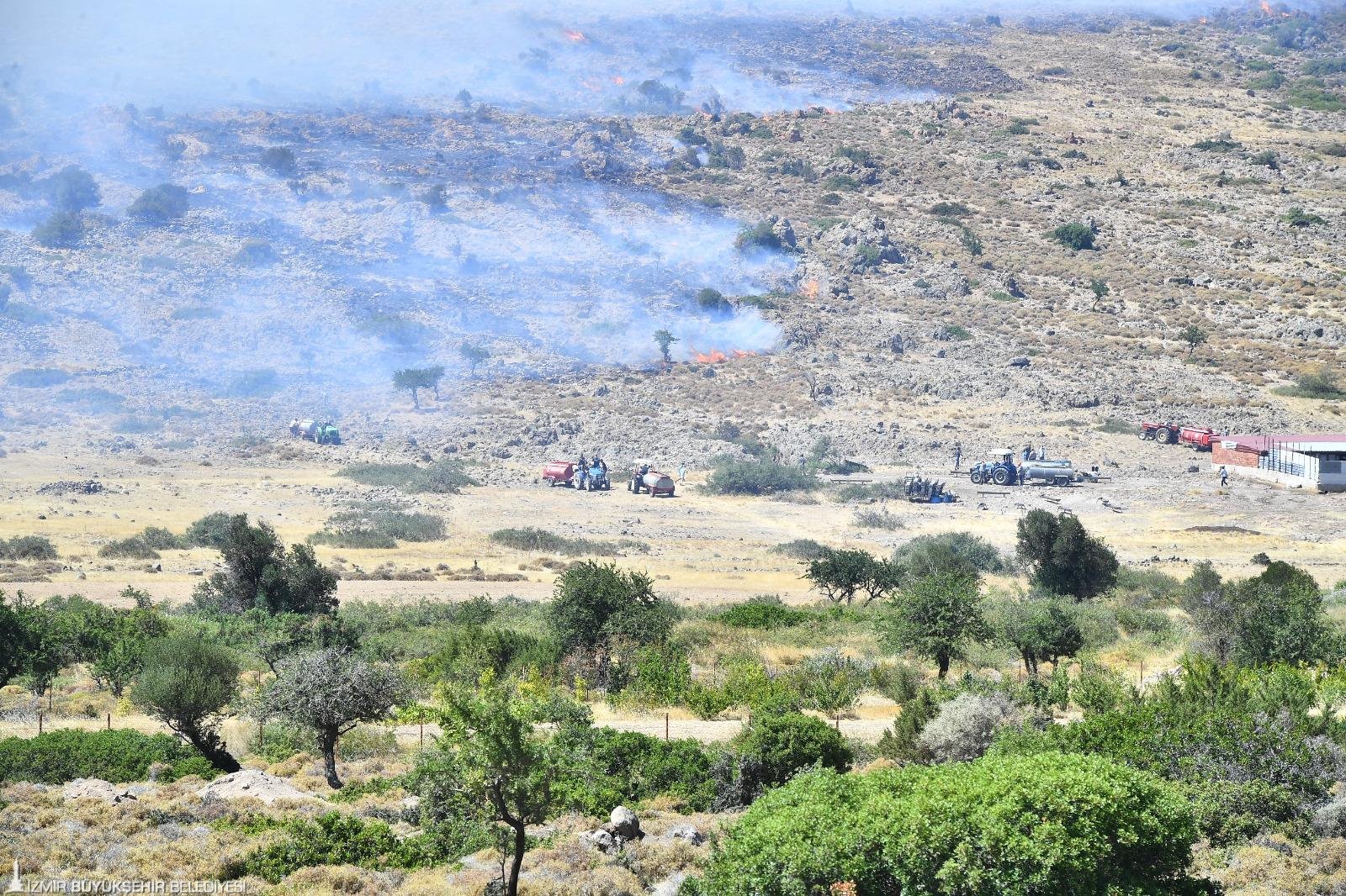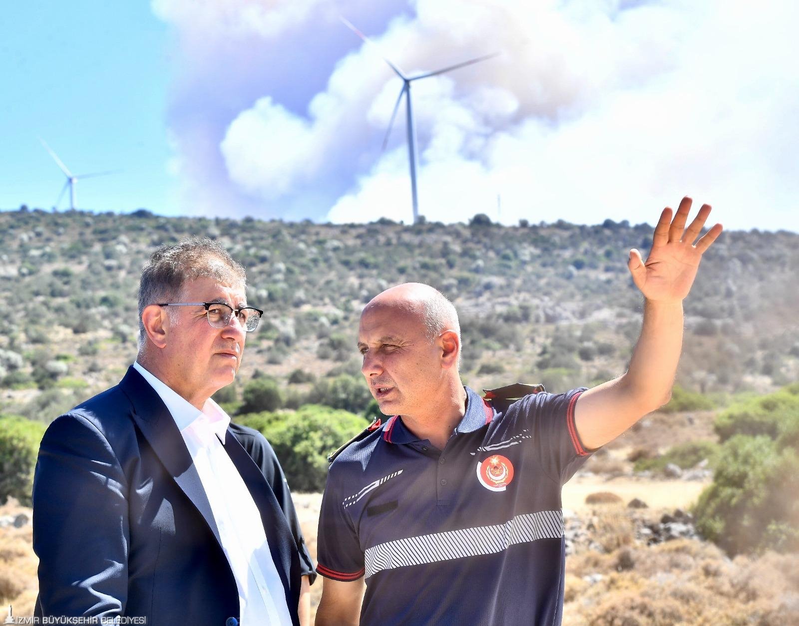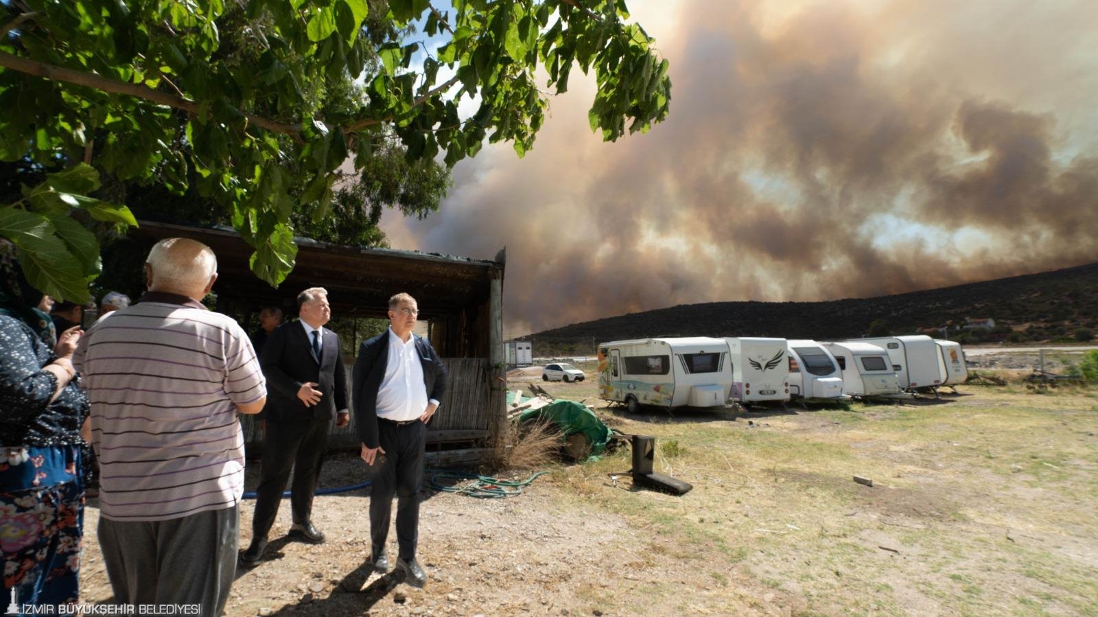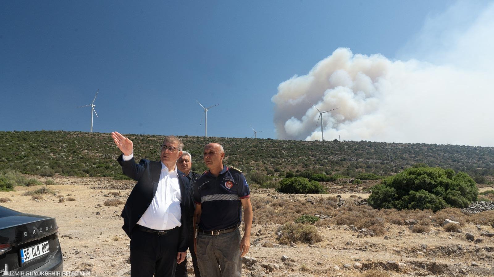 İzmir Büyükşehir Belediyesi'nin tüm gücü ile sahada olduğunu vurgulayan Başkan Cemil Tugay, “Tüm imkanlarımızı kullanarak yangınları durdurmaya çalışıyoruz. Ama çok geniş ve dağınık bir yerde yangın sürüyor. Sönüyor sonra yeniden başlıyor. Ankara Büyükşehir Belediyesi'nin ekipleri burada. Birçok farklı kentten gelen itfaiye ekipleri var. Ama inanılmaz bir dönem yaşıyoruz. Hafta sonundan bu yana yoğun rüzgarlı hava, yangınların kontrol edilmesini çok zorlaştırıyor” ifadelerini kullandı.