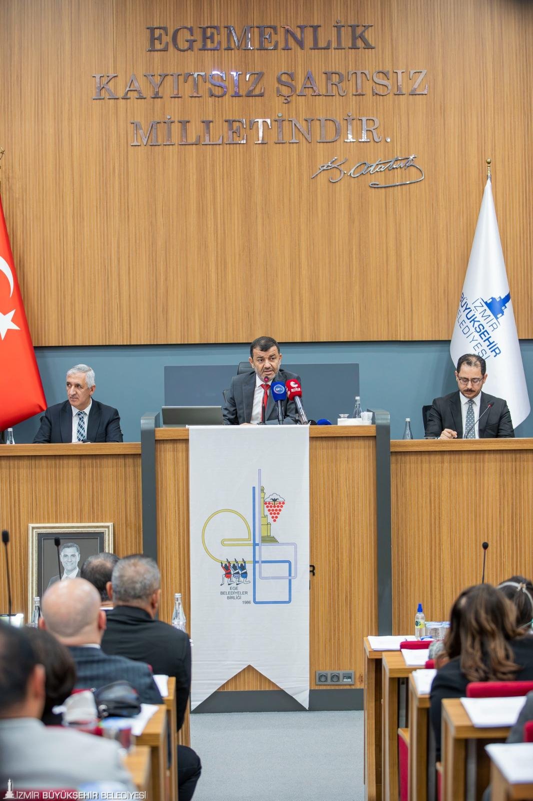 Ege Belediyeler Birliği'nin olağan meclis toplantısında konuşan İzmir Büyükşehir Belediye Başkanı Dr. Cemil Tugay, iklim krizine vurgu yaparak hem başkanı olduğu Türkiye Sağlıklı Kentler Birliği hem de Ege Belediyeler Birliği olarak bu konuda öncü çalışmalar yapabileceklerini belirtti. Başkan Tugay, İzmir’de küresel iklim krizi ile mücadelede önemli projeler yürüttüklerini ifade etti.