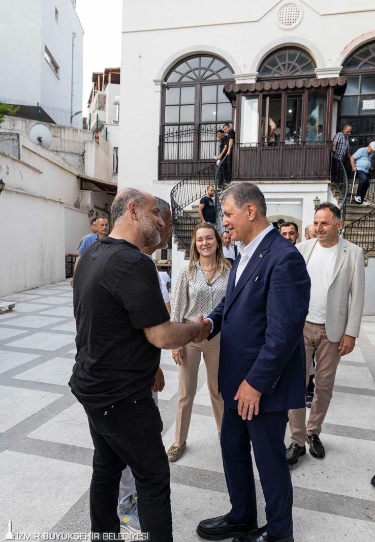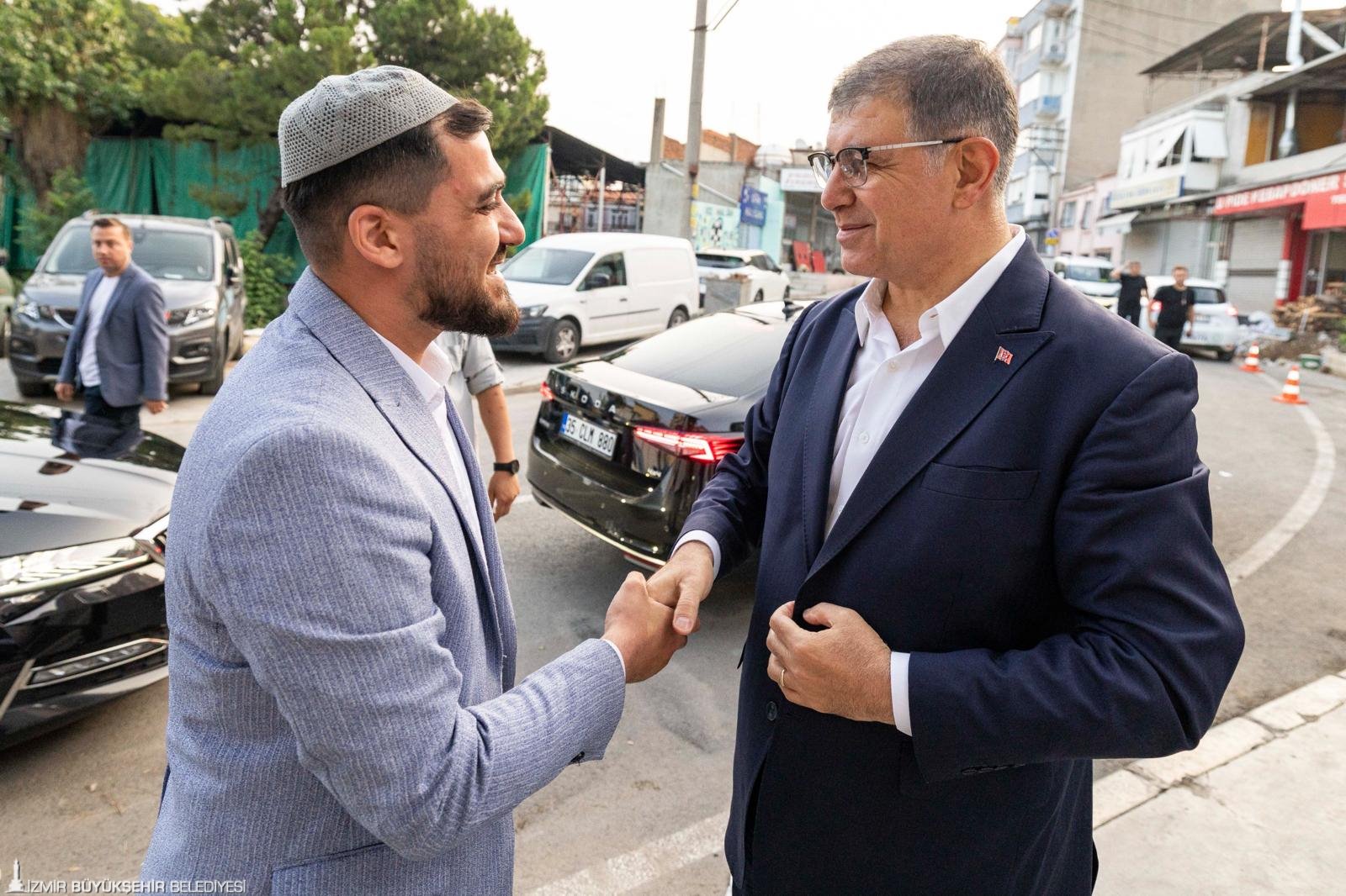 İzmir Büyükşehir Belediye Başkanı Dr. Cemil Tugay, Kurban Bayramı’nın ilk gününde Konak Yapıcıoğlu Camii’nde bayram namazını kıldı. Başkan Tugay’ın yanında İzmir Büyükşehir Belediyesi Başkan Vekili Dr. Zafer Levent Yıldır da yer aldı. Vatandaşlarla bayramlaşan Tugay, “Sevdiklerinizle birlikte sağlıklı, mutlu ve huzurlu bayramlar diliyorum” dedi. Bayram namazı sonrasında Konak Belediye Başkanı Nilüfer Çınarlı Mutlu da Başkan Cemil Tugay’a eşlik etti.